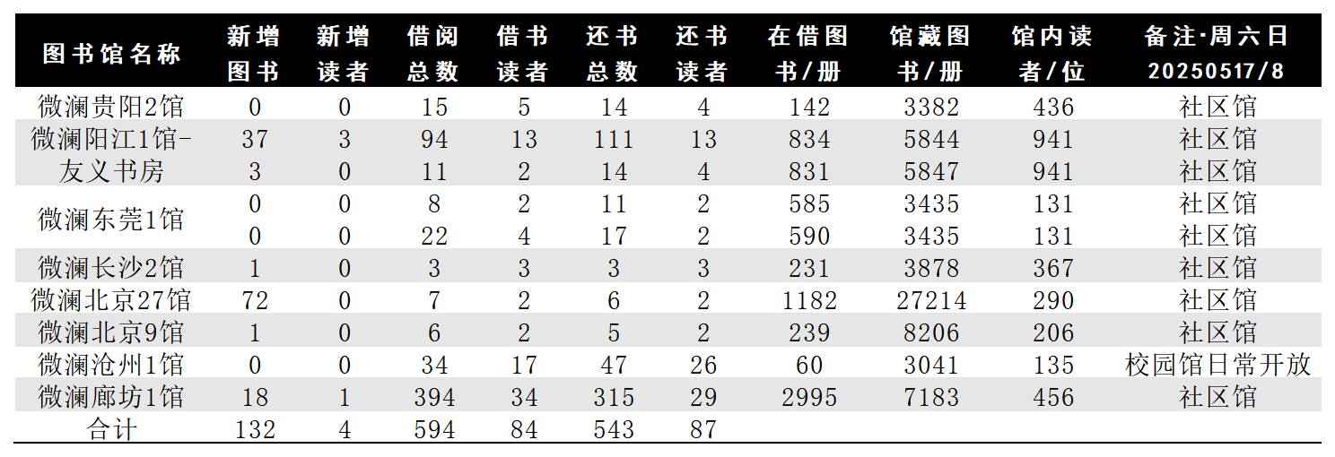 深圳伙伴线下推广(成都线下临时被取消),8家馆开放,为84位读者借阅图书594册次,处理归还图书2543册(87人次);购买/受捐/学校馆藏等录入上架图书132册,新增读者4位。