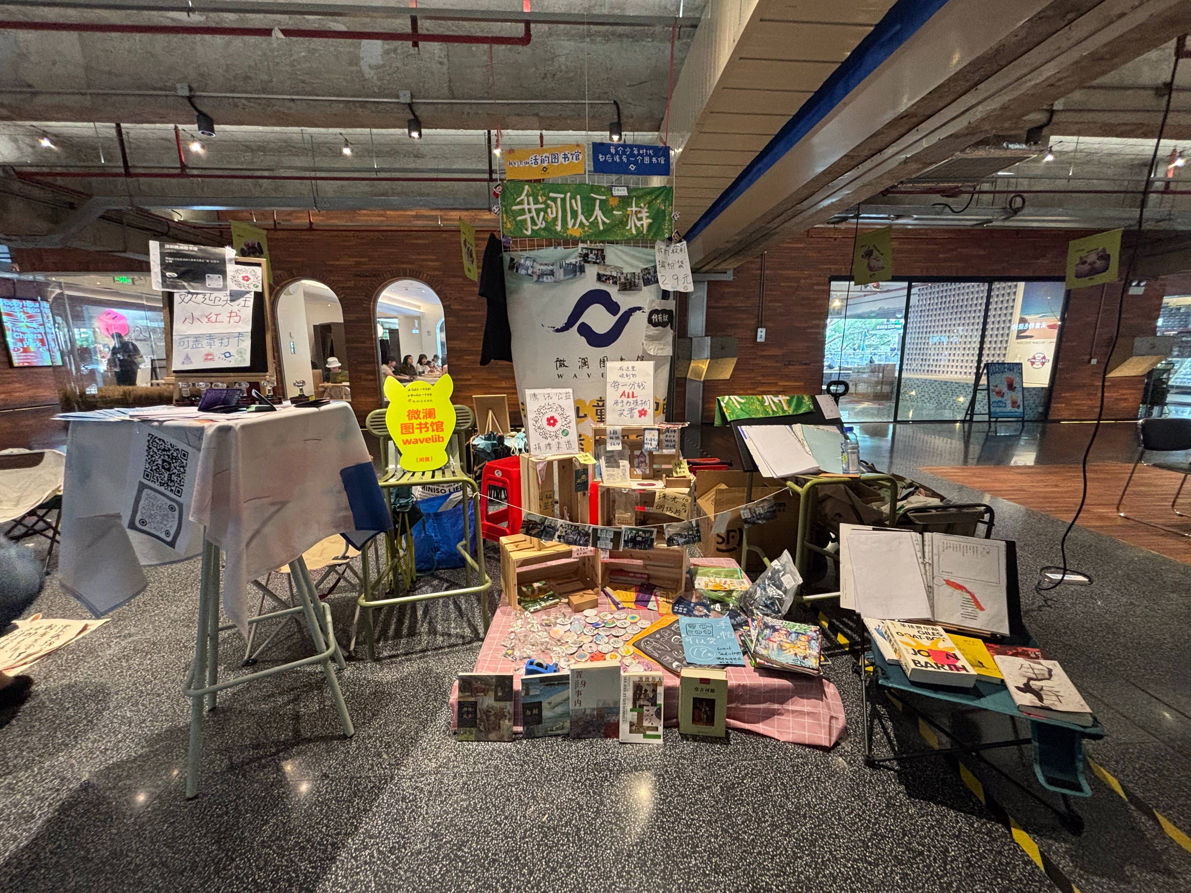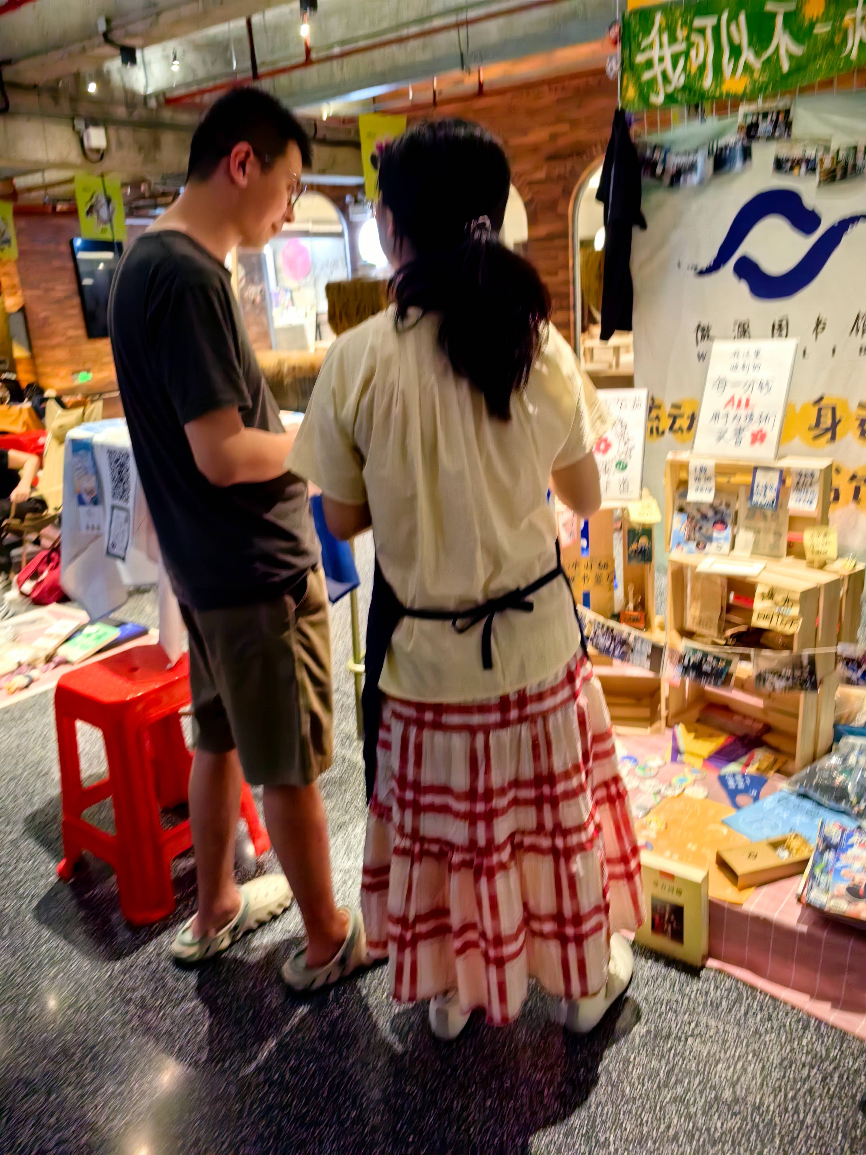 虽说是和朋友见面,但实际的主身份是项目志愿者。这个活动是微澜图书馆发起的公益义卖,筹集到的资金均用于打工子女阅读书籍的购买。和若诗、明明、杰西、闵杰一起布置市集摊位,气氛超级融洽!奈何城市没有就近的运营地点。我的主要任务是价目绘画,其中被孩子们的标语设计打动了——“可以哭手帕”“我的权利编织袋”“爱自由哪怕路障T恤衫”。