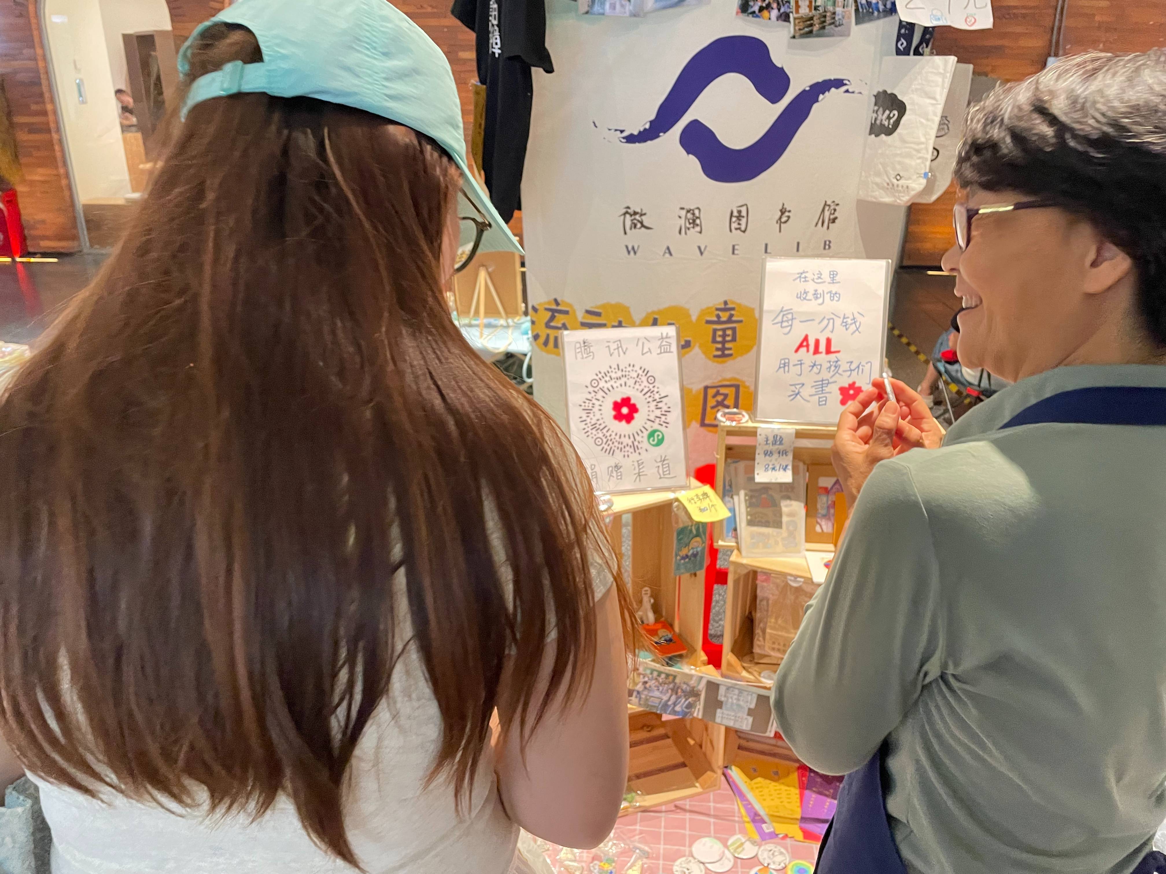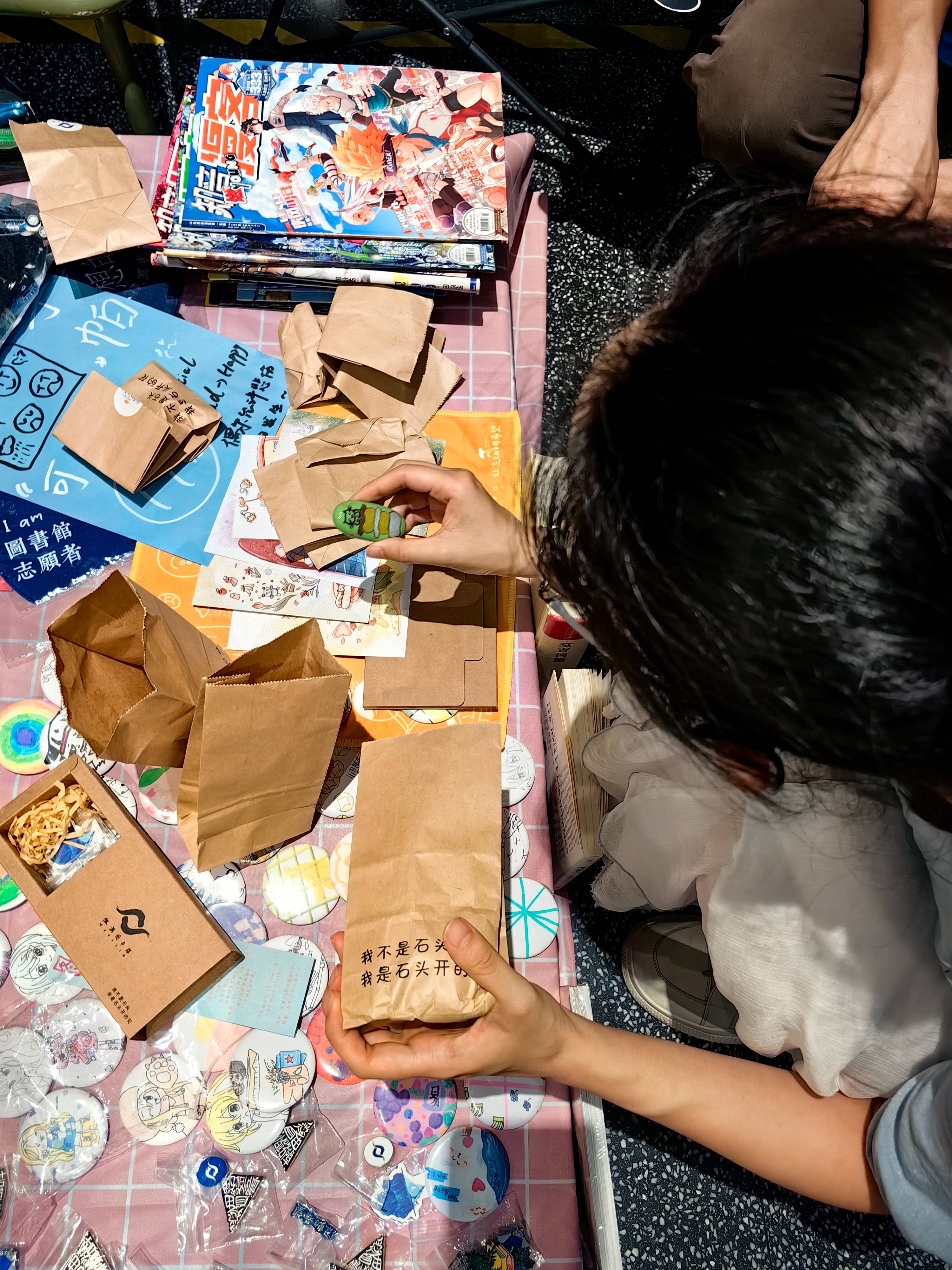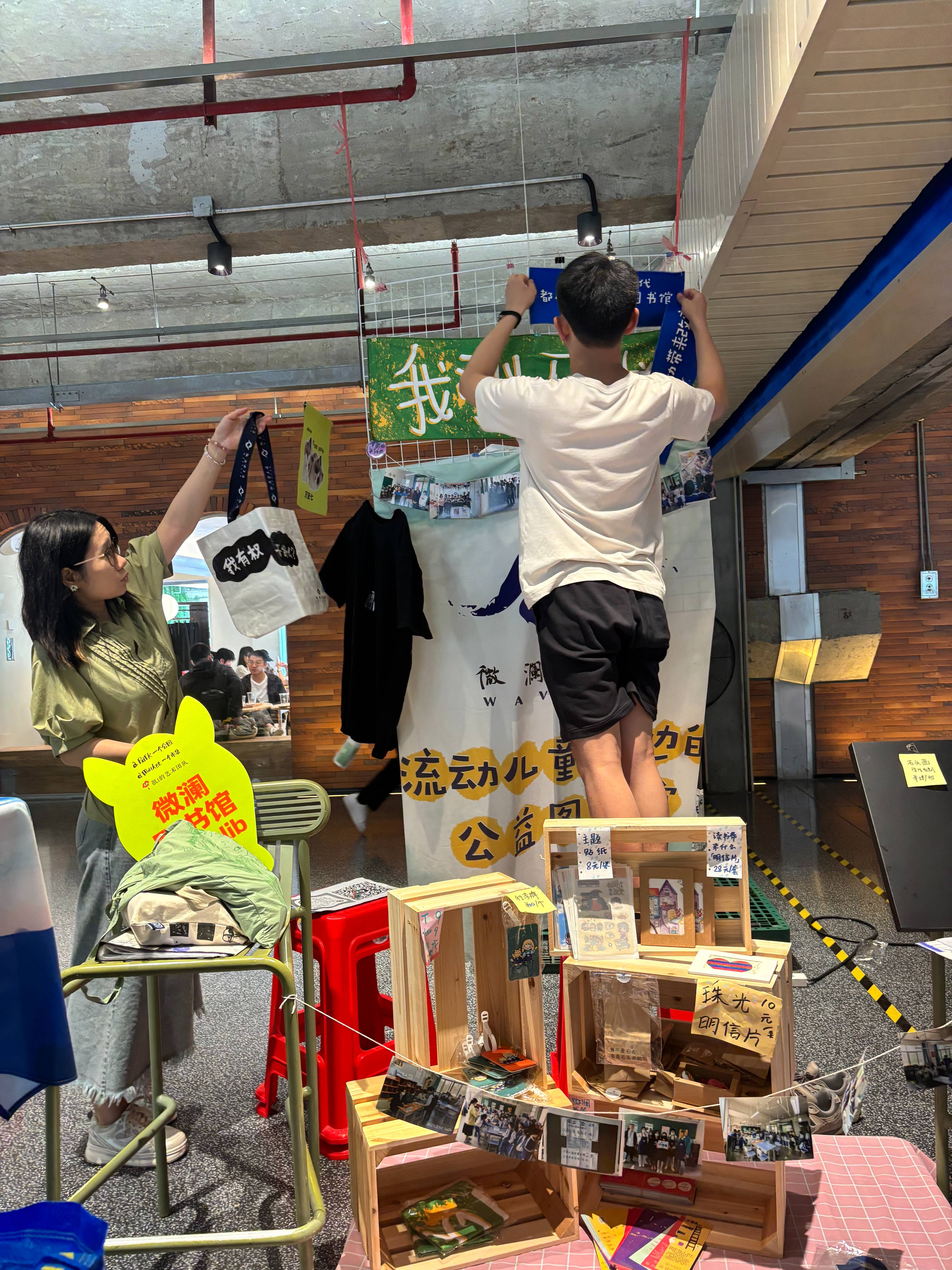 来深圳的第二周正好赶上了这次义卖活动,第一天来摊位买了东西,没想到第二天就成为了志愿者。今天下午路过的人不太多,虽然没有卖出太多东西,但是有不少人关注了公众号和小红书,听说目前馆里值班志愿者还是比较缺,希望能吸引到一些志愿者就太好啦!