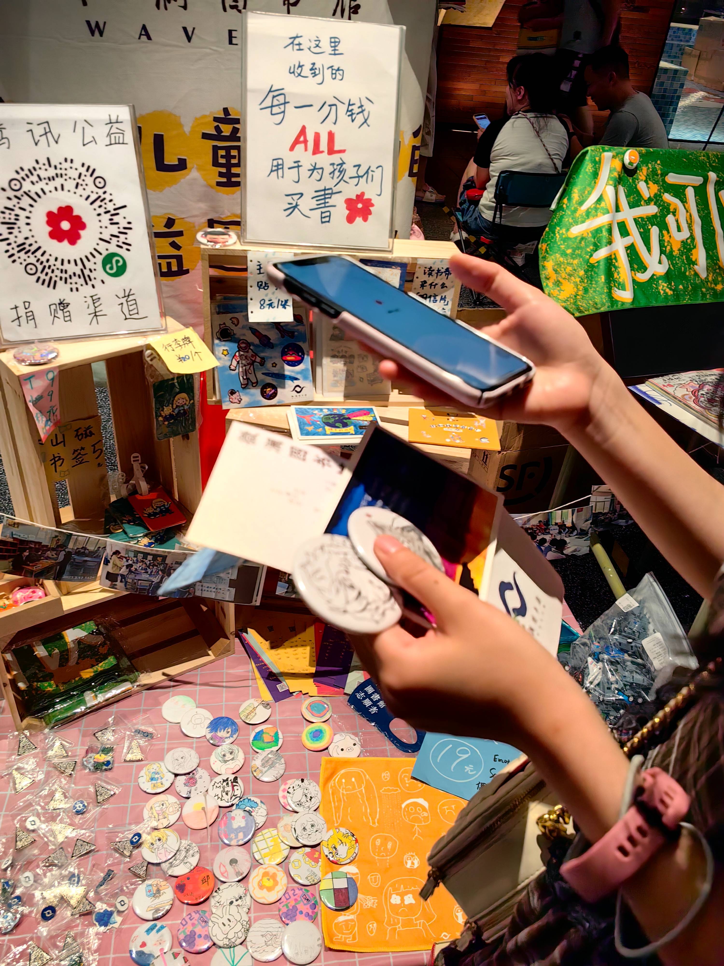 准备过程中微信沟通物料,丽丽说:随缘。“随缘”是我喜欢微澜的诸多因素中的一个。这次又被提醒,让我在地推摊上自如地向驻足者讲述照片里的深圳微澜、徽章作者的爱好。