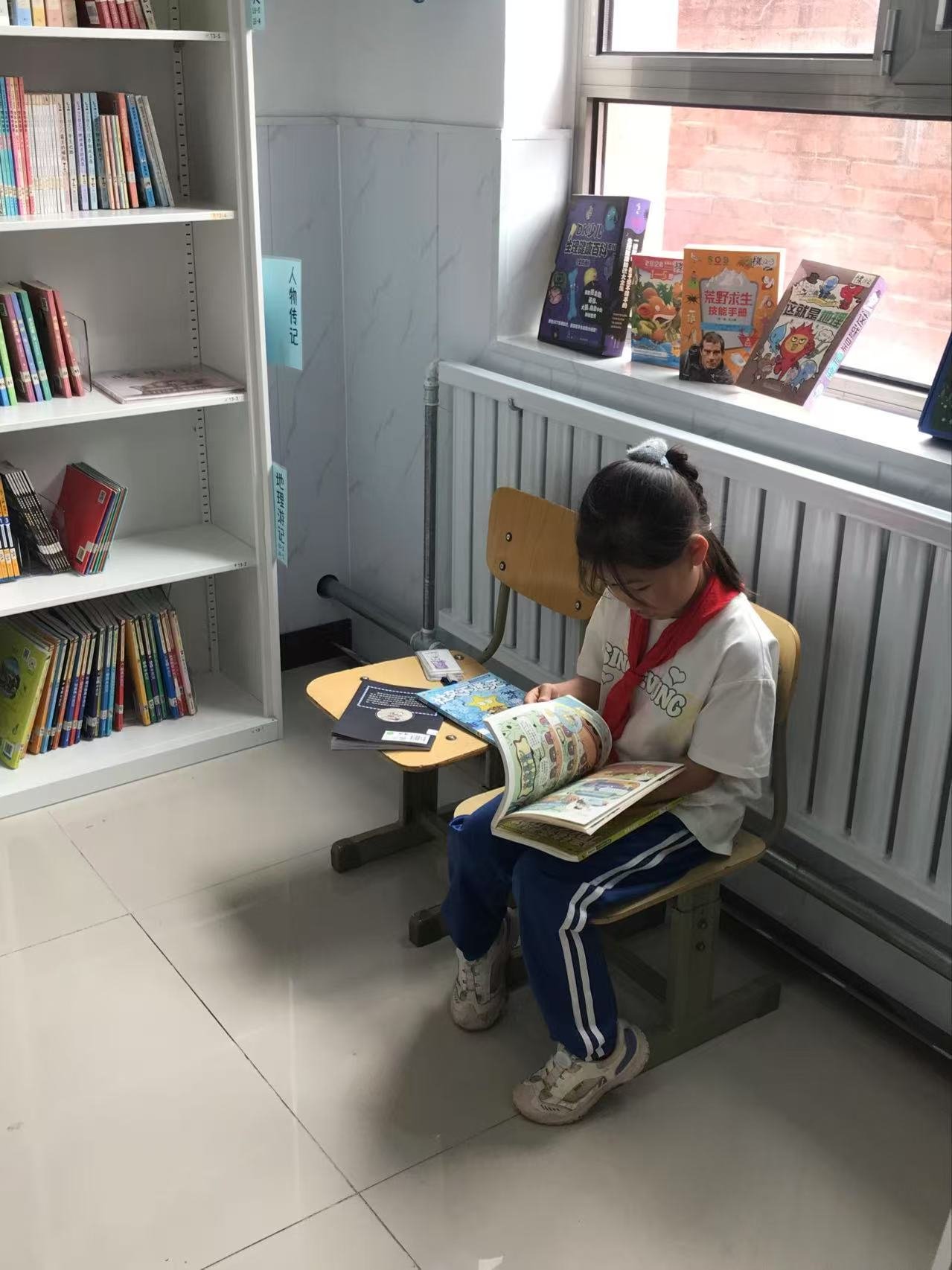 中午馆里很热闹,依旧是高年级的孩子打闹的,低年级的孩子主要就借书。午休时,爱看书的姑娘yrq一直留在馆里静静的看书,不想打扰她,我们也就安静的收拾书架,看会儿书。