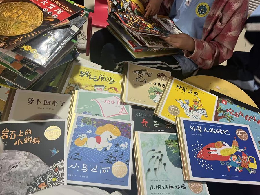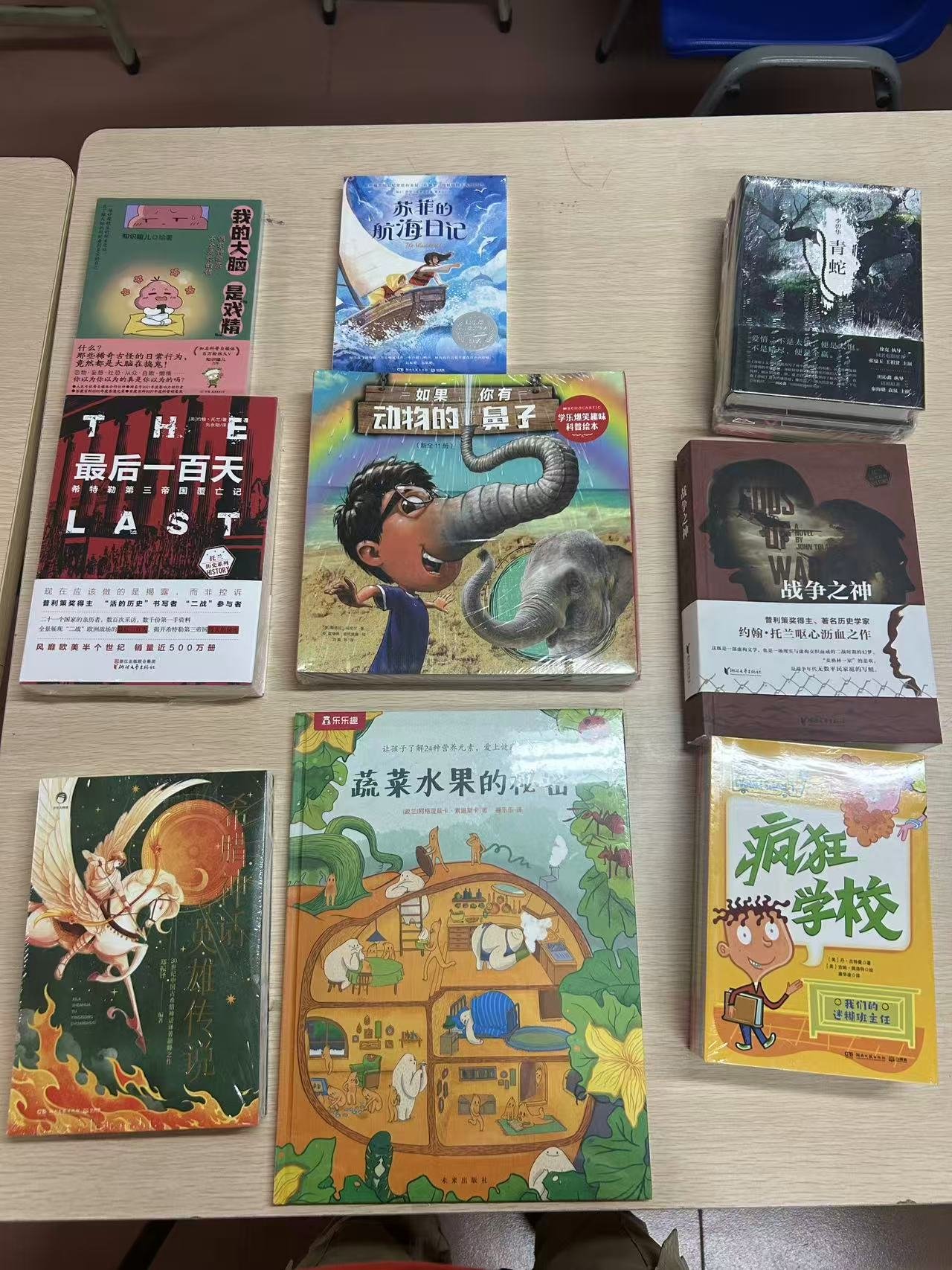 把上周新到的400册书籍中的有吸引力的放在“新书推荐架”上。孩子们对新书表现出极高热情,科幻、科普类读物及写实文学作品借阅量显著增加,新书展示区一度聚集大量学生翻阅挑选。