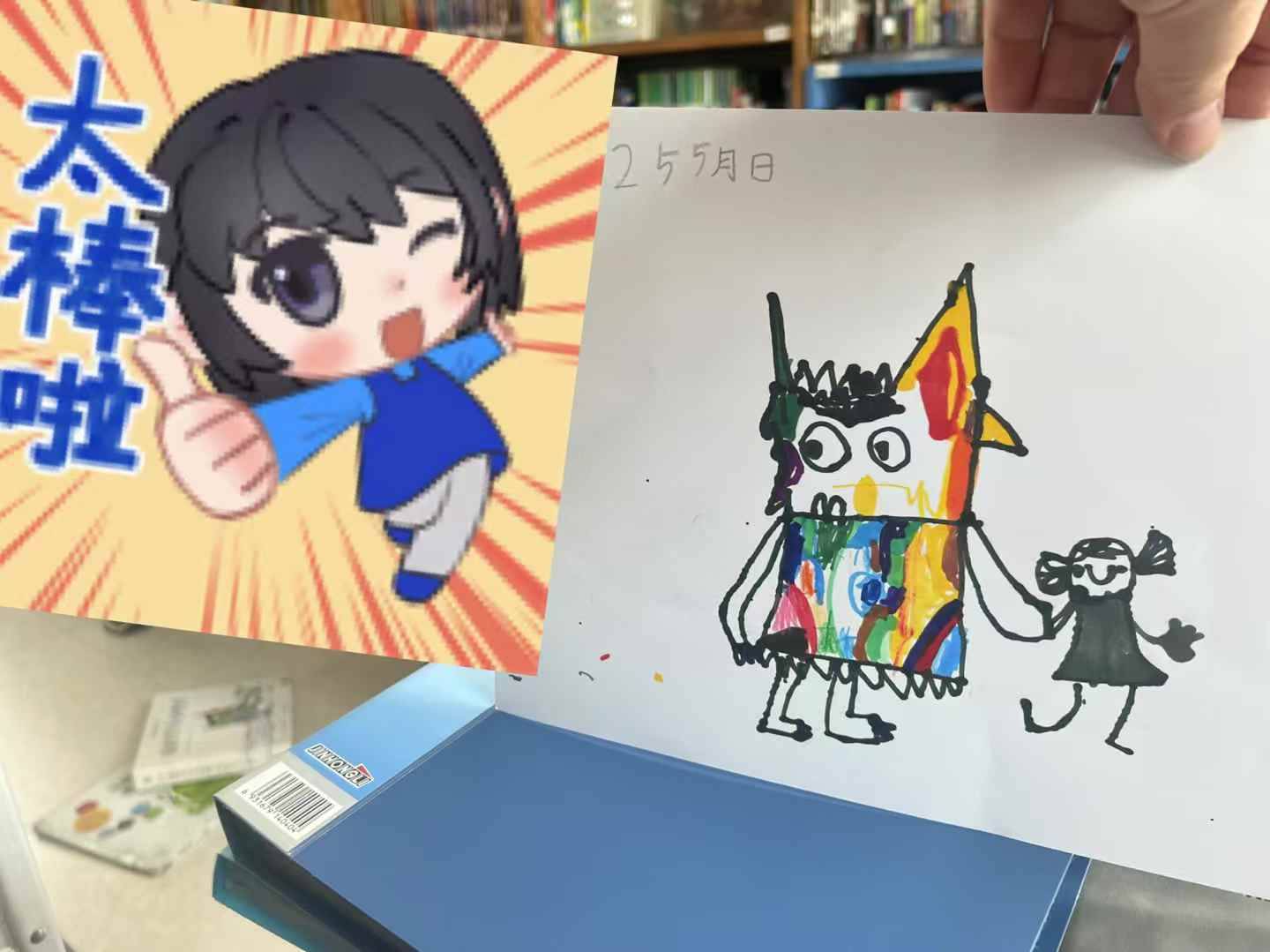 中午老师开会,校长把cgw和lmz委托在图书馆,两个小家伙选择画画,因为之前看了《神探狗狗》作者的简介,好吧,孩子们画画,在图书馆的时间太短,那,留下一些平静美好的时刻,可以让情绪得到一定的释放或者抚平,这样,对于回班级也许更好,学习的事情,交给家长和课堂(下次负责带一些画纸过去,廊1买了一波,可以共用。)从cgw和校长的互动中,小家伙有进步。