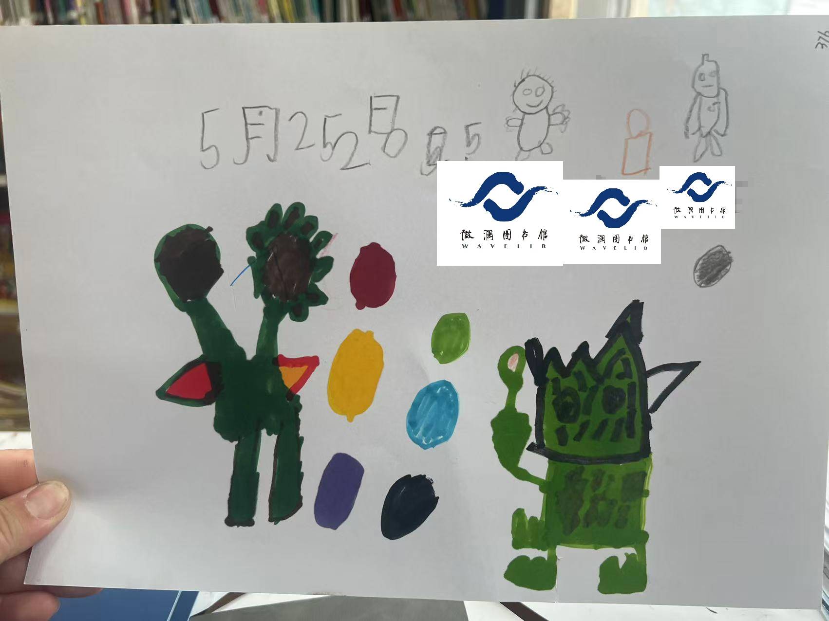 画中的小插曲有,lrz会进来,他习惯性,说一些挑衅的话语,摸摸头,抱一下,踢一下,后来还把书抢过去藏起来,今天我也说服自己不较劲,不过也平和的告诉两个小孩子,不要受影响,你们可以继续画,看不到书,可以发挥自己的想象,画出不一样的小怪兽,后来两个人真的就没有再追赶抢夺攀爬,聊着想象力,不能凳子上画,就干脆坐在地上画起来。