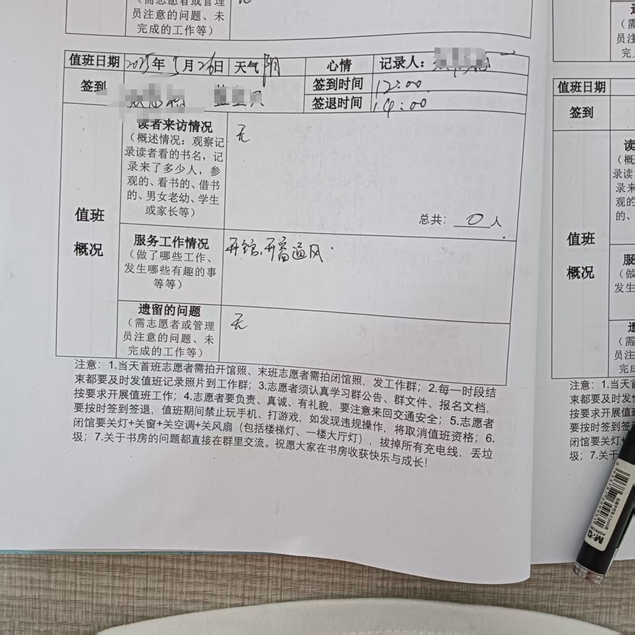 有同学申请补卡,已登记。正好带着王婷实操一下。已办理好2张待领取。下午她还把地也拖干净了。我们归位了书架,任务单还剩几张。新书过多放入箱子里了。整理好毅桦给我带来转交给别馆的物料,我近期值班时带过去。