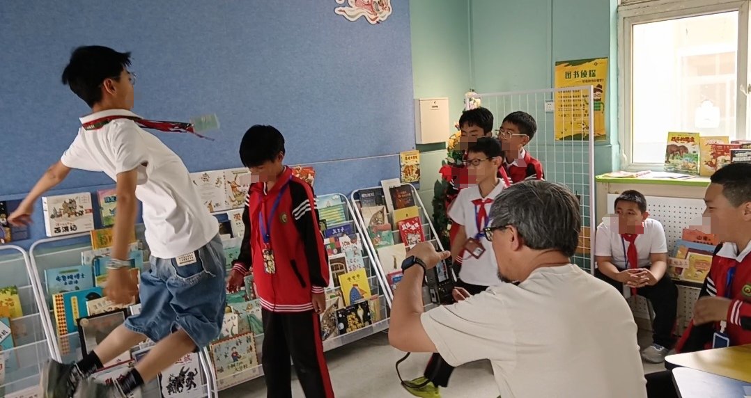 下午第一节课,六年级的孩子们都在操场上拍合影,期间有几个孩子来馆里,和熟悉的srr,zml等等姑娘聊了会儿,他们毕业演出可能会安排在这周五,下个月26号左右就离校了。孩子毕竟还是孩子,问起以后去哪里读书,都不能确定,对于未来还没有概念,从他们的脸上和话语里丝毫感觉不到担忧。