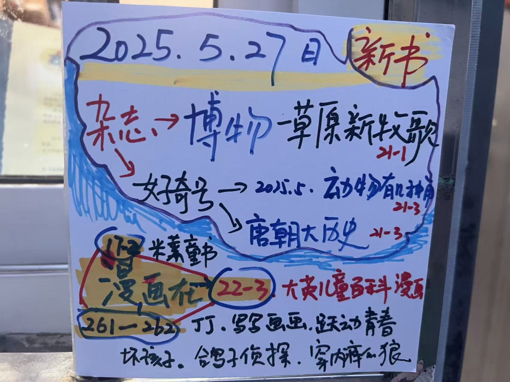放学后,孩子们照例在图书馆呆了半小时,最近大小孩子问漫画的比较多,放学后去取了快递,驿站的好奇号和寄到学校的博物,写了一个小的推荐卡,发现放在窗户上正好。