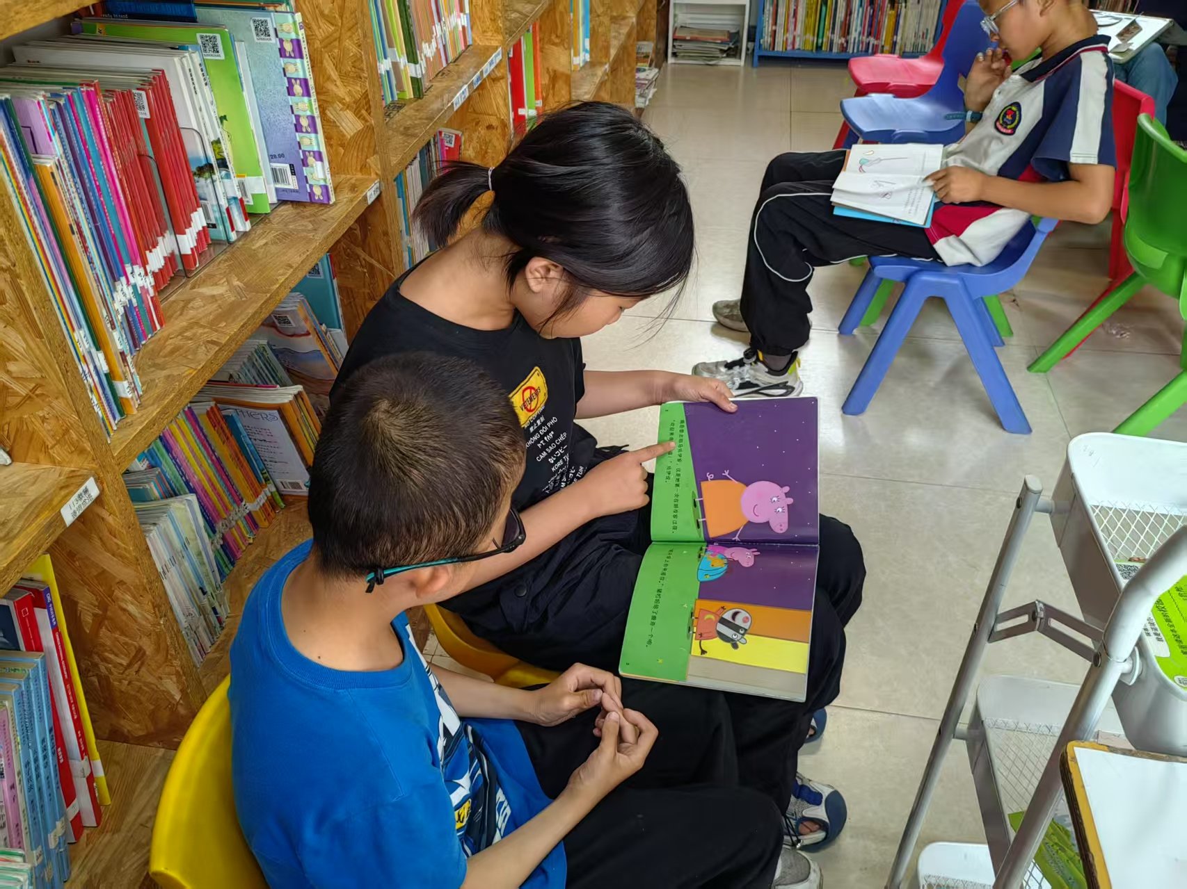 下午课间的时候,cjj过来看书。有一位5年级女同学,主动要求给他念书,两个人坐在我旁边,很温馨的一起读书...觉得最近cjj的脾气好了很多。