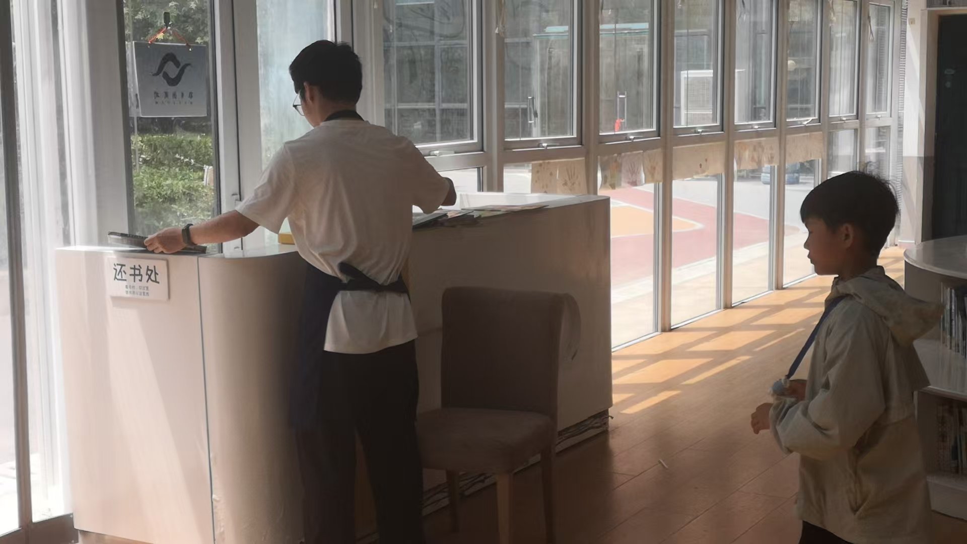 四年级的一位高同学,平时也是个调皮的男生,今天看我开馆后忙着补书,主动提出帮我把阅读走廊的椅子摆好。35馆3.0版从去年10月开馆以来,越来越多的孩子们主动来图书馆帮忙做事情,图书馆现在就像一个他们愿意回的家一样。