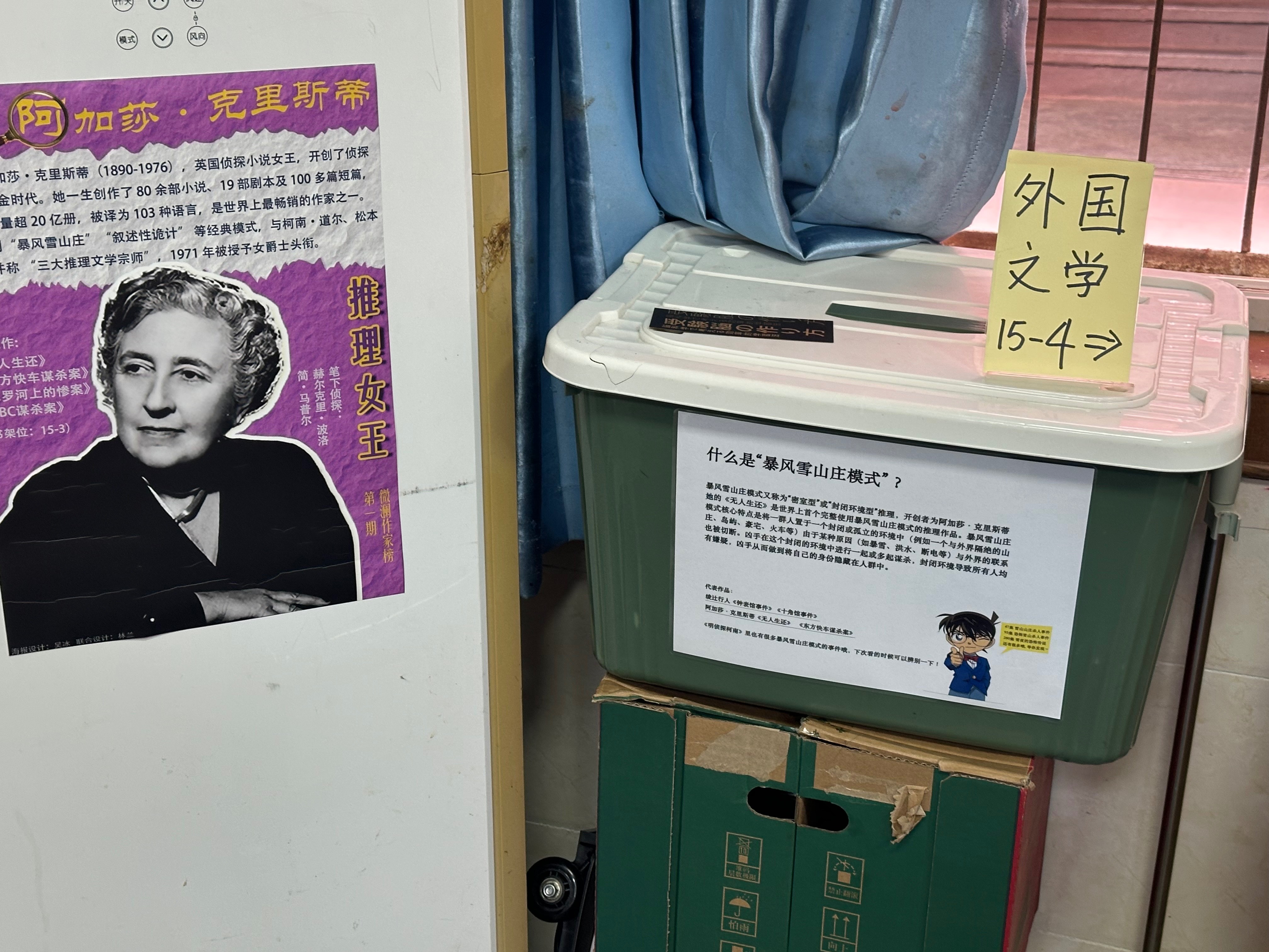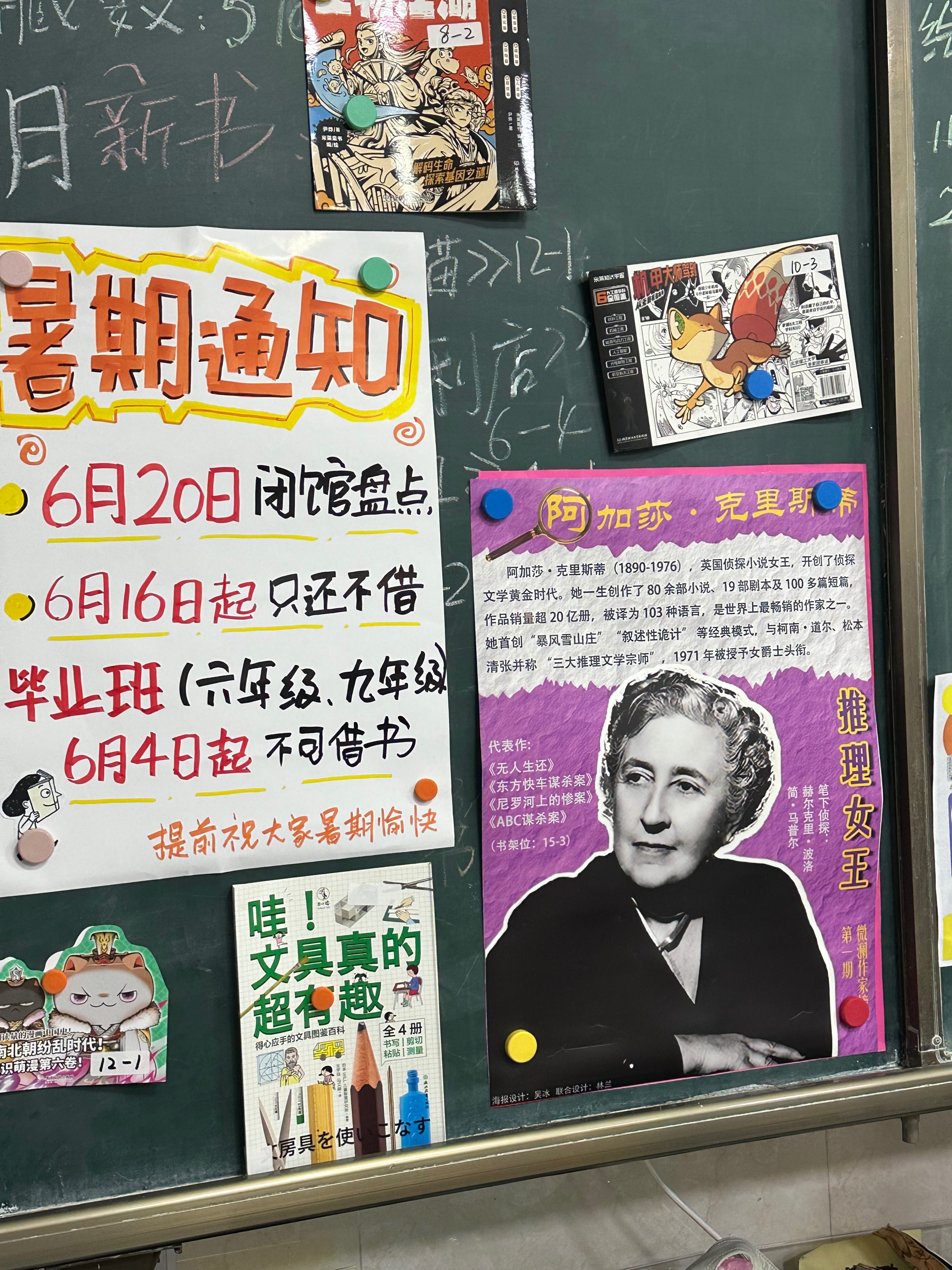2️⃣吴冰设计的微澜作家榜第一期,推理女王阿加莎安排上了,贴在了最热门的空调处,以及抬头就能看见的借书处;以及还书处门口,期待后面陆续的作家榜!