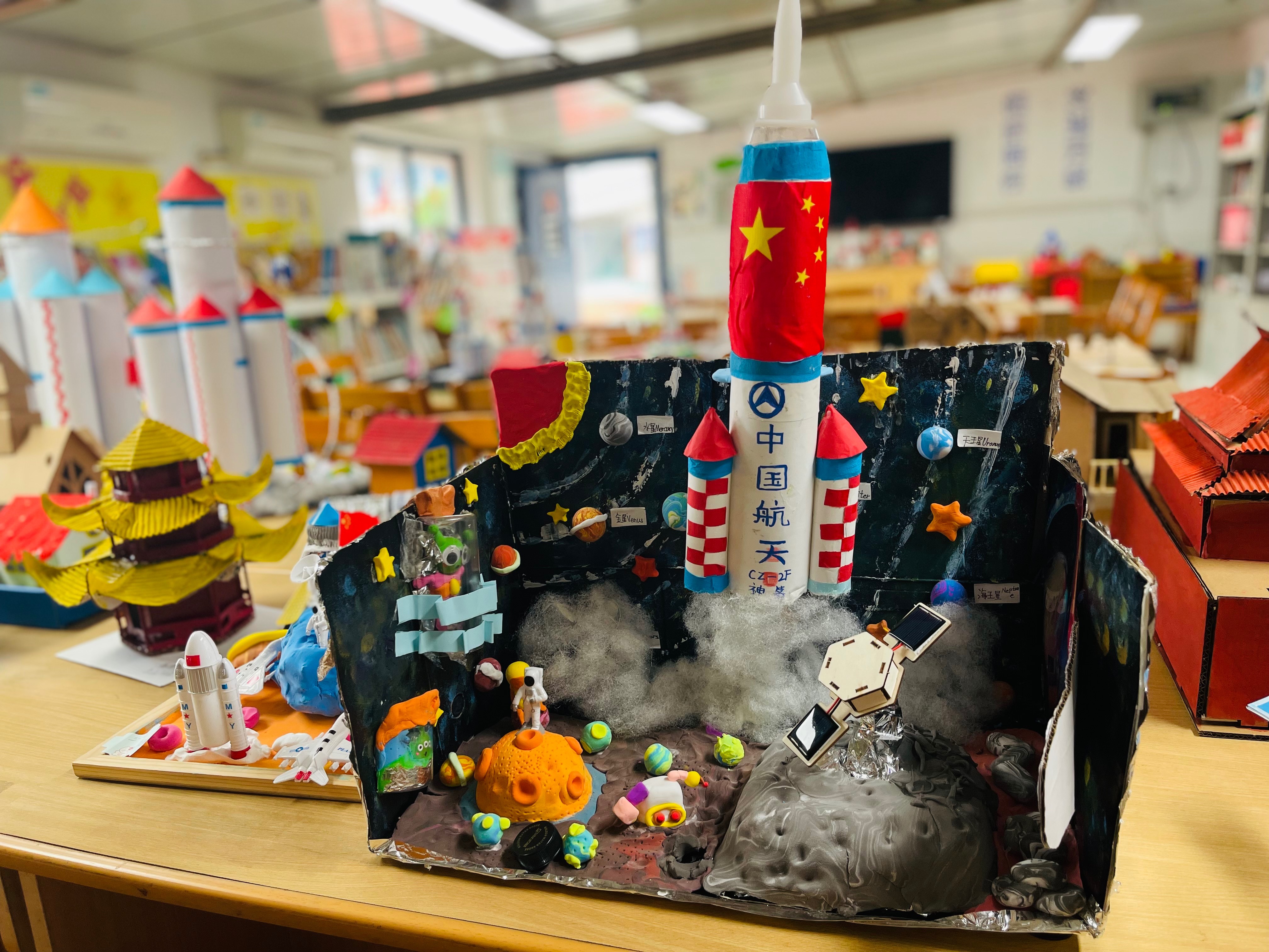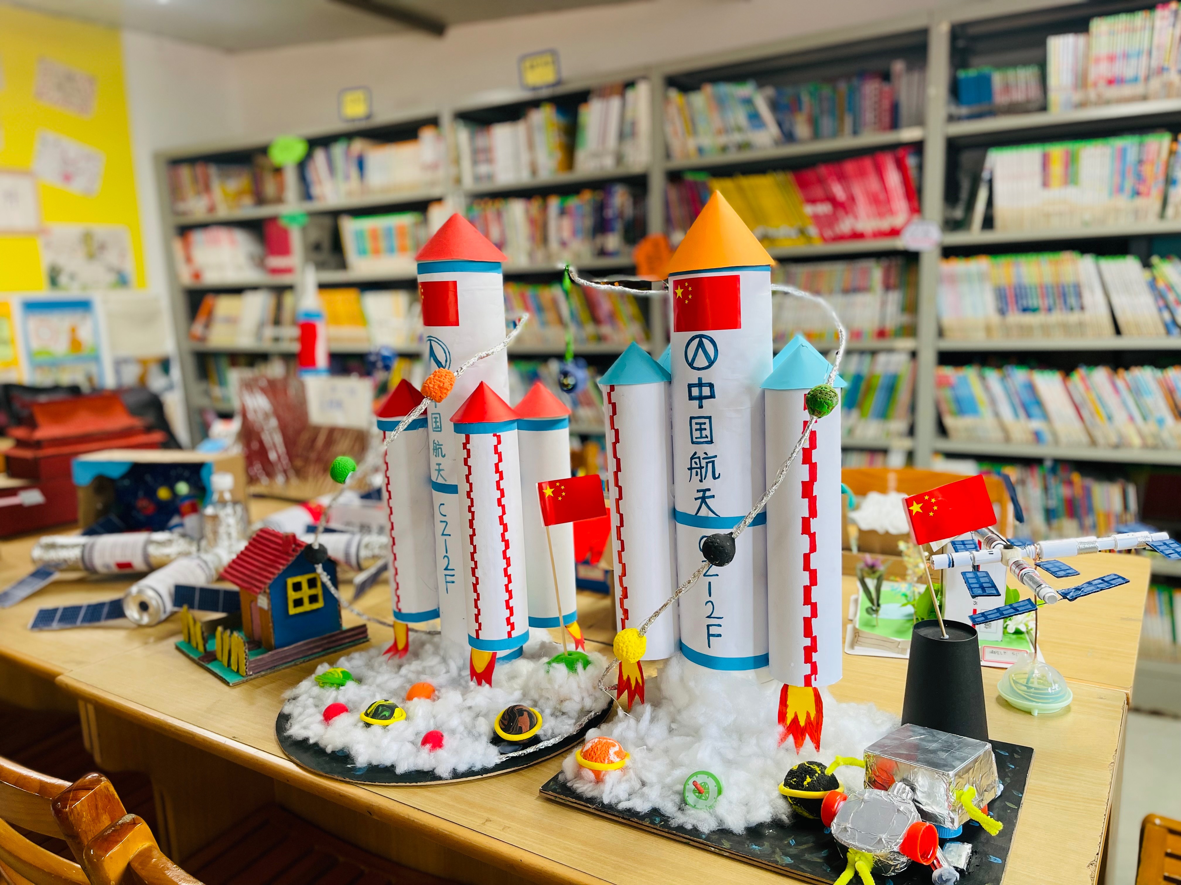 快要期末了,仍然有不少同学来借书,图书馆里还摆放了同学们制作的模型,很是漂亮