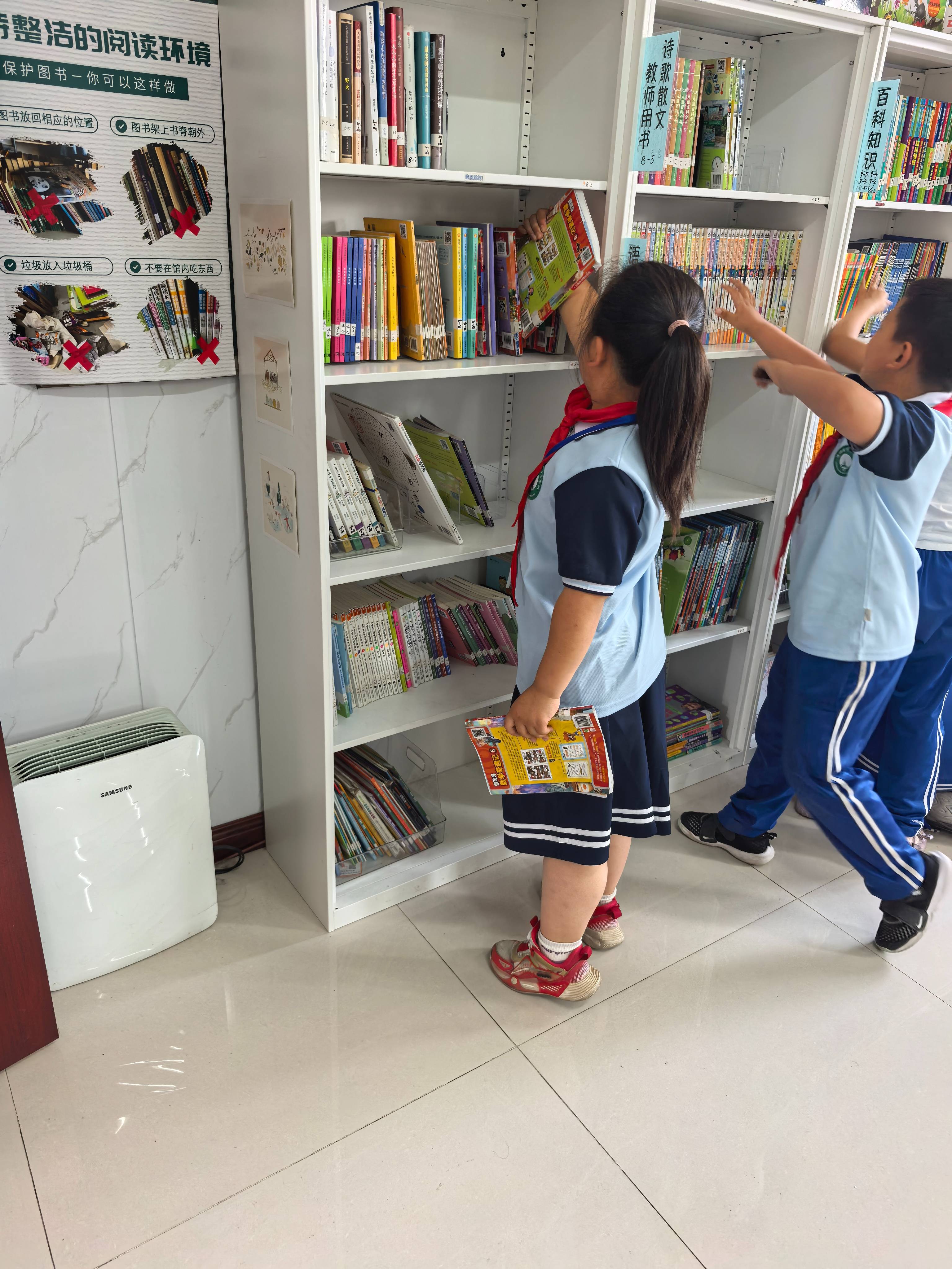 今天第一次来图书馆,很喜欢这里,有很多爱看书的小读者来借还书,我也慢慢熟悉了很多相关业务,还到班里给十几位小读者发了他们期盼已久的借书卡。最后我们把图书整理好了然后打扫好卫生就结束了
