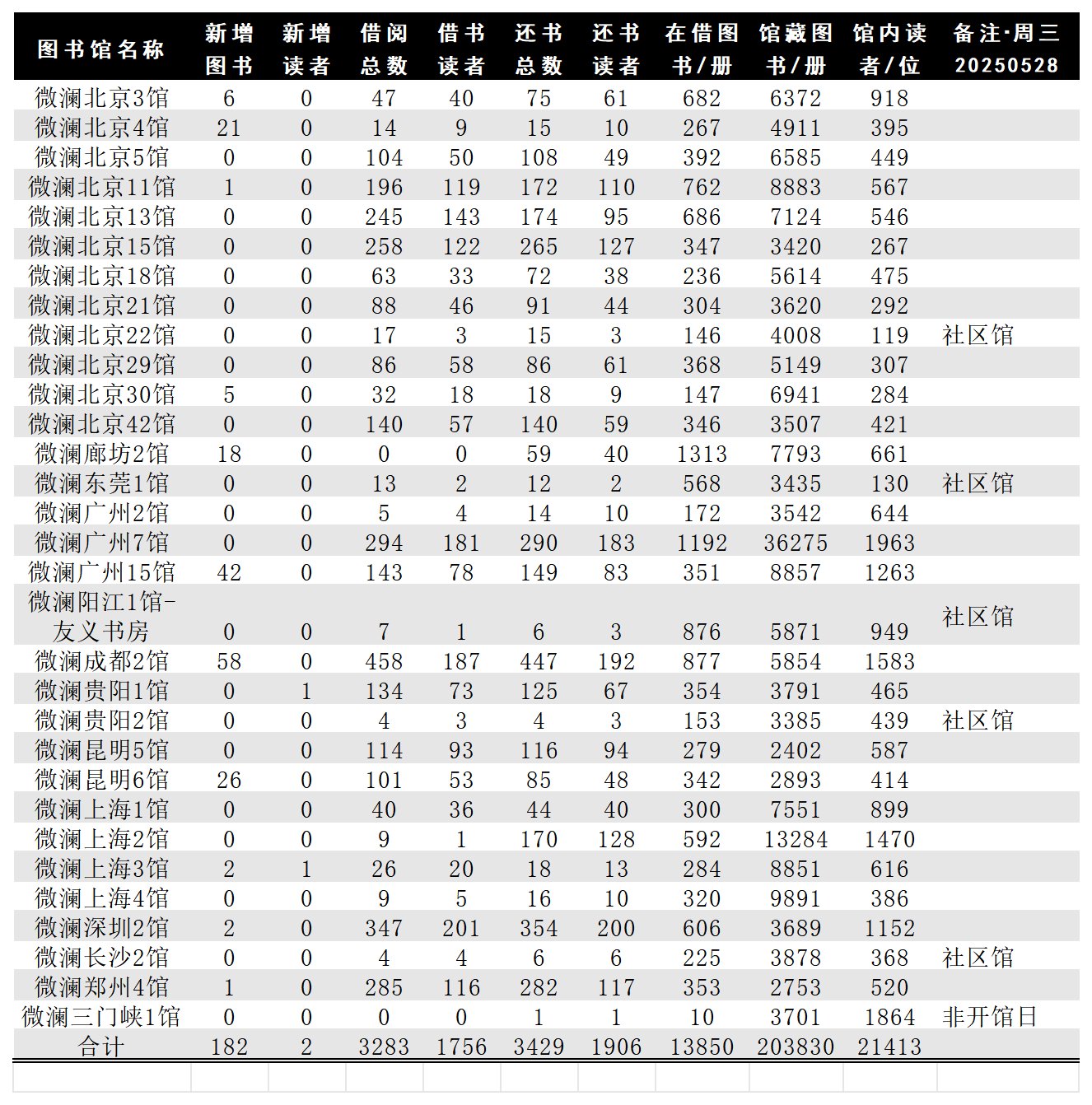 30家馆开放,为1756位读者借阅图书3283册次,处理归还图书3429册(1906人次);购买/受捐/学校馆藏等录入上架图书182册,新增读者2位。