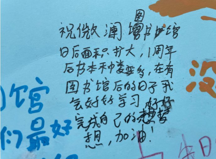 2. 几位同学问心愿单上的书什么时候买,我说现在没有钱,攒够了钱就给你们买;DJX同学说,我捐5毛。后来和秀敏馆长问了下,心愿单录入的情况,发现有些遗漏。当时已闭馆,辛苦后面值班的伙伴录入和做一下反馈。甚至有一位即将毕业的九年级同学也写了心愿书,希望他能在毕业前看到这本书吧。