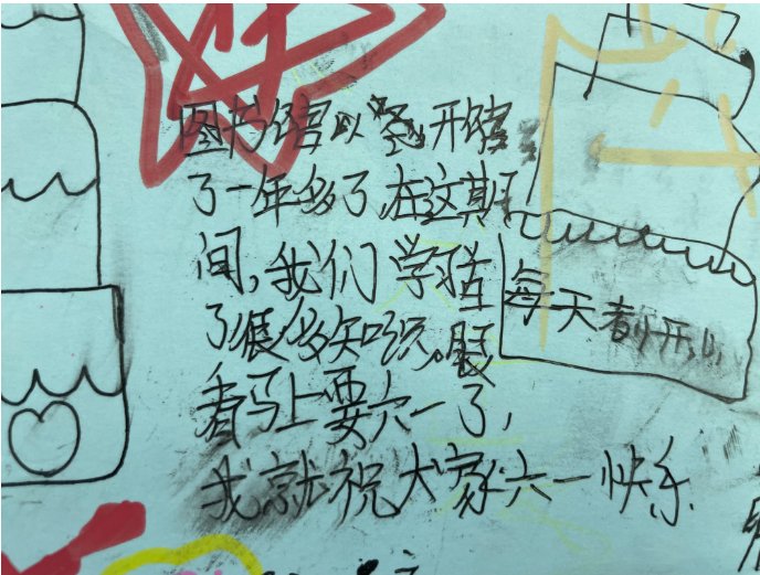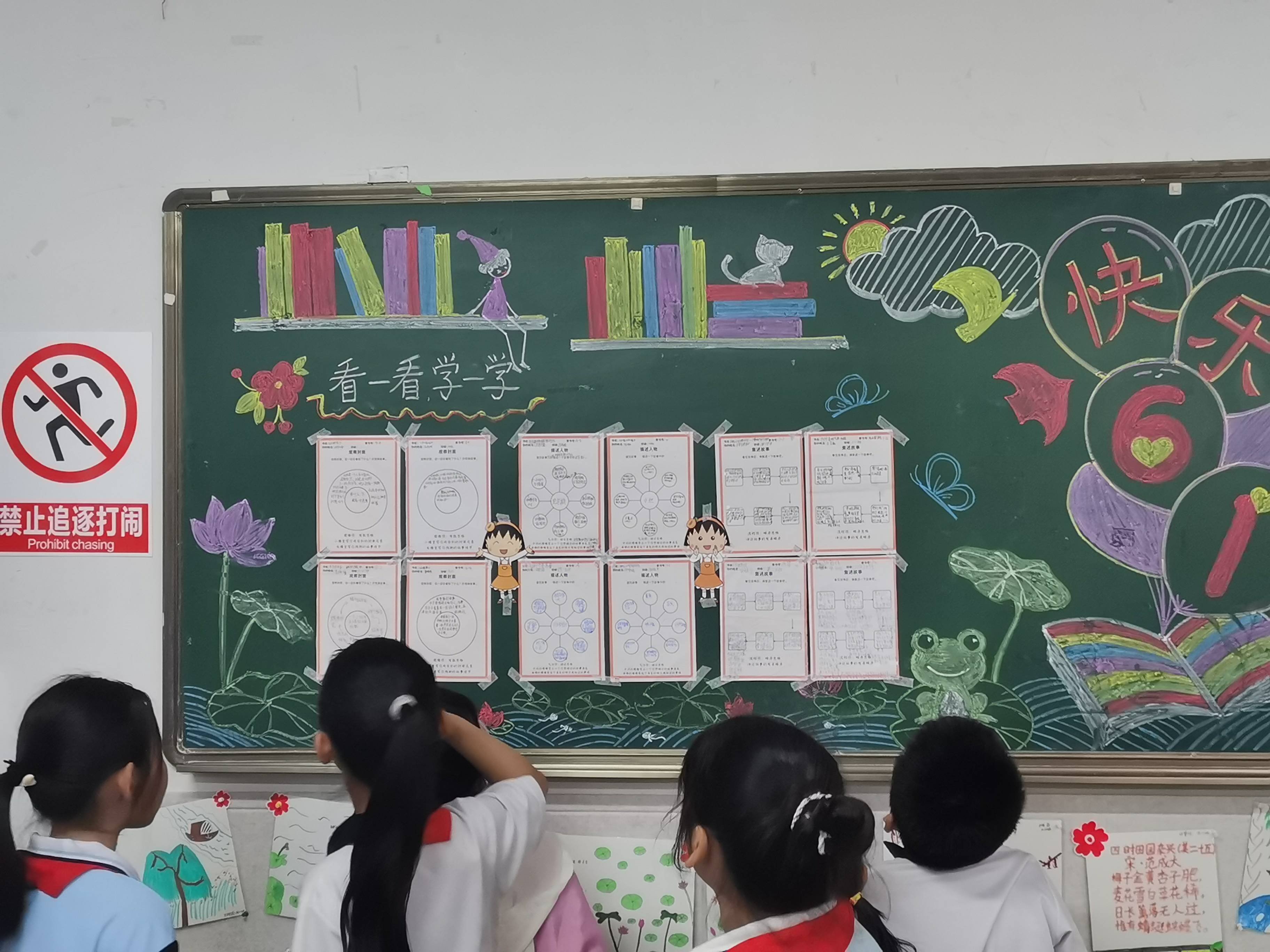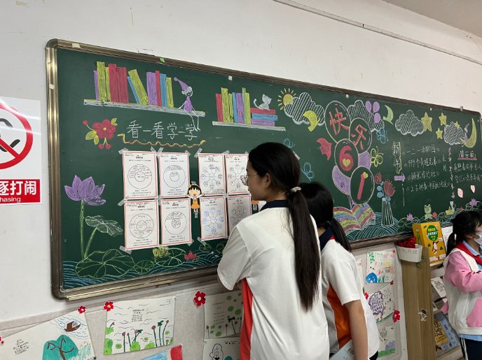 学校周五联欢,孩子们准备彩排了。今天给板报上换了几个字,也给六一节应应景。孩子们还邀请我们周五看他们演出呢。