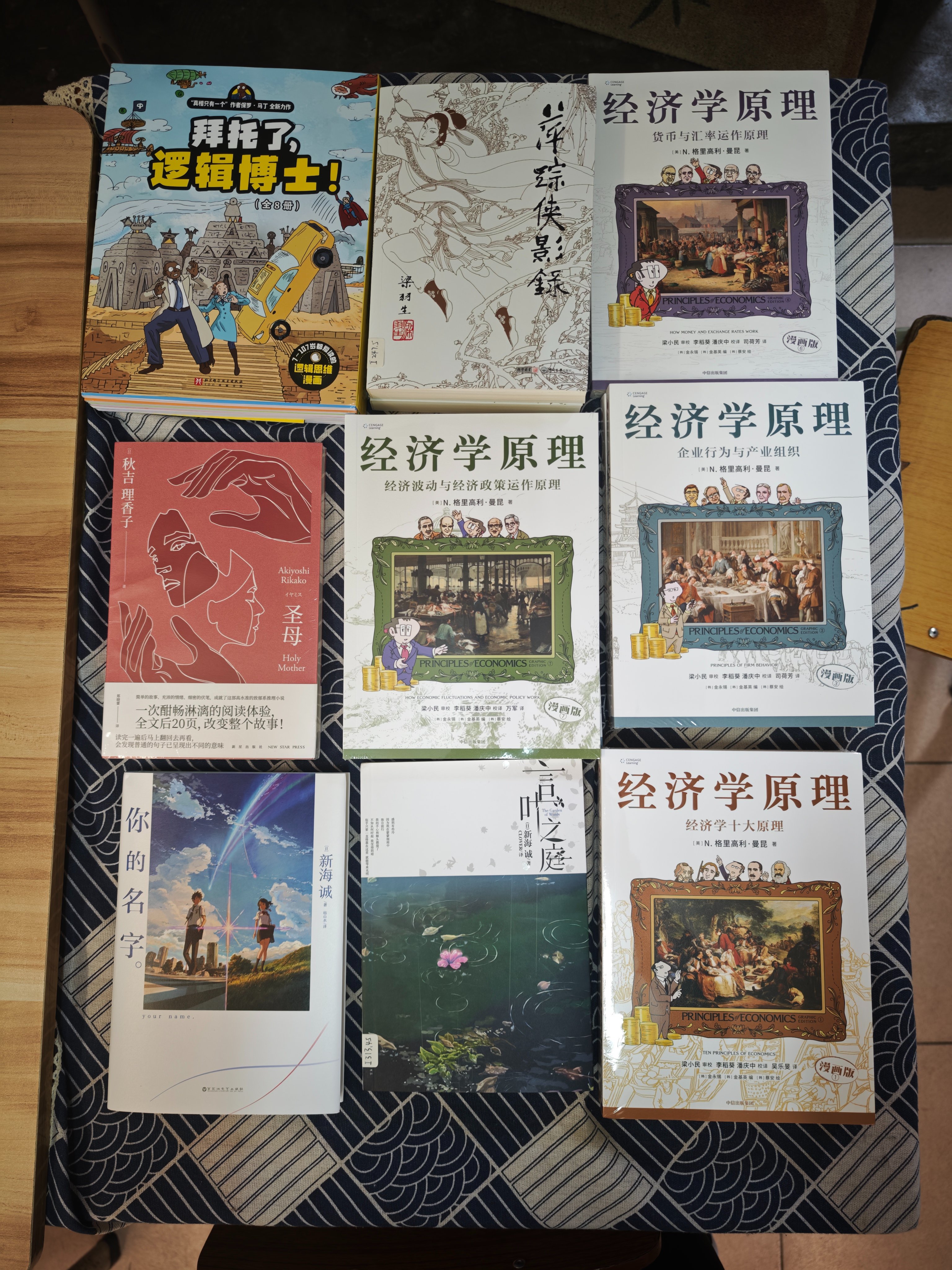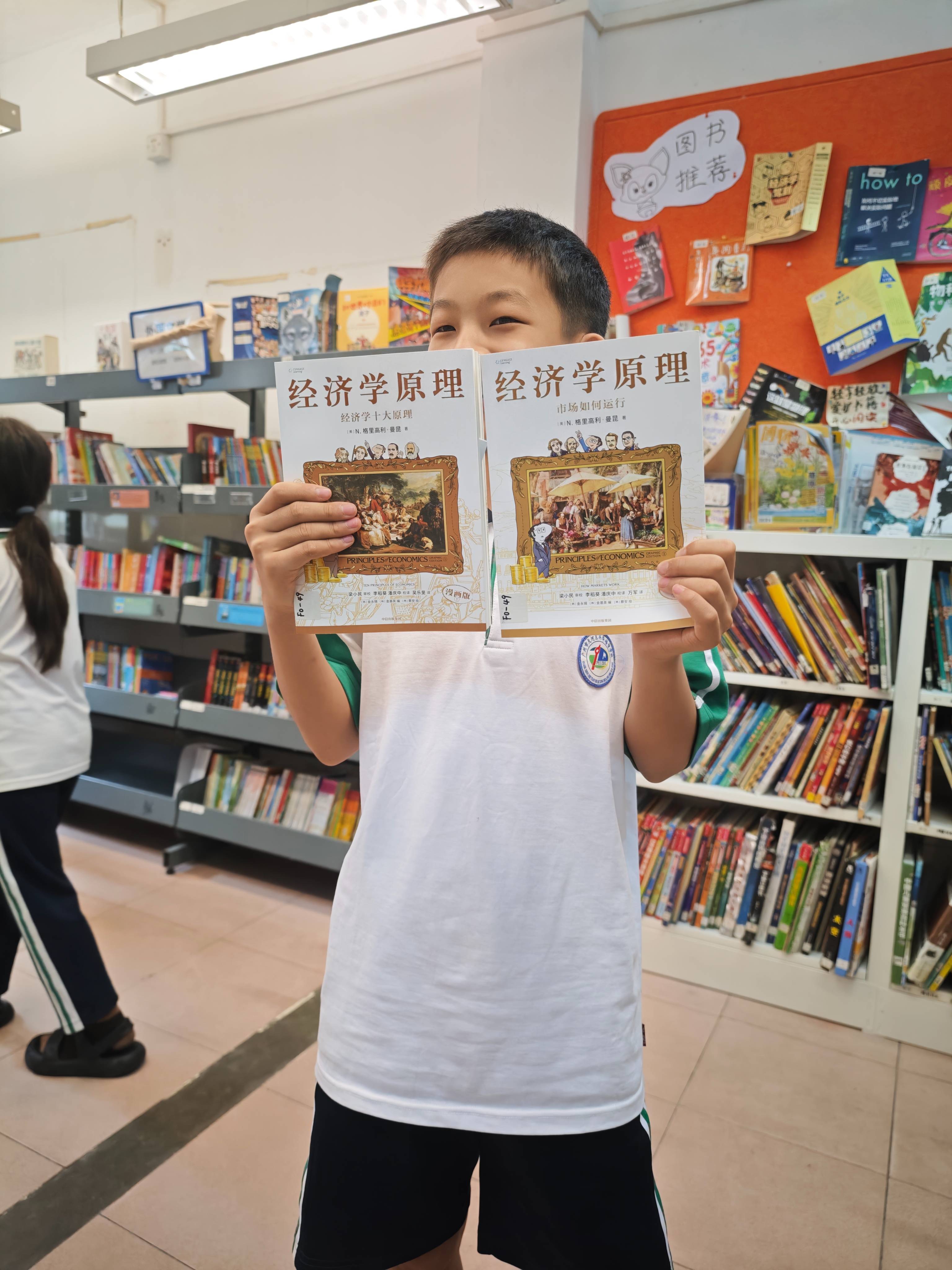 今天有新书到馆,有武侠小说《萍踪侠影》等等,抓紧时间录入让同学们能尽快借阅。其中一套七本的漫画版《经济学原理》,虽是漫画书但文字也较多也有专有名词,仍是需要耐心才能读下来的书,担心不能吸引孩子们阅读,但是七年级的小邓同学今天一眼就瞧上,借阅两本,我们也是鼓励他把全套都啃下来。