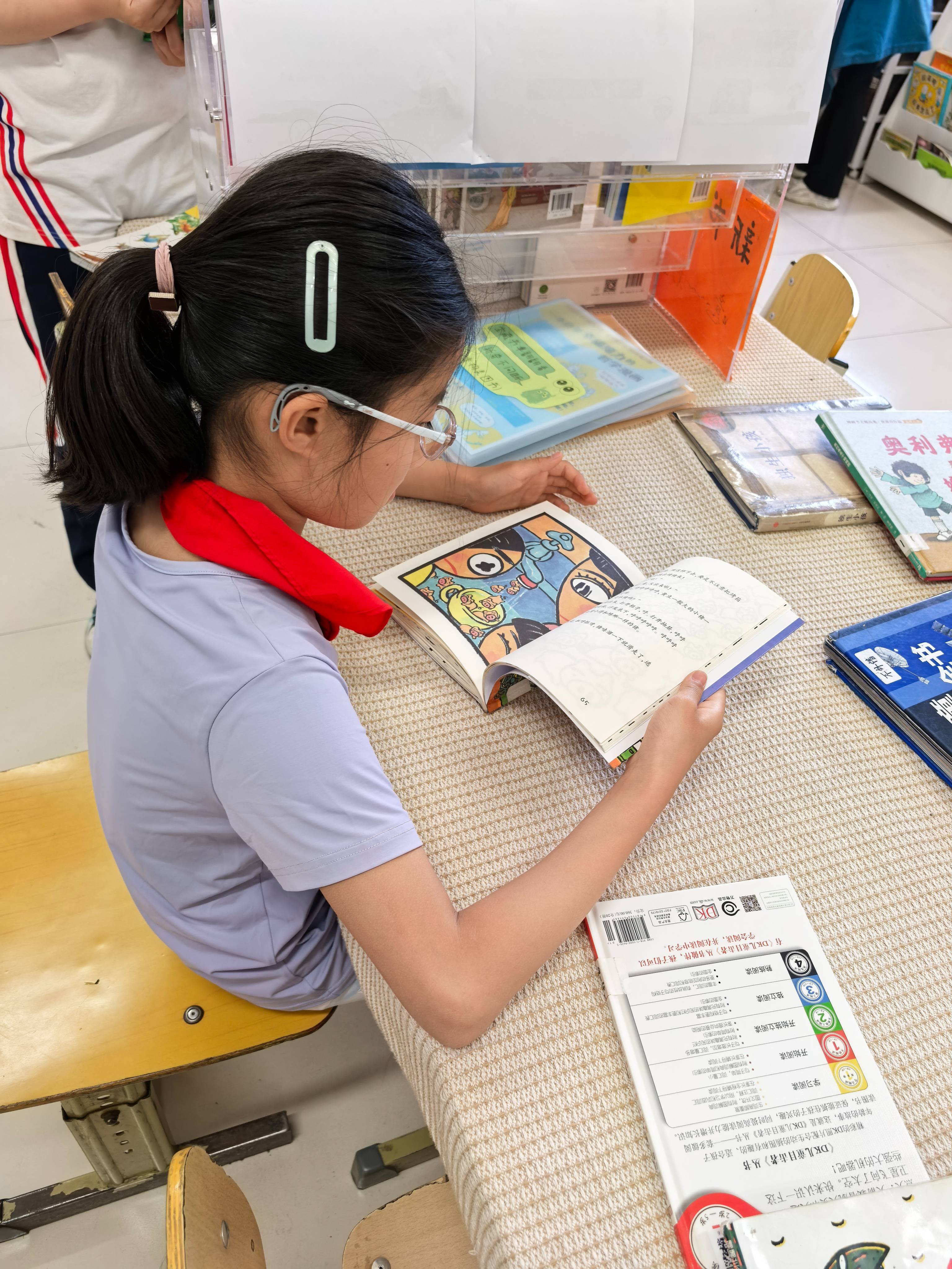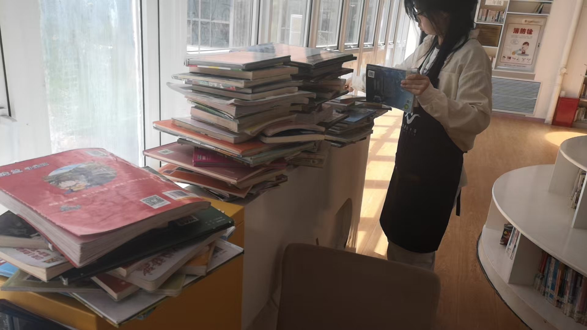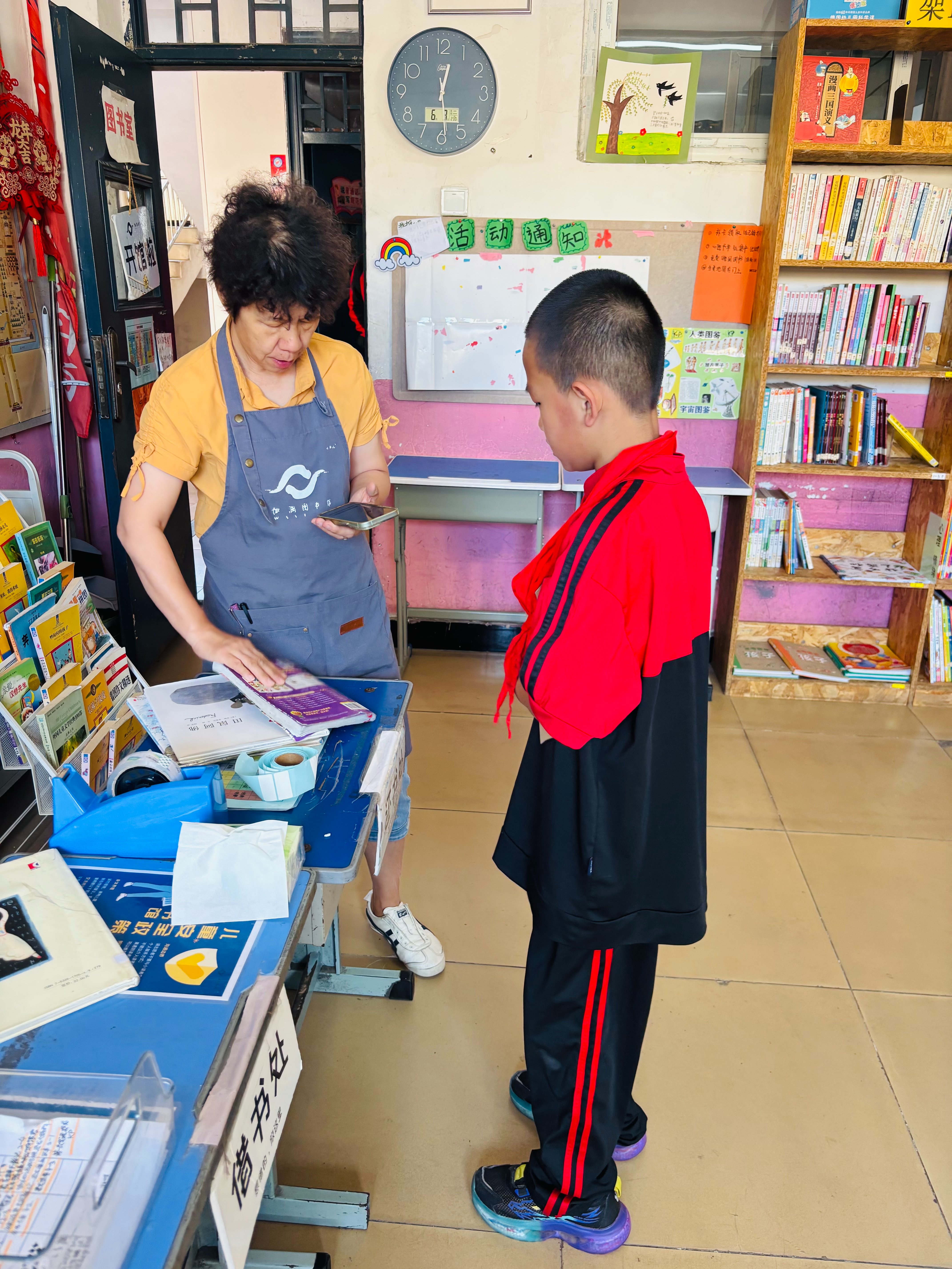 下课铃声一响,更多的孩子涌了进来,让我这个“新手”有些手忙脚乱,好在小读者们比我熟练得多,早早把码亮了出来,节约了不少时间。