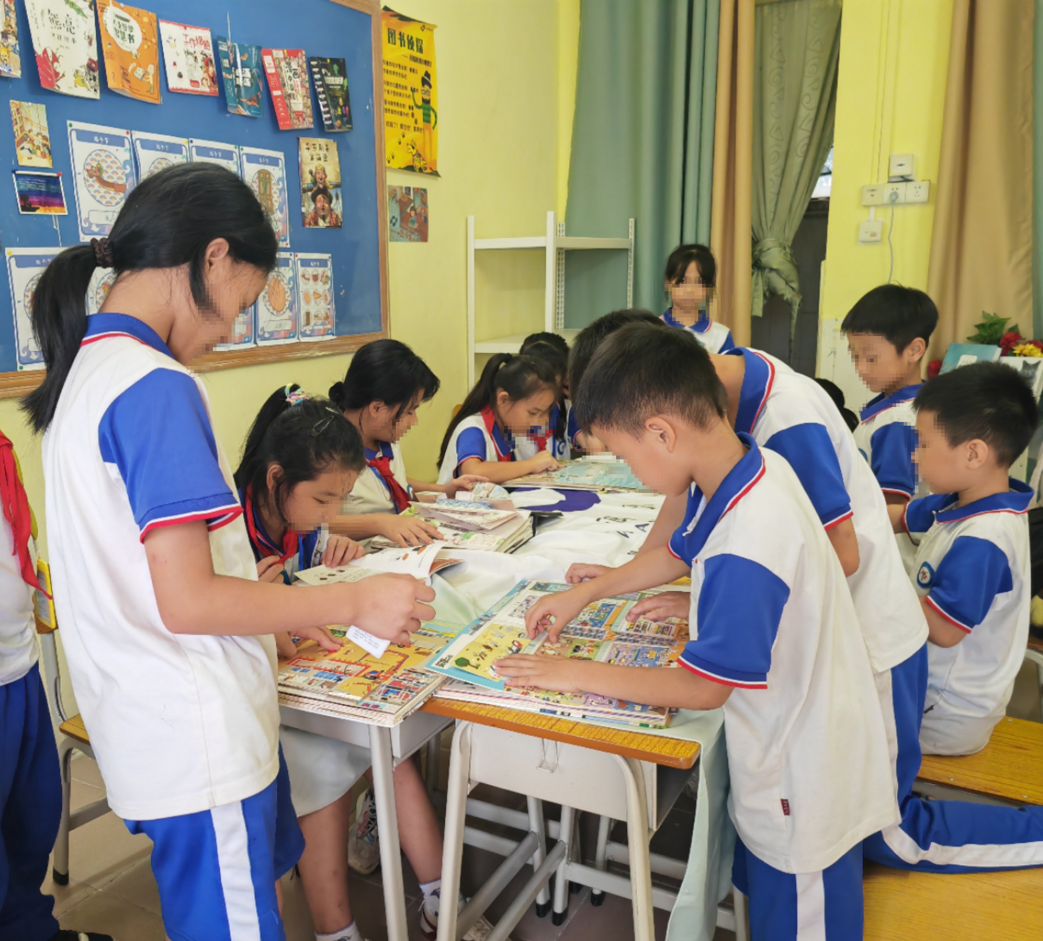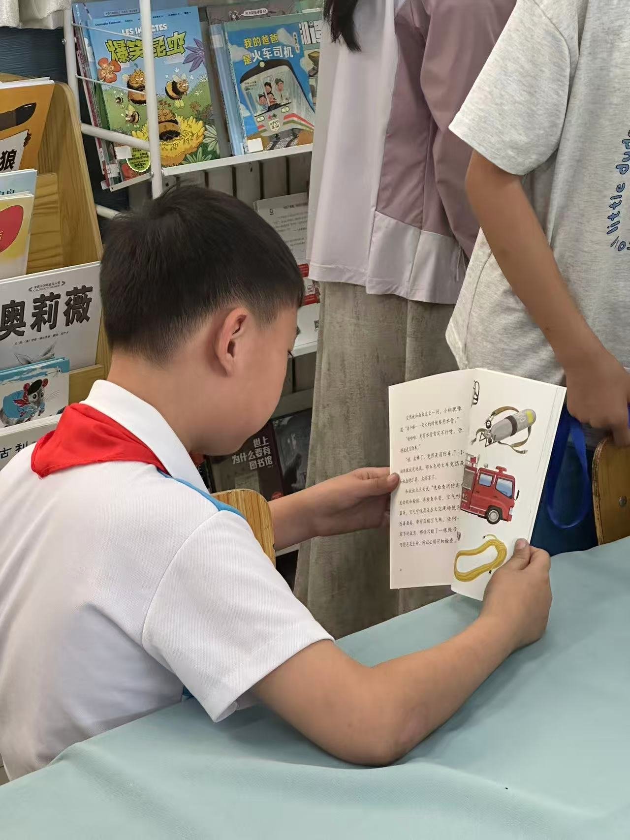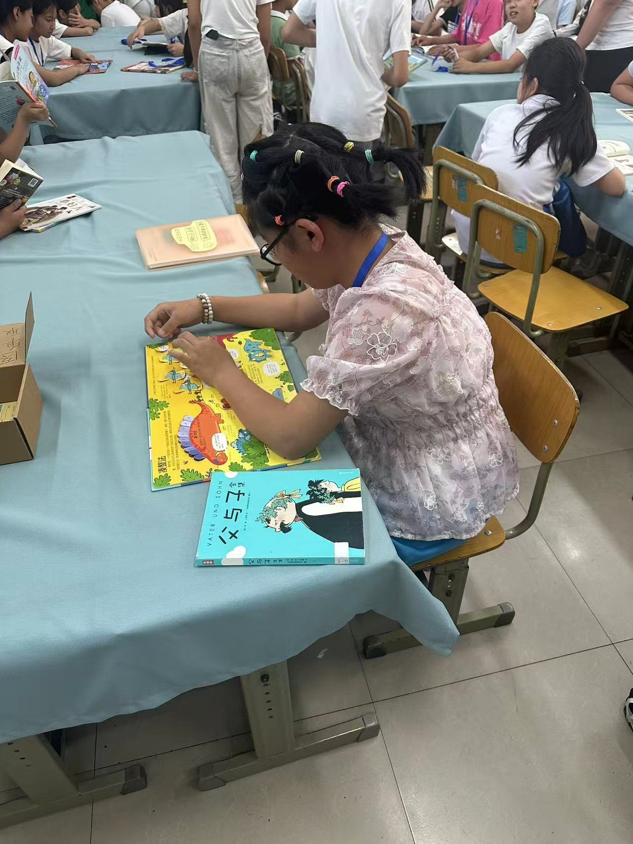 下课铃声一响,更多的孩子涌了进来,让我这个“新手”有些手忙脚乱,好在小读者们比我熟练得多,早早把码亮了出来,节约了不少时间。
