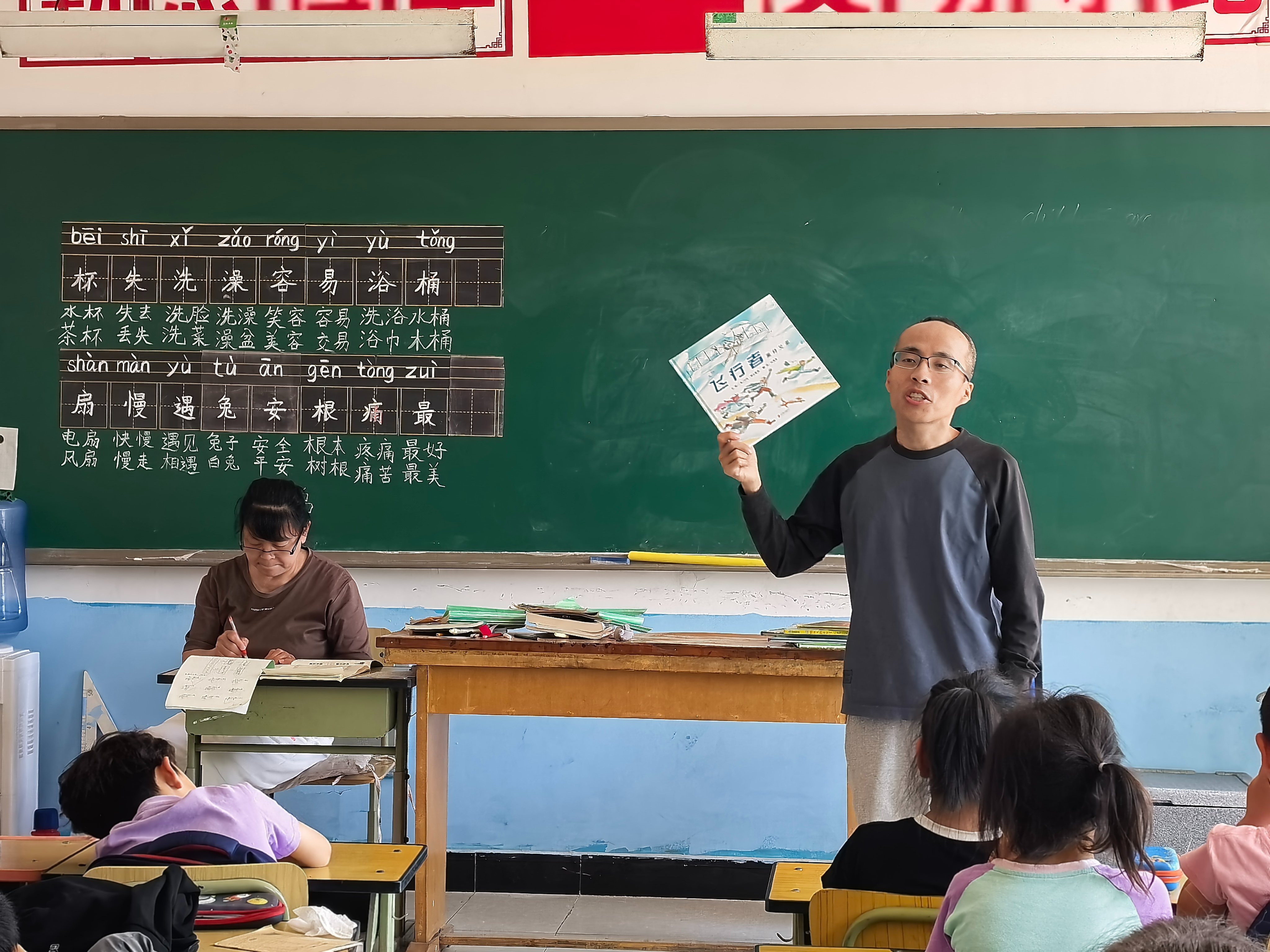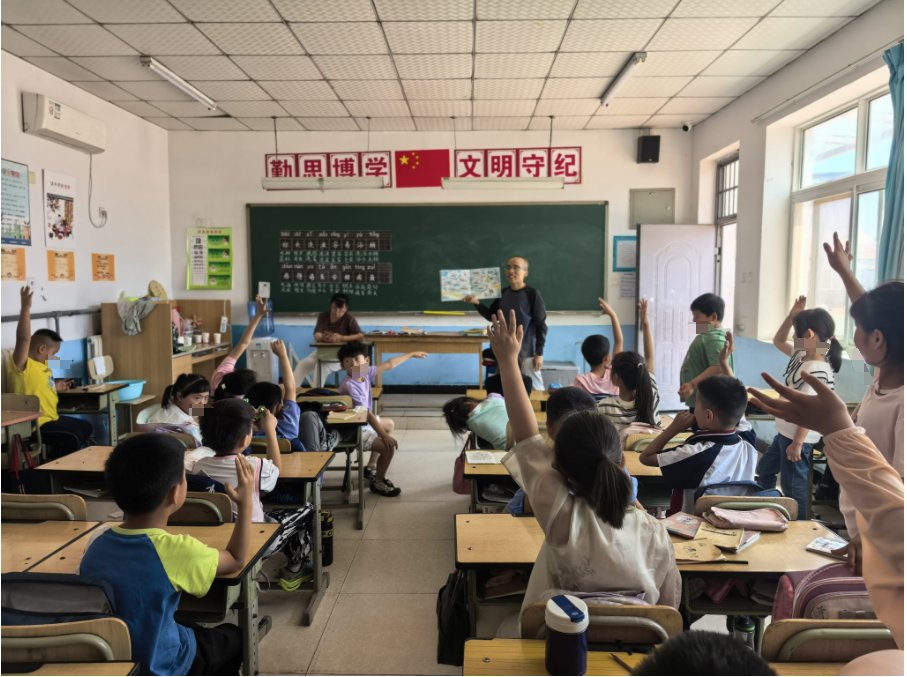 下午随稀君老师进三年级,我的天迎着热浪(热情的浪)进班,孩子们见到大脑门哥哥,高兴的欢呼雀跃,举高双臂蹦蹦跳跳的欢迎,好热烈的气氛。稀君讲了一本比较长的故事,孩子们有的在写作业,有的在画画,有的在做手工,有的什么也没干,虽然手下不停,耳朵可都在听着,最后互动的时候都能回答上一二三来。