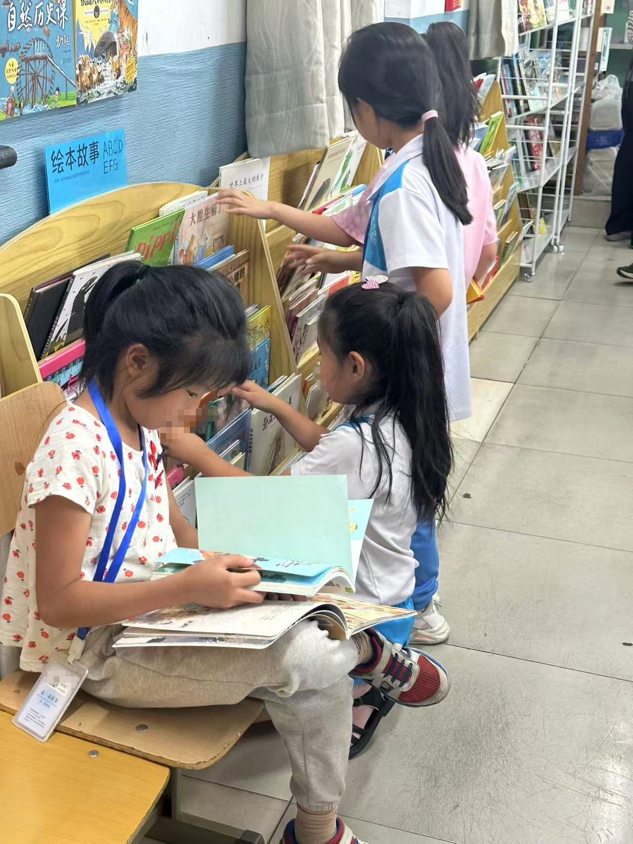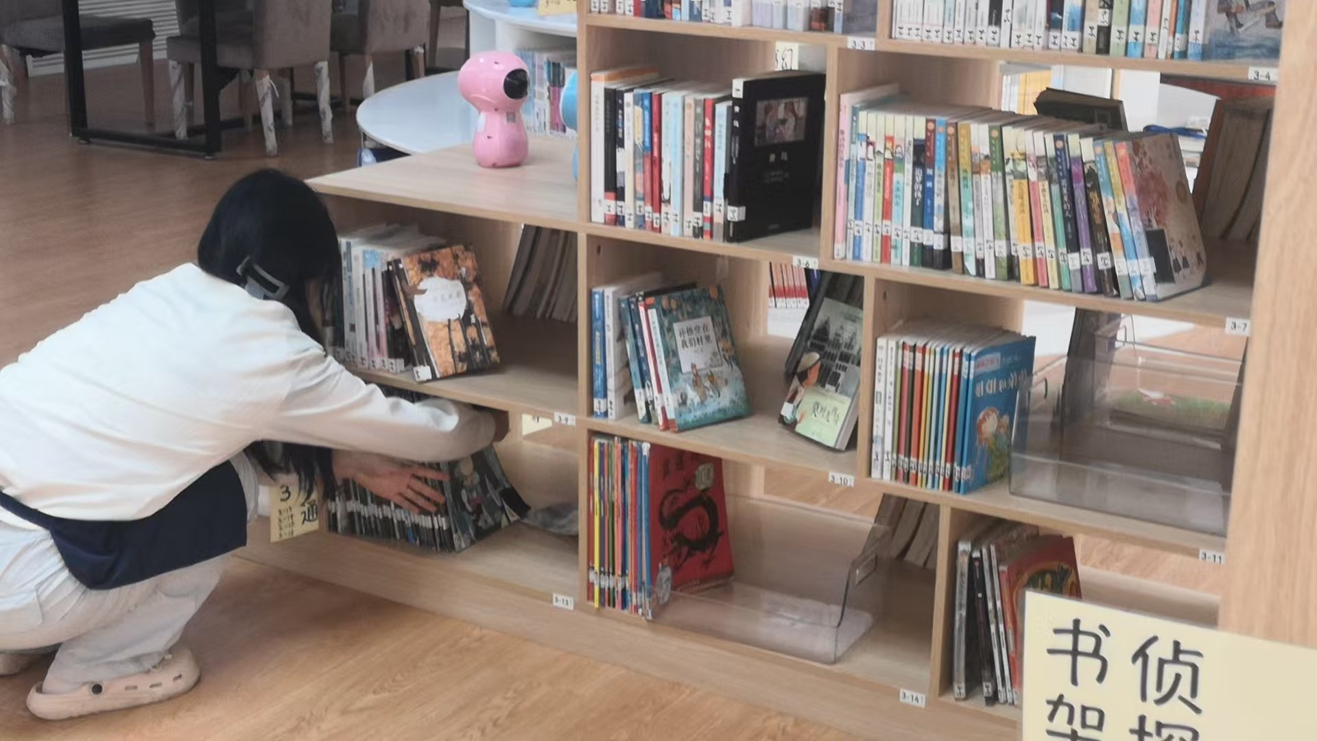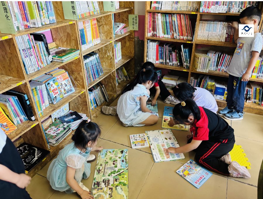 午后阳光正盛,还不到两点钟,几个小小的身影就迫不及待地跑进了微澜图书馆。他们或蹲或坐,或是踮起脚尖,以各种姿势在书架间搜寻心仪的图书。选定后孩子们也不急着借离开,而是三三两两聚在一起,偶尔小声讨论书中的情节。