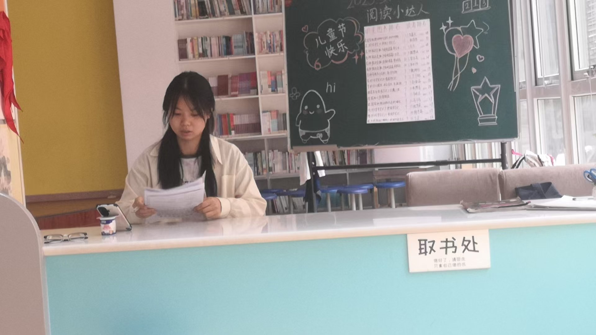 小瑜姐也把名单拿出来,趁着课间时,我们去了教室发奖。朱老师在馆里继续为同学们借阅图书。