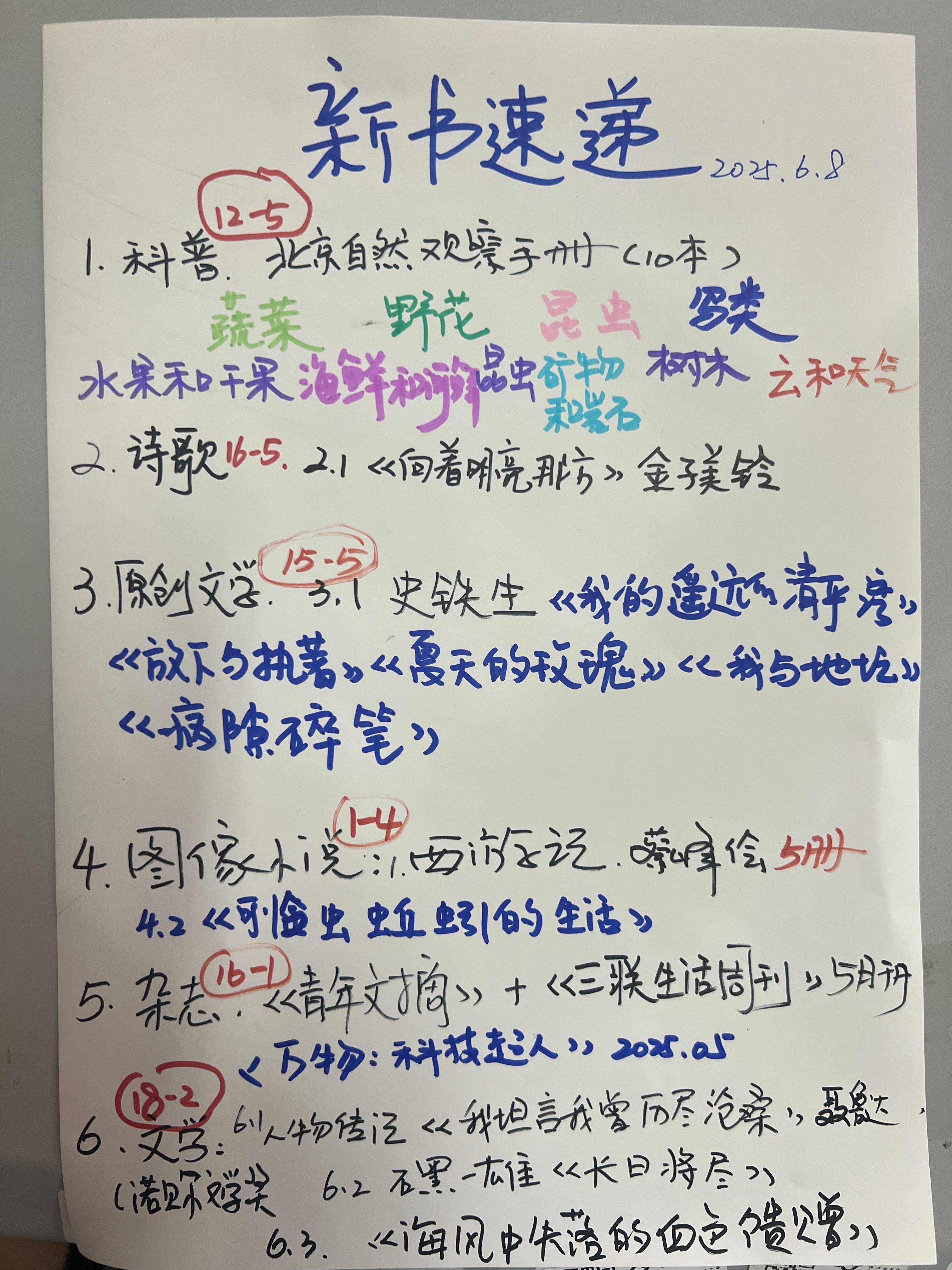 今天连lmy都很安静,下午个别孩子试图带走书,被提醒了。整体借阅情况,因为孩子不是全部在校,小学部分班级期末被禁止借阅,初中孩子没怎么见,高中孩子有的没有借阅额度,有的孩子说我先借阅一本,虽然和几个孩子聊了说高考没有影响自己,但孩子也表示最近很累,看书的心情都不大,但整理还是,高中孩子们的借阅,特别一些孩子虽然没有借阅,但在书架前讨论书,让人振奋,看书要看顶级好的,一个借了bbc讲五四运动的书,后来一个借了哈佛中国史。想到高考的作文题目,喜忧参半,喜是一些好作者好书可以被呈现,而是其实所谓想讨论的立意似乎又有某种引导性。因为明天还有考试,即使见到了高三的孩子,也没有主动聊起。某同学来让签了名,有几个孩子还想借书,不可以,表示遗憾,还有个别孩子帮忙去教室找了书来还。
