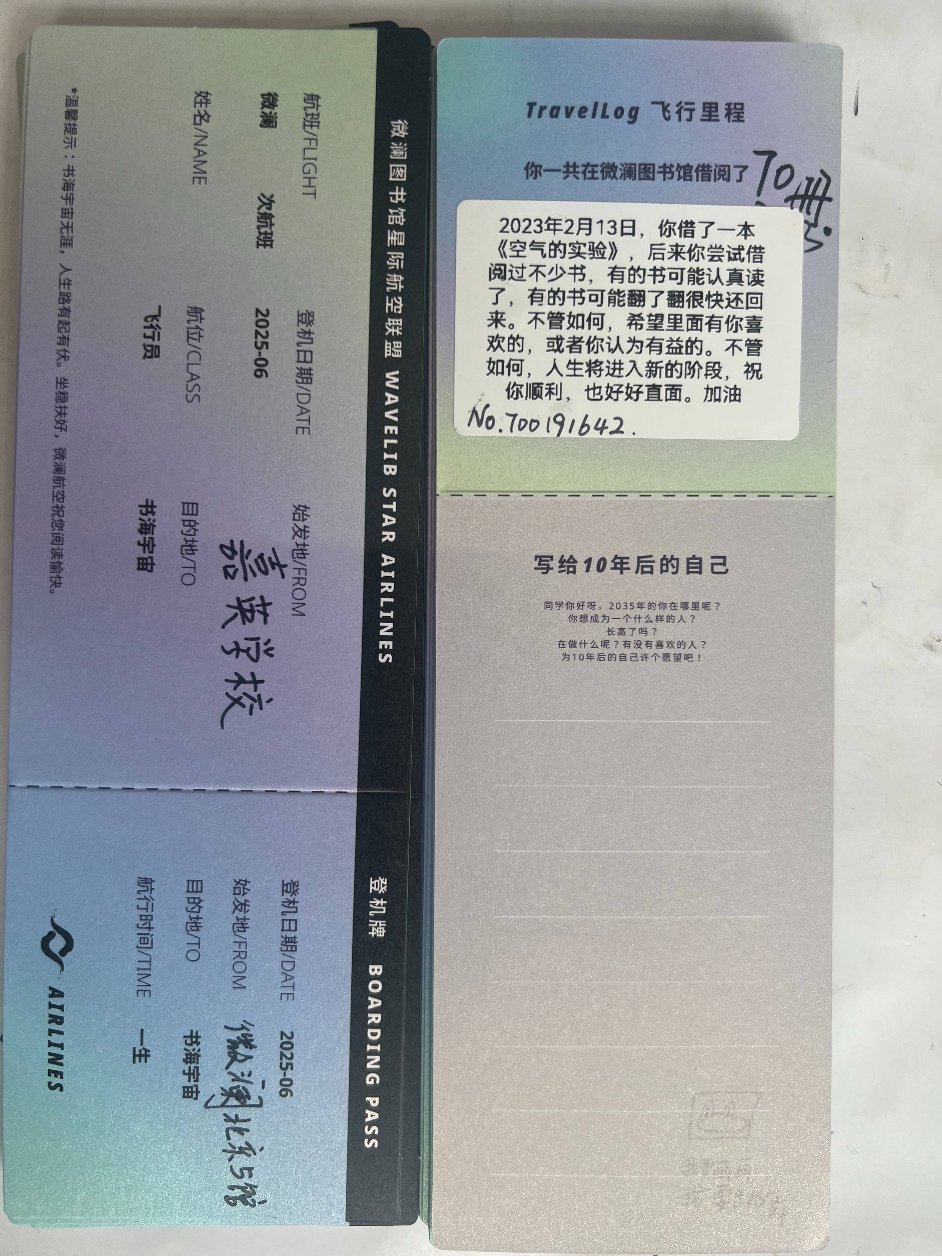 一大早,把上次值班少准备的两位六年级同学的卡片赶制出来,毅桦还给每张卡片贴上了NFC芯片卡,保存着同学们在图书馆的合影,好有意思。这些小小的祝福在中午就送到了同学们的手中,希望那些美好的语句,在未来,能化成生命中一股小小的力量。