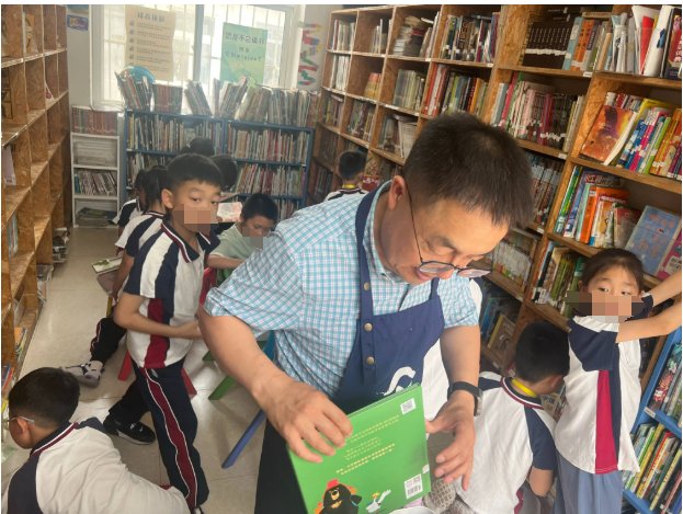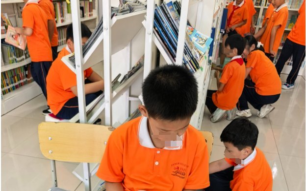 二年级绘本课正常进行,老师有些着急同学的作业,要求在图书馆借还书后回教室上课。