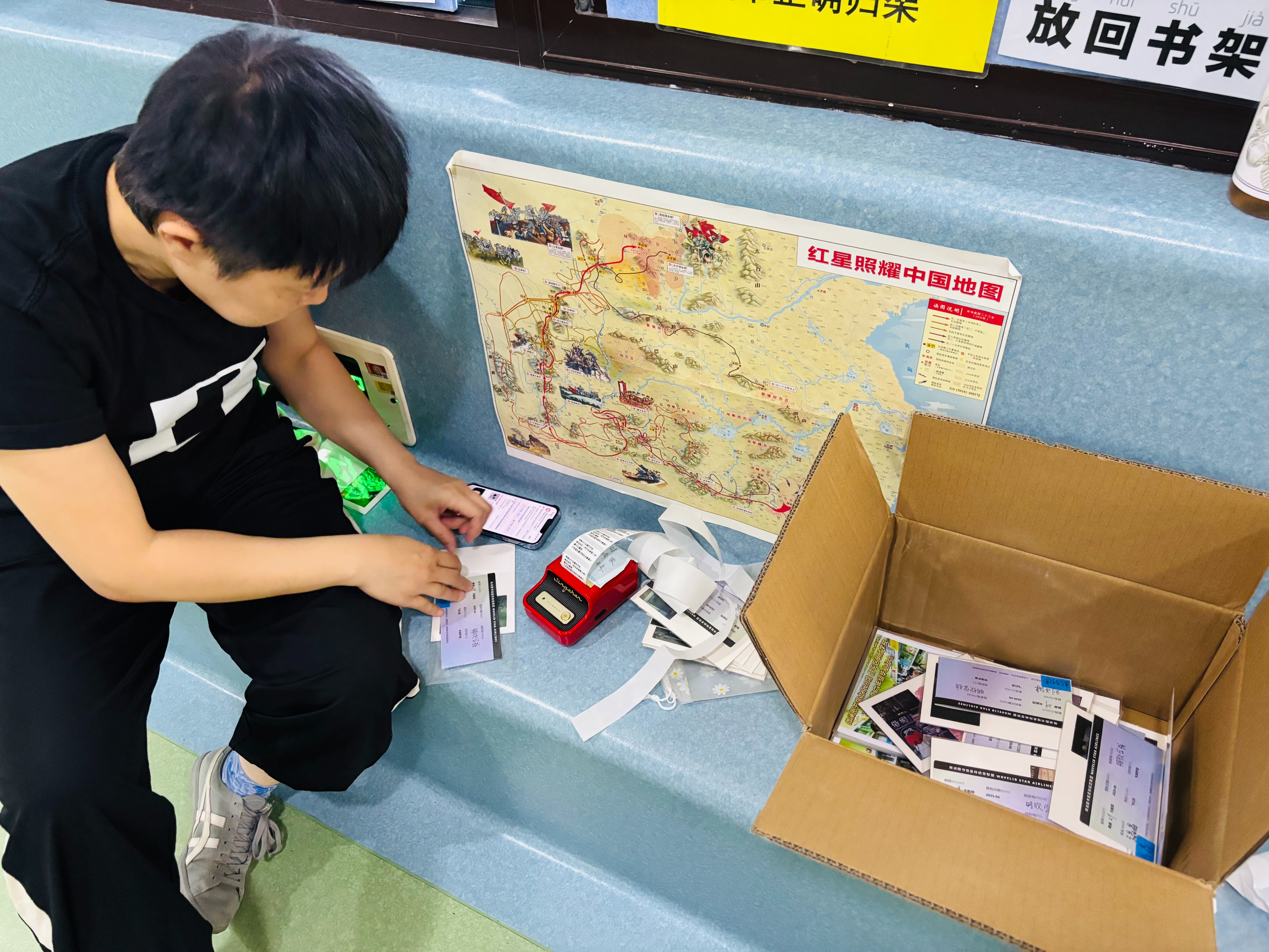 今天还有日常的借书还书的工作,还有一个同学捐了书...最后闭馆的时候,又有一个同学给我收拾凳子...感谢这些可爱的孩子们😁