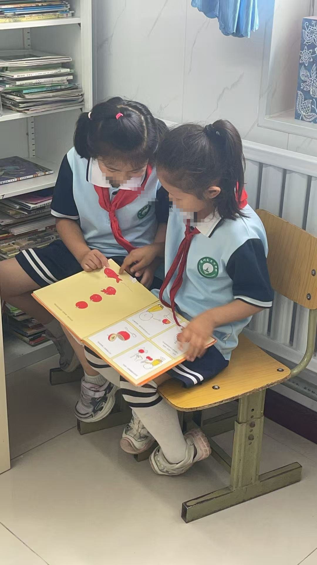 感觉好久没见孩子们啦。我和方老师一来就被孩子们包围了,换盲盒,借还书。中午忙活一阵。上课铃一响,孩子们如潮水般退去。我俩又忙着收拾‘阵地’。