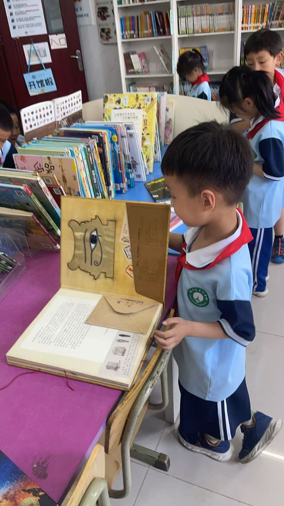 一早到馆,孩子看图书开门了,都主动来还书,有的孩子还想再借阅图书,给她(他)解释后,都很开心的走了;随说4馆春季开学开馆完了些,由于原来王校的引领,孩子们借阅氛围还是非常好的,暑期早闭馆了,只有给孩子们留点遗憾。