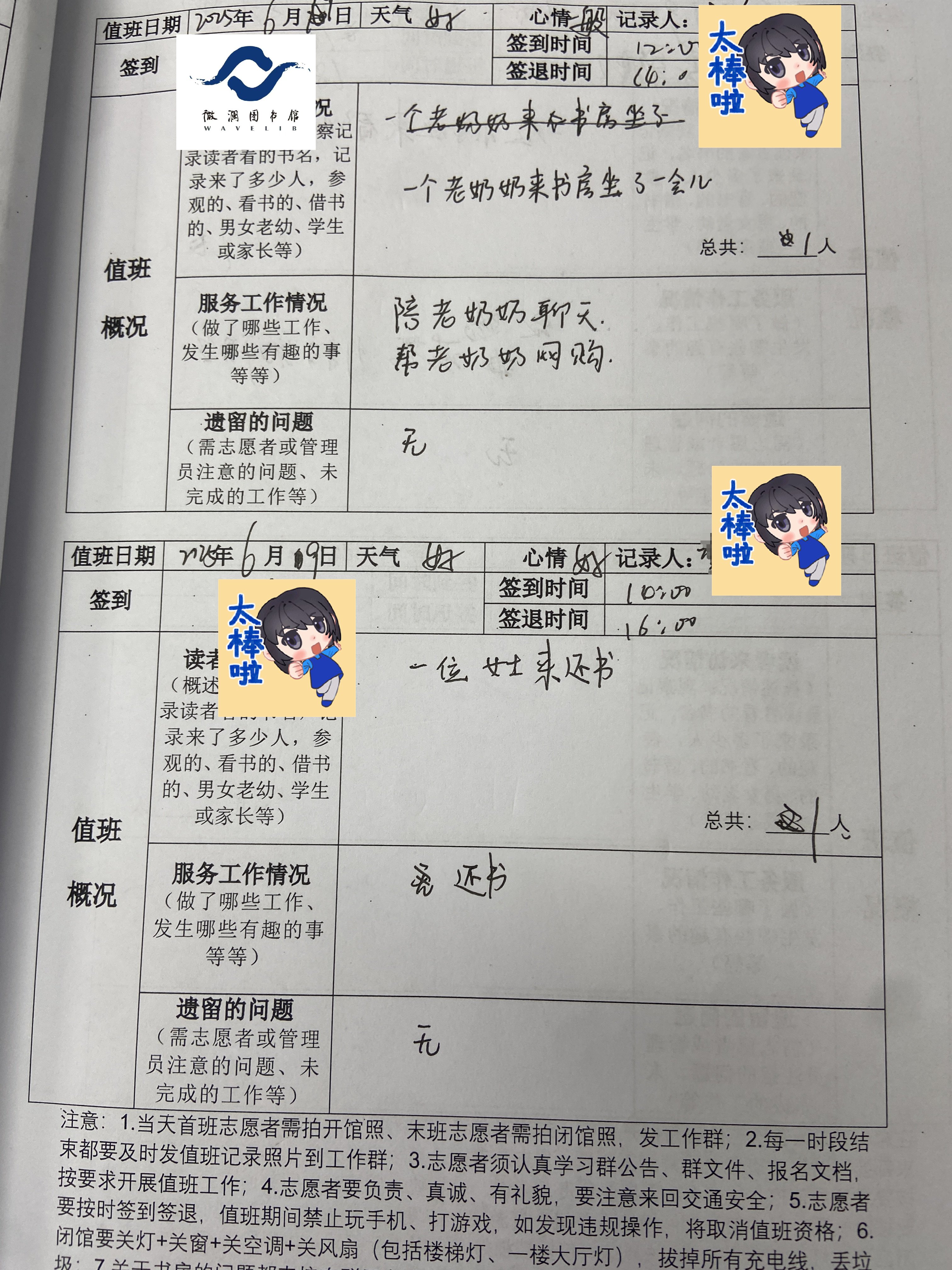下午李姿言到馆值班,她是第二次微澜值班,见面才知她是位高一的学生,她很喜欢看书,也很为小孩子们做些帮助,在小红书上遇见了微澜,她是很乖巧的女孩,真诚、善良值得我学习。