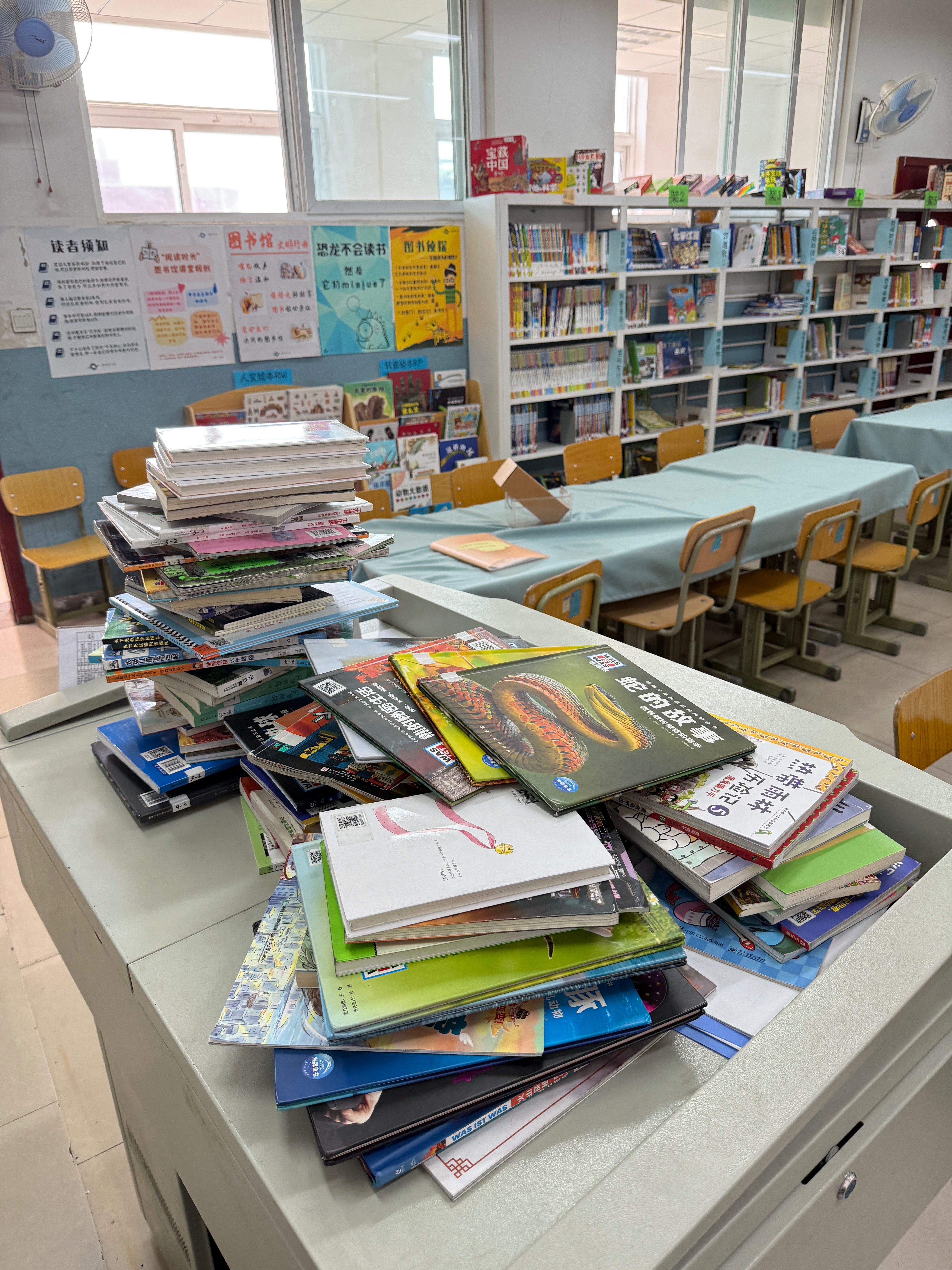 今天算是正式de结束最后一天,会给小朋友们考完试提供假期的借阅服务,这一次收到的捐赠的大批新书,希望小朋友们会喜欢~已经能想象他们兴奋的表情了😊