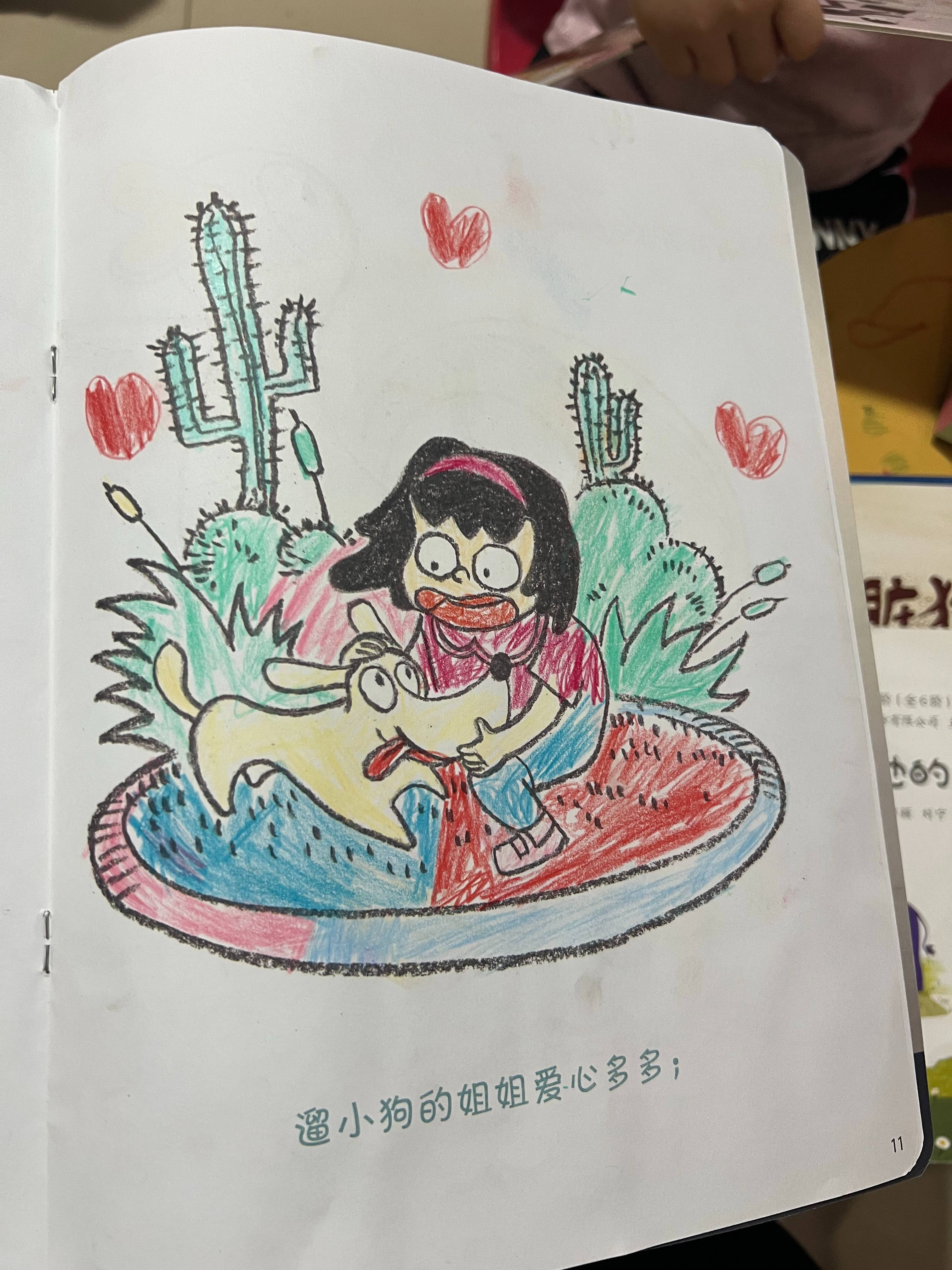 那个爱打人的女孩子上次告诉我她下学期不在这里了,要转学去别的学校,我送了她一本书,虽然字写得很难看,但也写了一行字给她“愿你无论身在何处都能热爱阅读”,小朋友很开心。