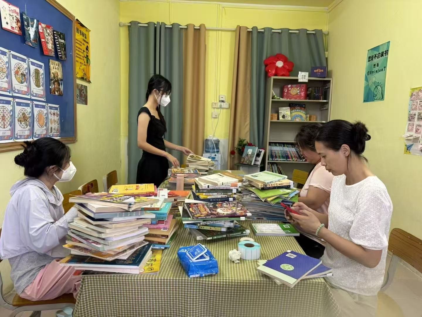 3.图书角收回的绘本和大家一起整理盖章,修补,修改了索书号并放回书架,已全部整理。