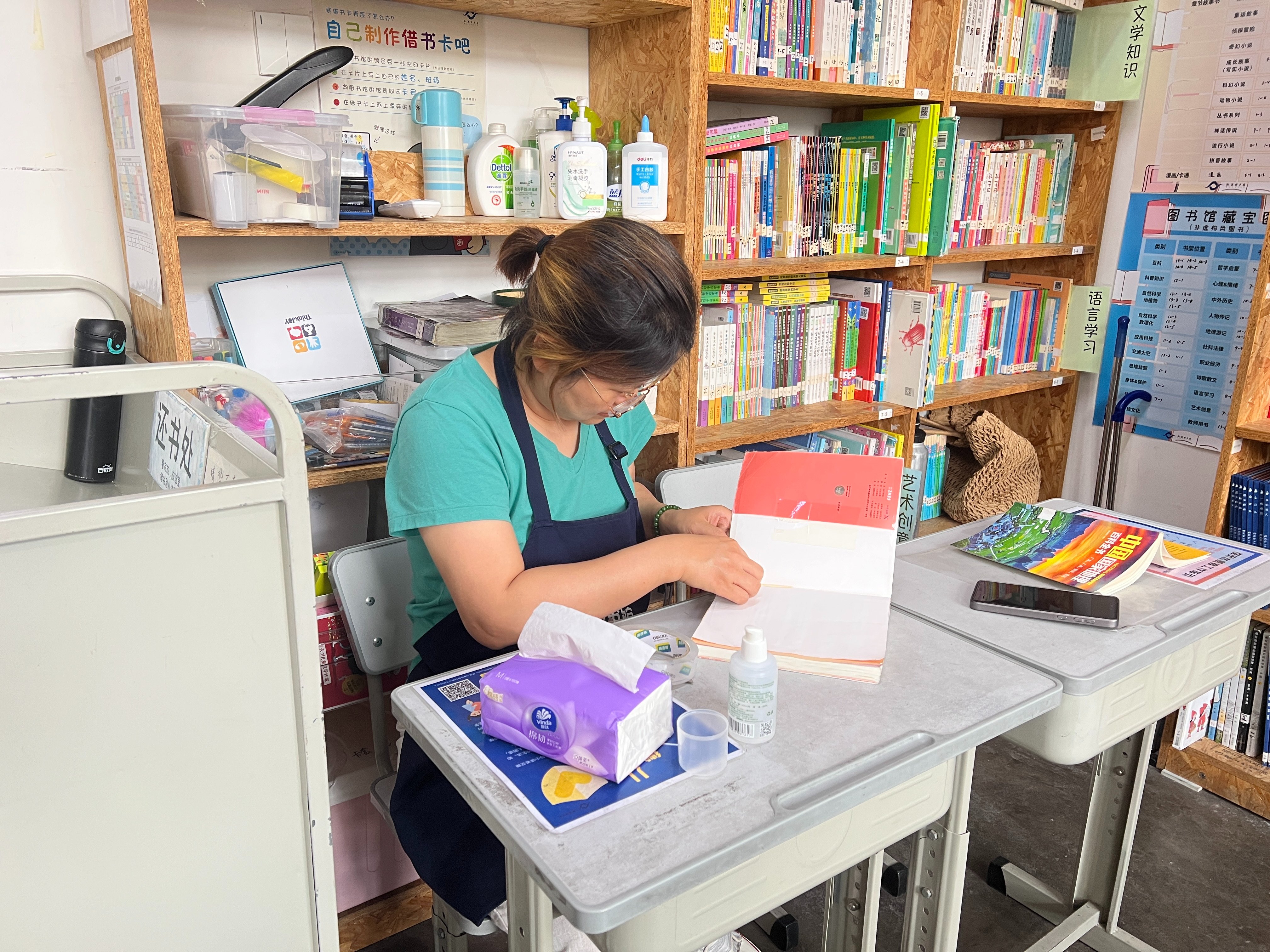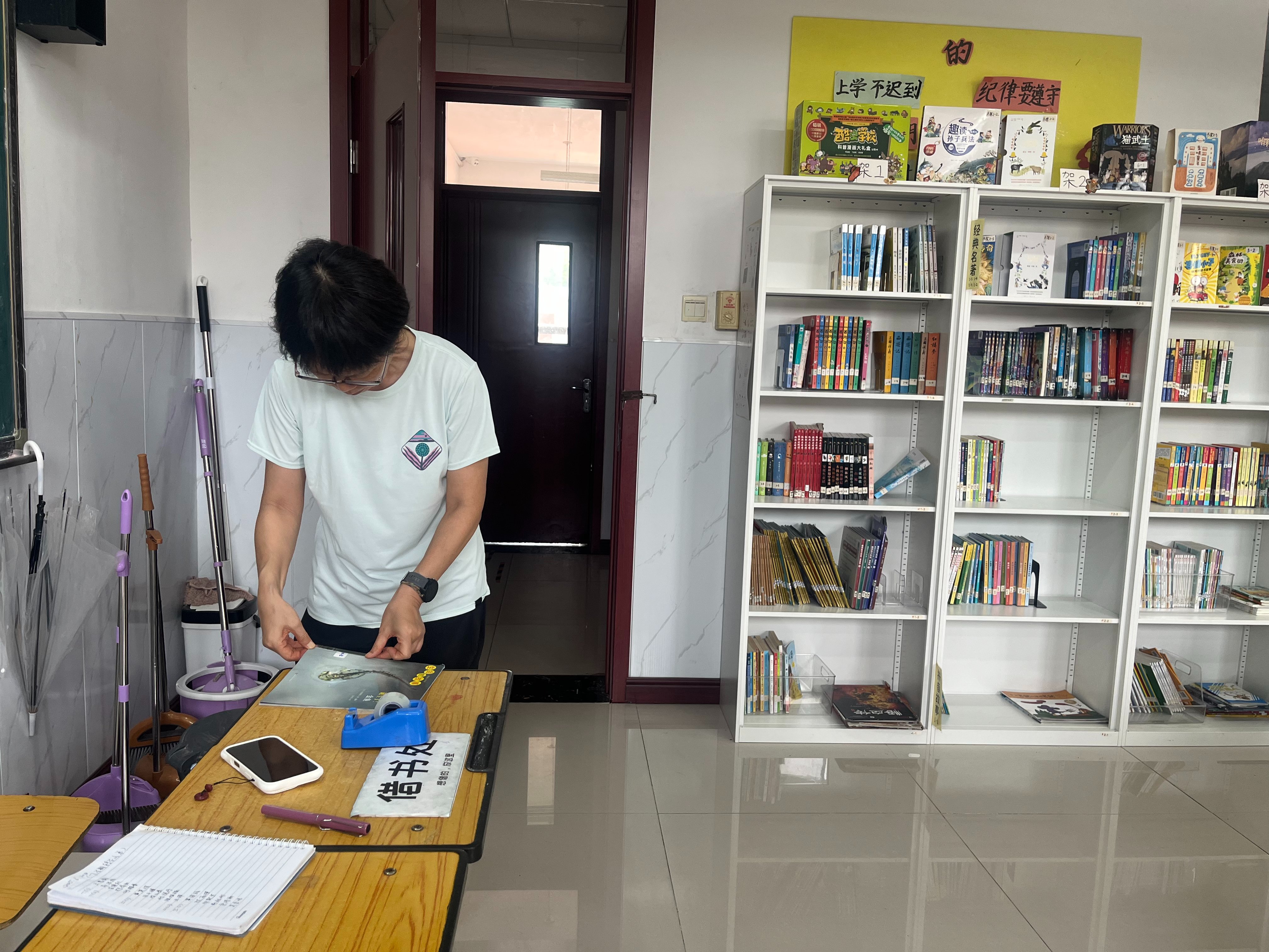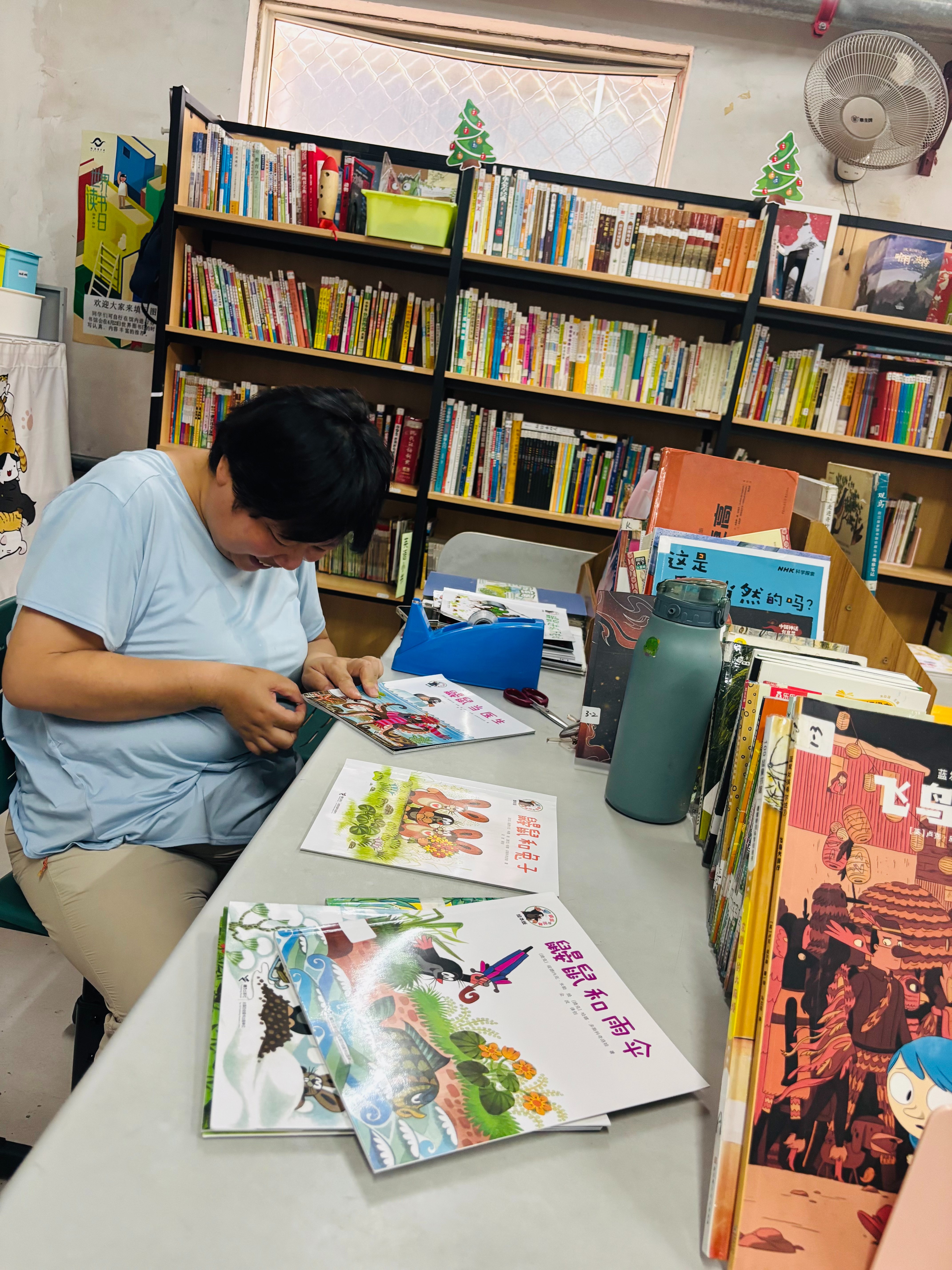 2.整理书架。归位书籍,整理书架。已挑出部分破损的。