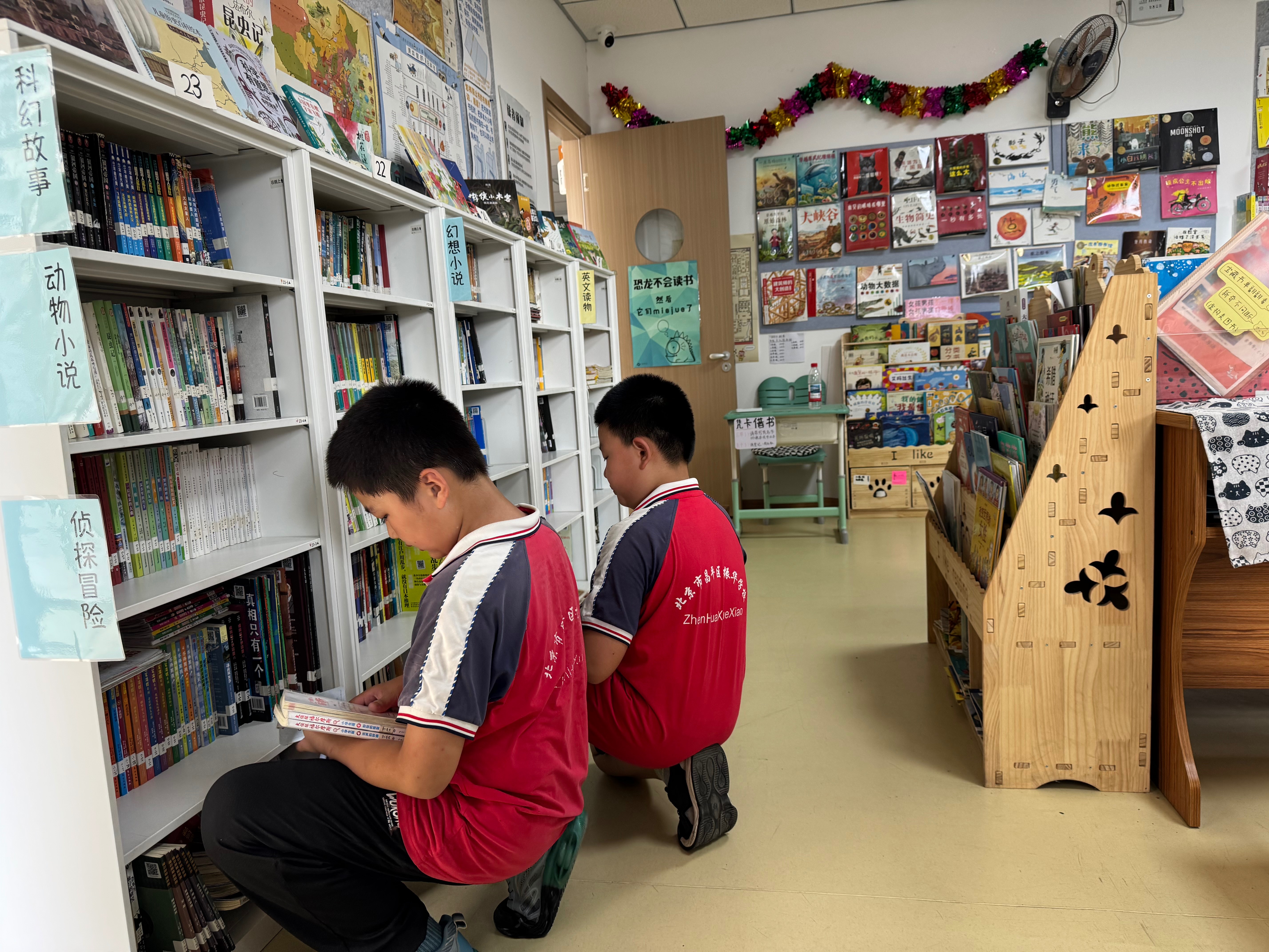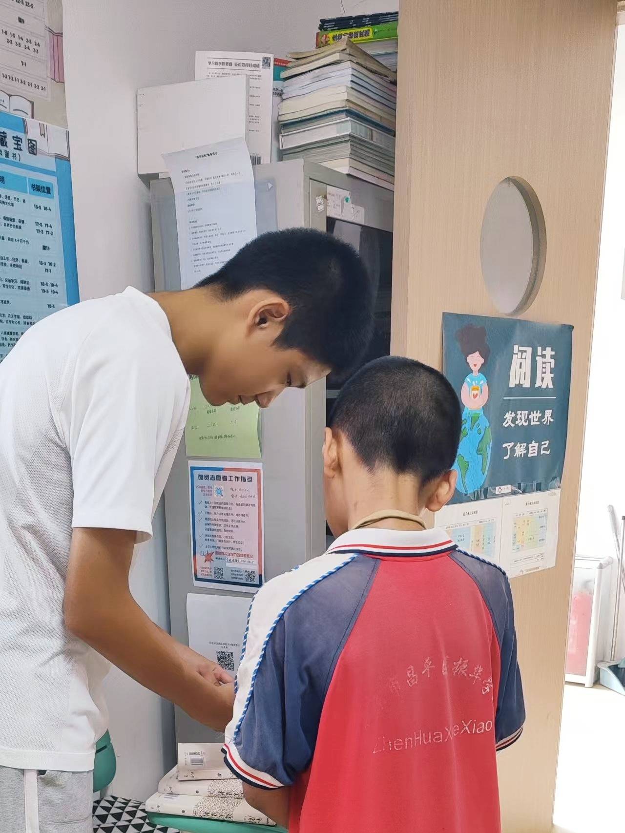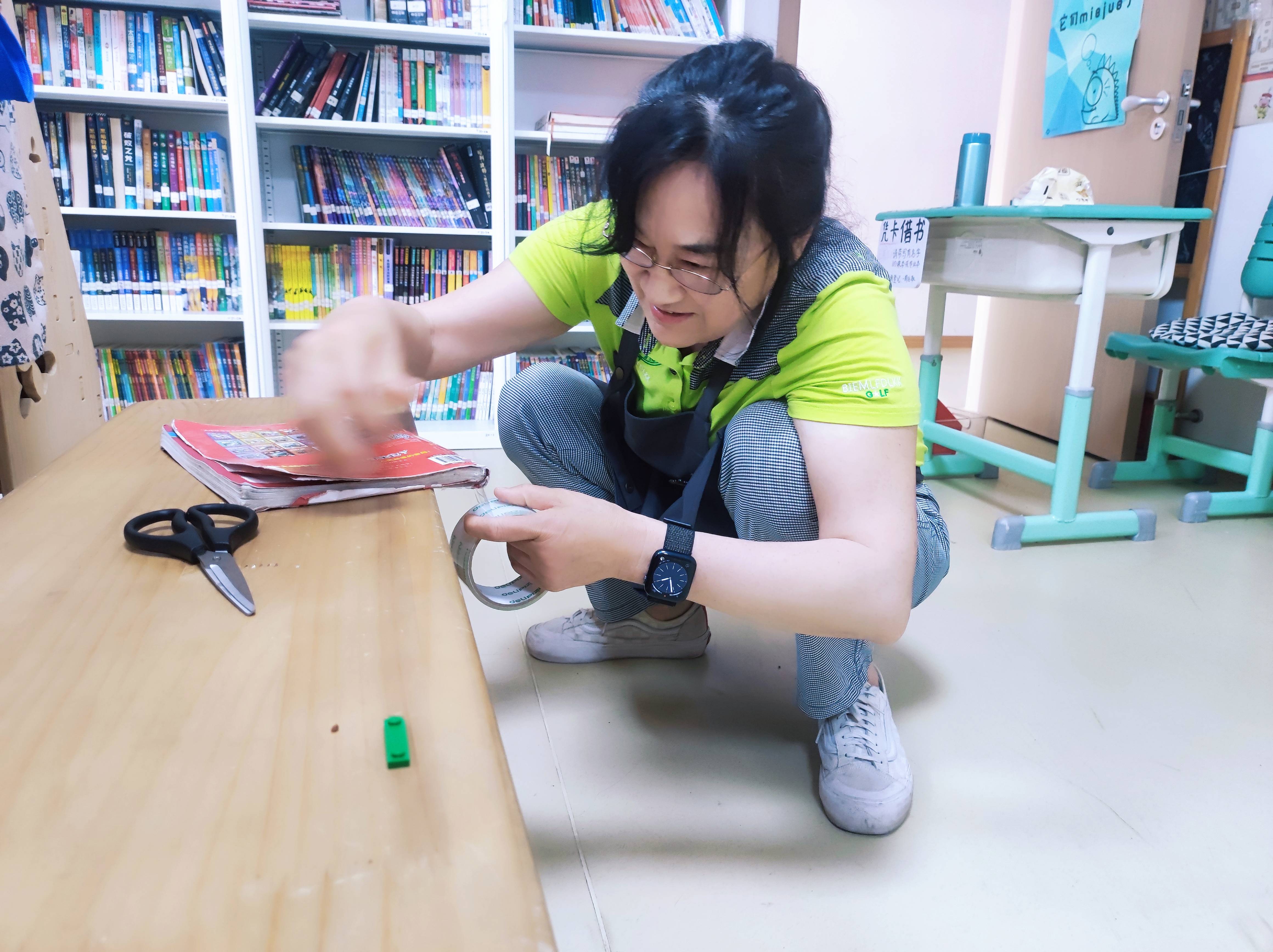 走进校园安静如期,期末考试也在紧张的氛围中结束,一起微班的是高老师能与孩子们在最后开馆的日子里度过非常的开心……开馆啦!虽然是考试日,但是爱读书的小读者还是来图书馆借书、还书秩序井然,虽然馆里有个小插曲也是添了不少乐趣:有两个好朋友一起来图书馆借书,两人同时看到一本心仪的书,欢喜地转起了跑圈圈,最后在高老师的引导下才平息了,两个好朋友假期可以交换分享好书推荐即可;此外,馆里跑来一个五年级即将要转学男孩子,他说:一位阿姨告诉他给他照的照片,让他开馆来取照片留念,刚要在群里艾特给他问,结果孩子失望的跑开了,连名字还没来得及问就消失在跑远的背影中……除此之外,灿宝的加盟帮忙整理了图书馆里的书,还帮忙为小读者办理还书、图书归架的服务,高老师还把破旧的书进行了修补处理。在馆里发现了各处藏书据点现象,在桌子底下、绘本书籍架上等等……在整理书架时还发现了很多的书并且还都是藏的很有“学问”呢。