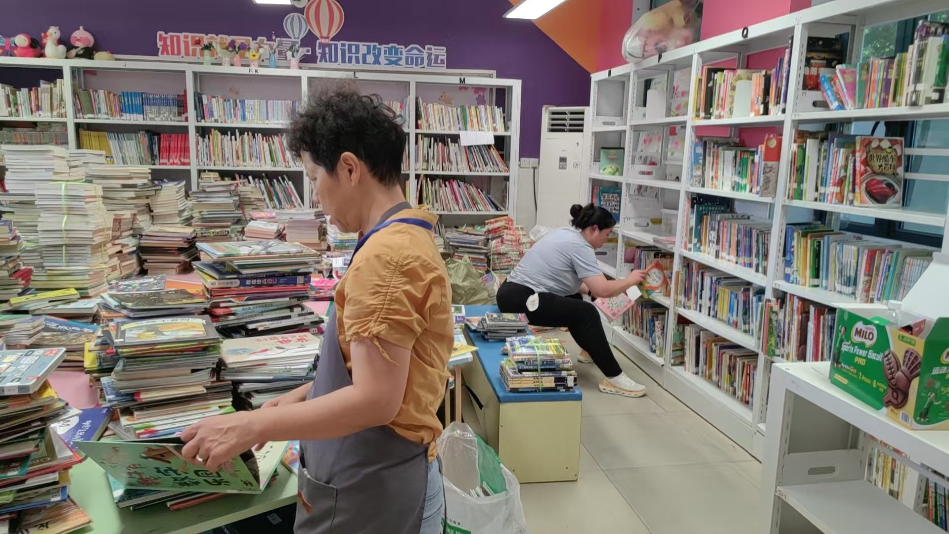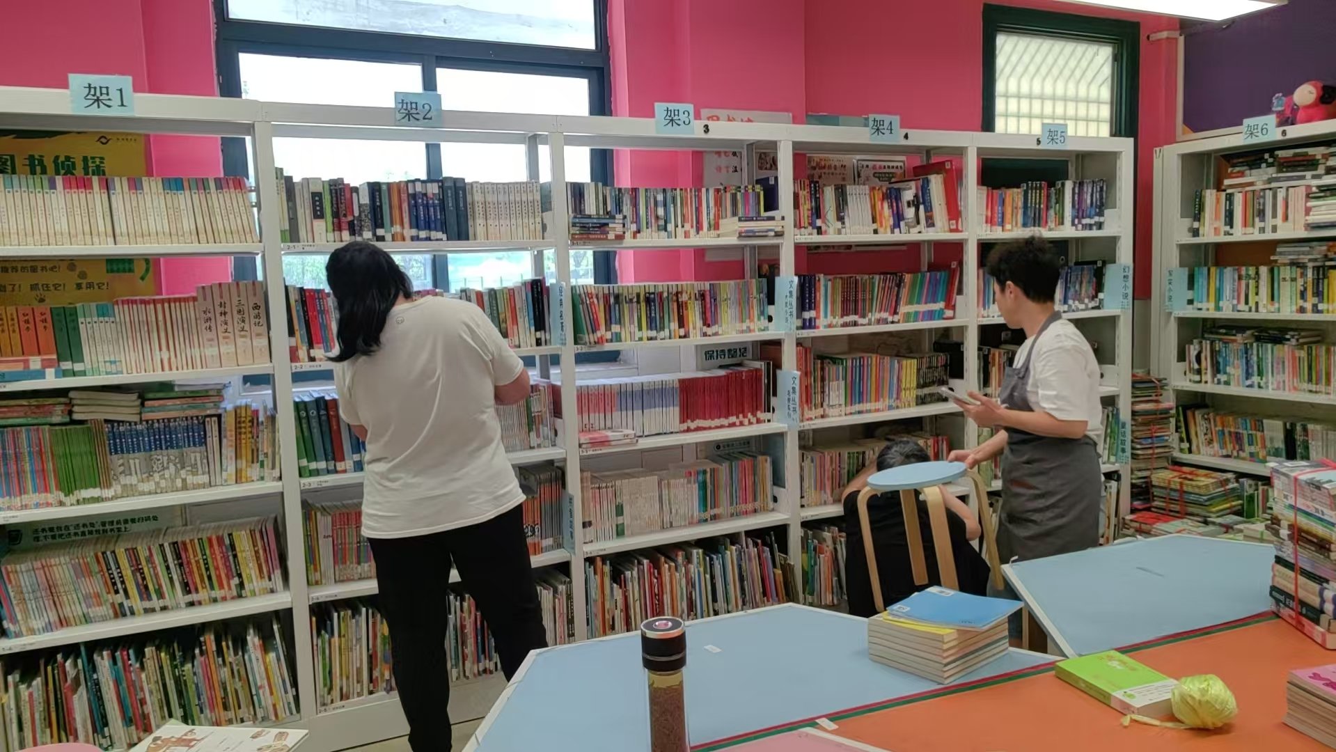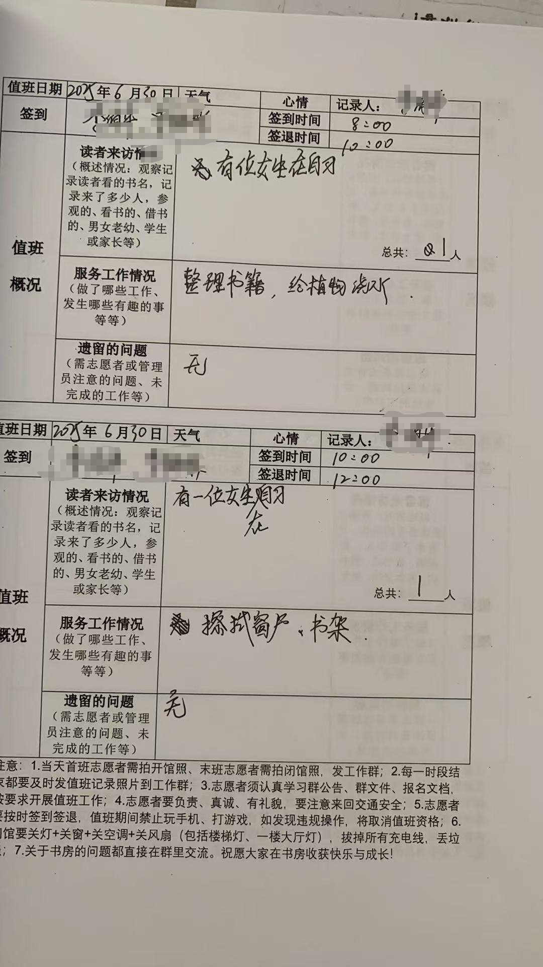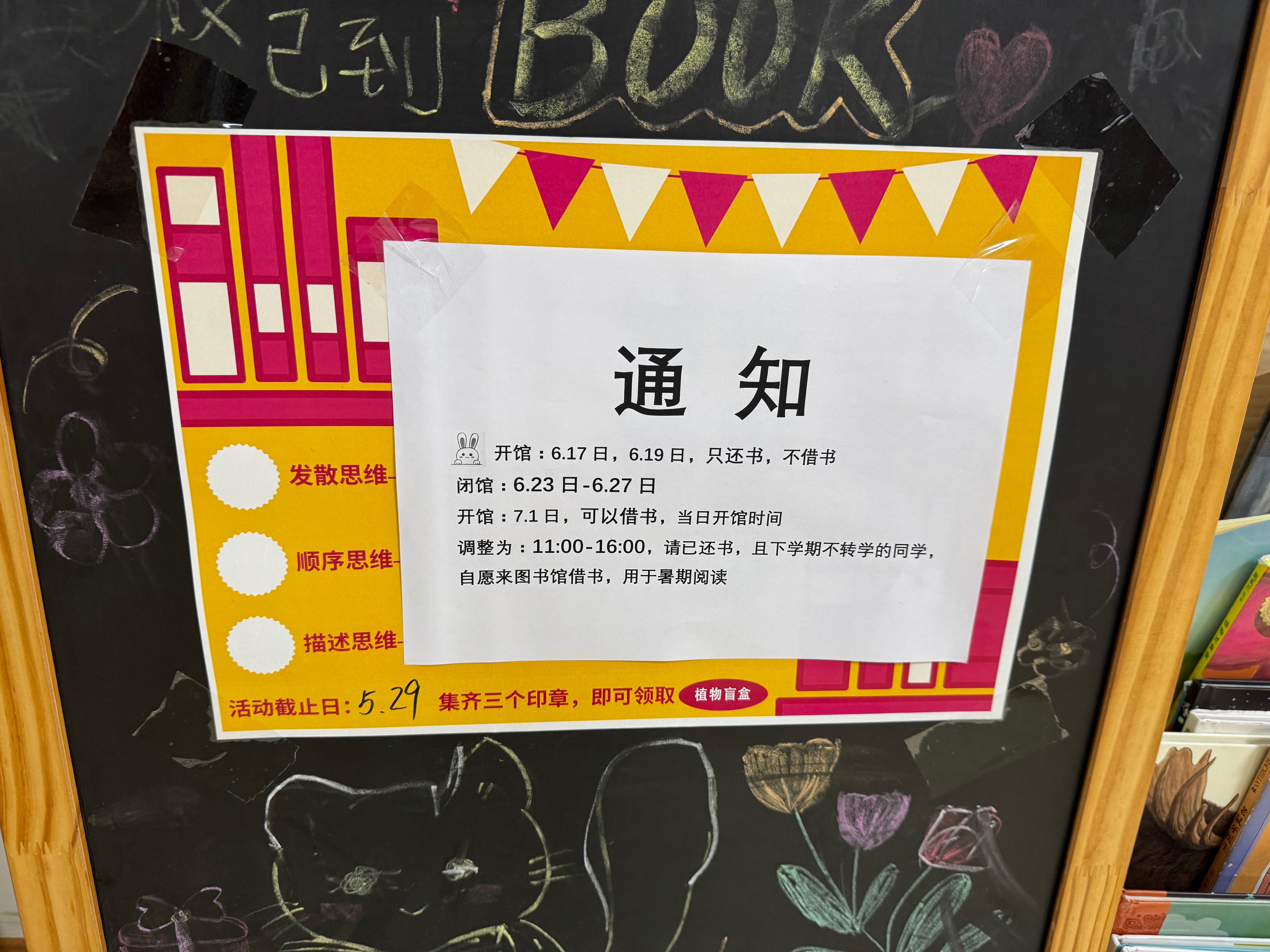 其实今天很轻松:孩子们期末考试刚结束,老师们安排试卷讲解等等,故来馆看书孩子不多;馆内好多破损的书上次修补得差不多了;MZH同学今天没出现😁只是,今天馆内闷热无比啊,尤其是当孩子们进馆阅读时,好几十只“小火炉”火力齐开,有一阵我觉得自己都快中暑了🥵