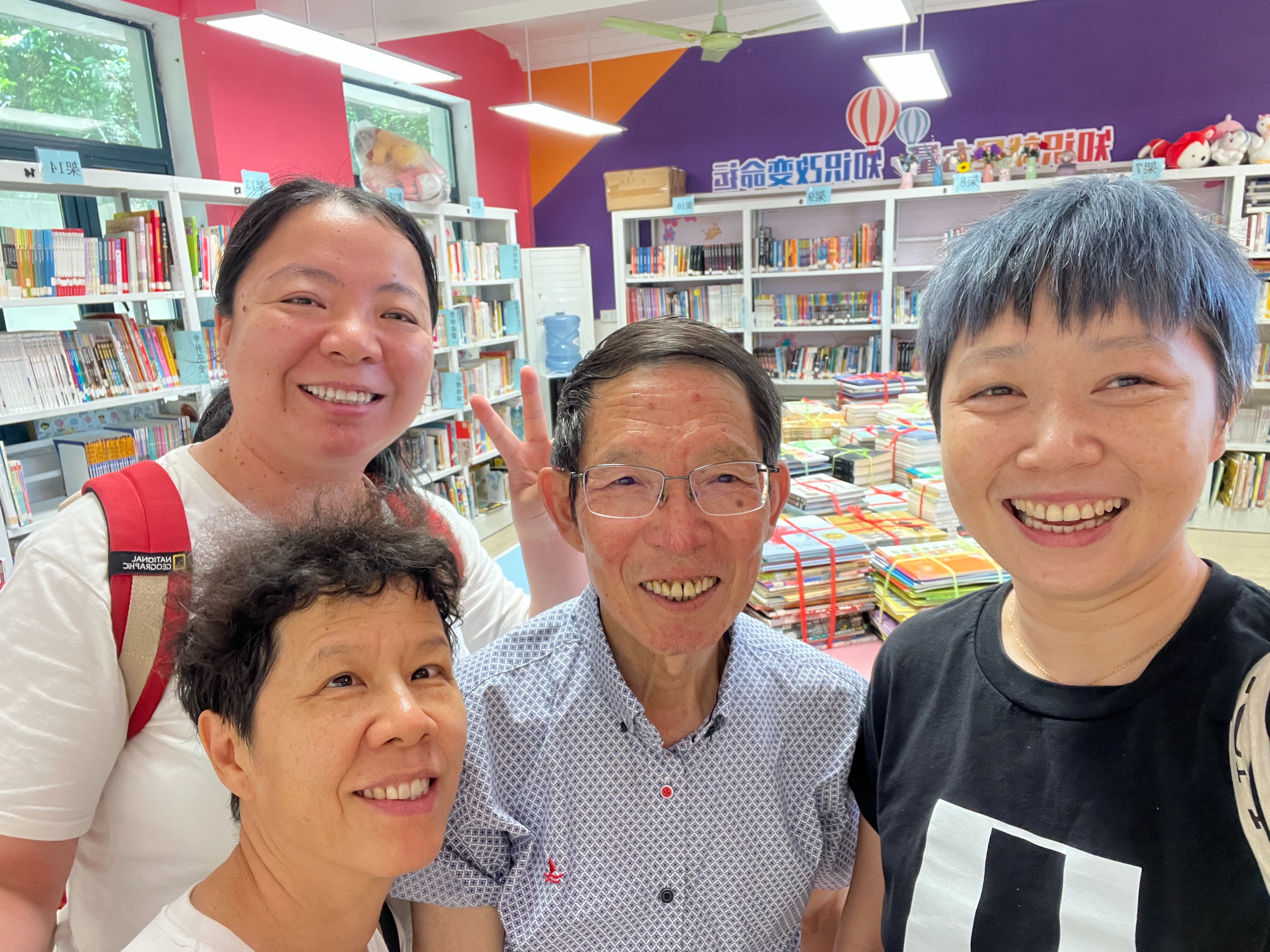 还有开心的事,是终于和久仰了的程叔叔,在线下相见了。几天的工作,程叔叔统筹协调,全方位保障支持,我们按照毅桦提前划分的布局,商量步骤,各司其职,进行的很顺利。边干活边听程叔叔分享馆里的情况,他和孩子们、老师们、校长甚至保安师傅们相处的点点滴滴,再看到学校对图书馆的感谢和支持,感受到了以心换心的力量。小鱼姐说要为程叔叔对每一个人的尊重照顾点赞,我也要一起点。程叔叔笑着说,“我们微澜的志愿者,都是好人。大家就像一家人,一起为了让孩子们看到更多的书而努力。”