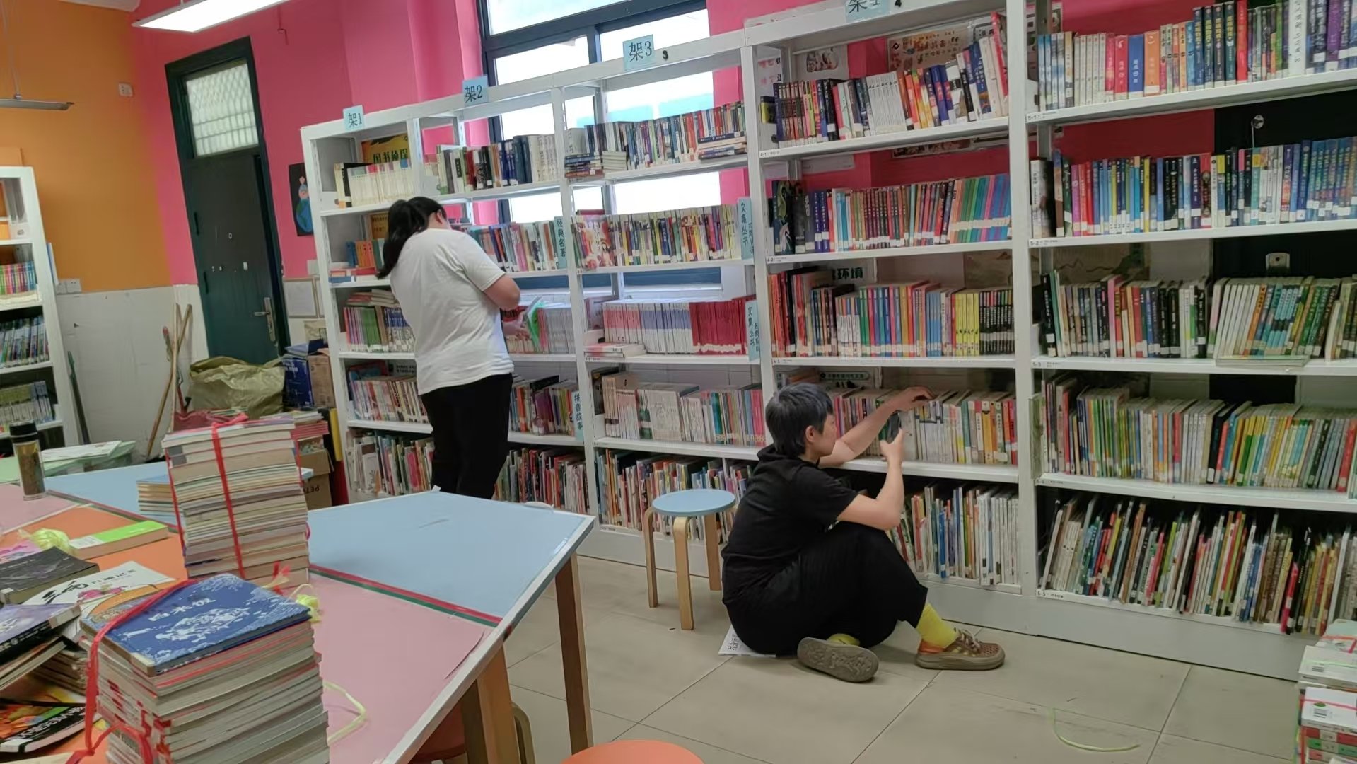上海2馆整备第二天。今天整理书架,挑出复本,细化分类,根据书架容量合理化布局。复本一部分留着给其他地方的新馆,一部分待开学后送给老师和同学。