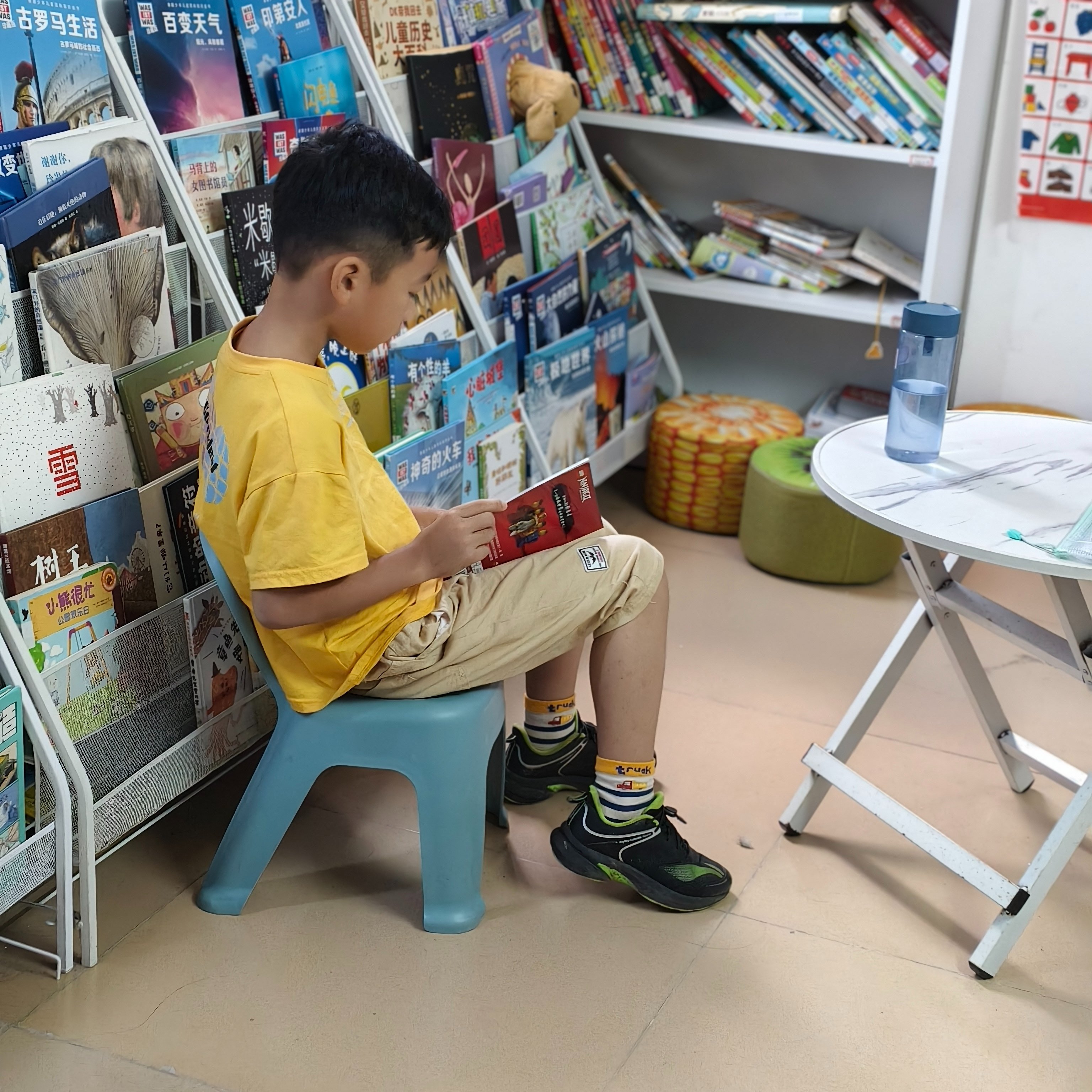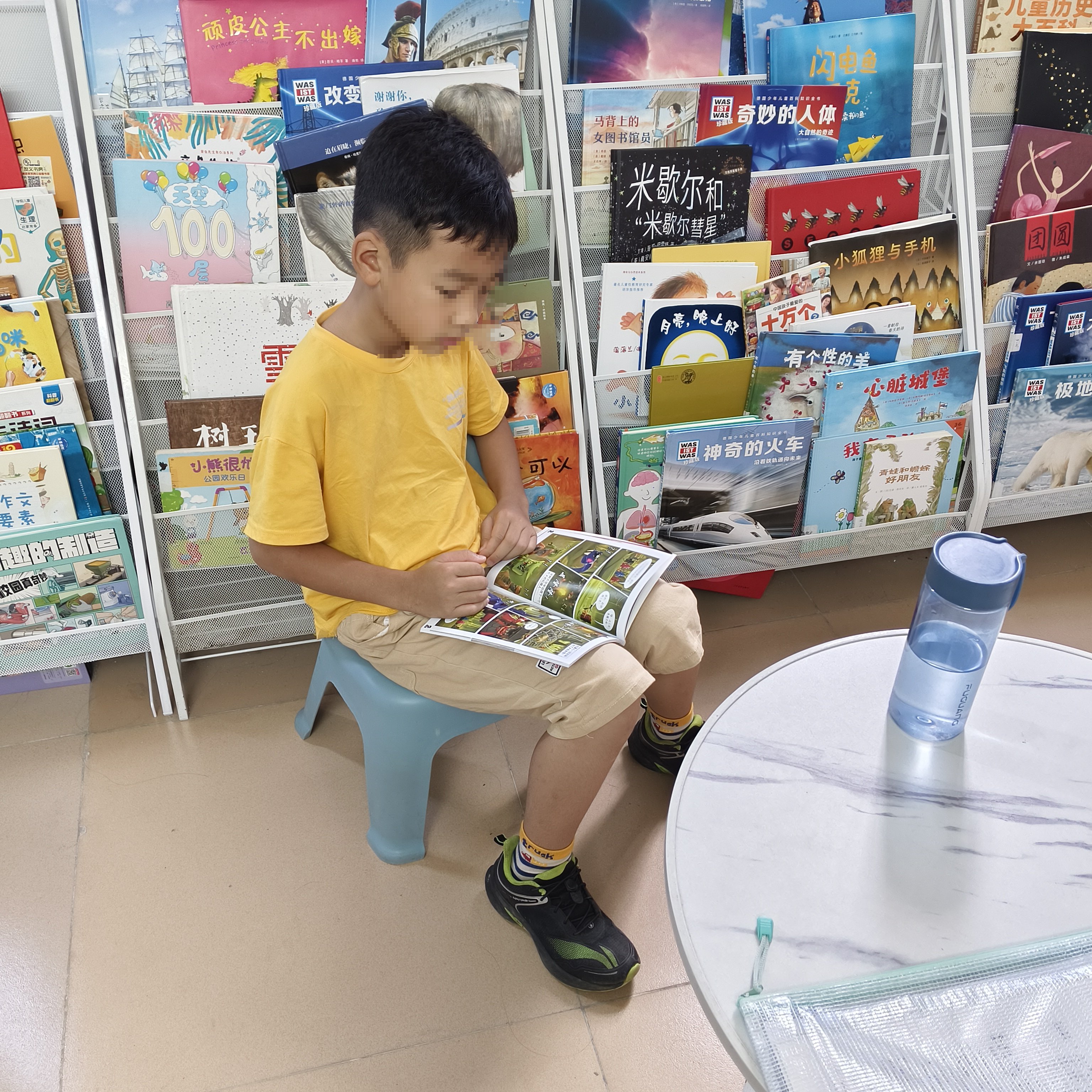 连续两天,有一位小小朋友来,每次待的时间不短,今天拿着书,咧嘴笑了。孩童的笑容真是太治愈啦。