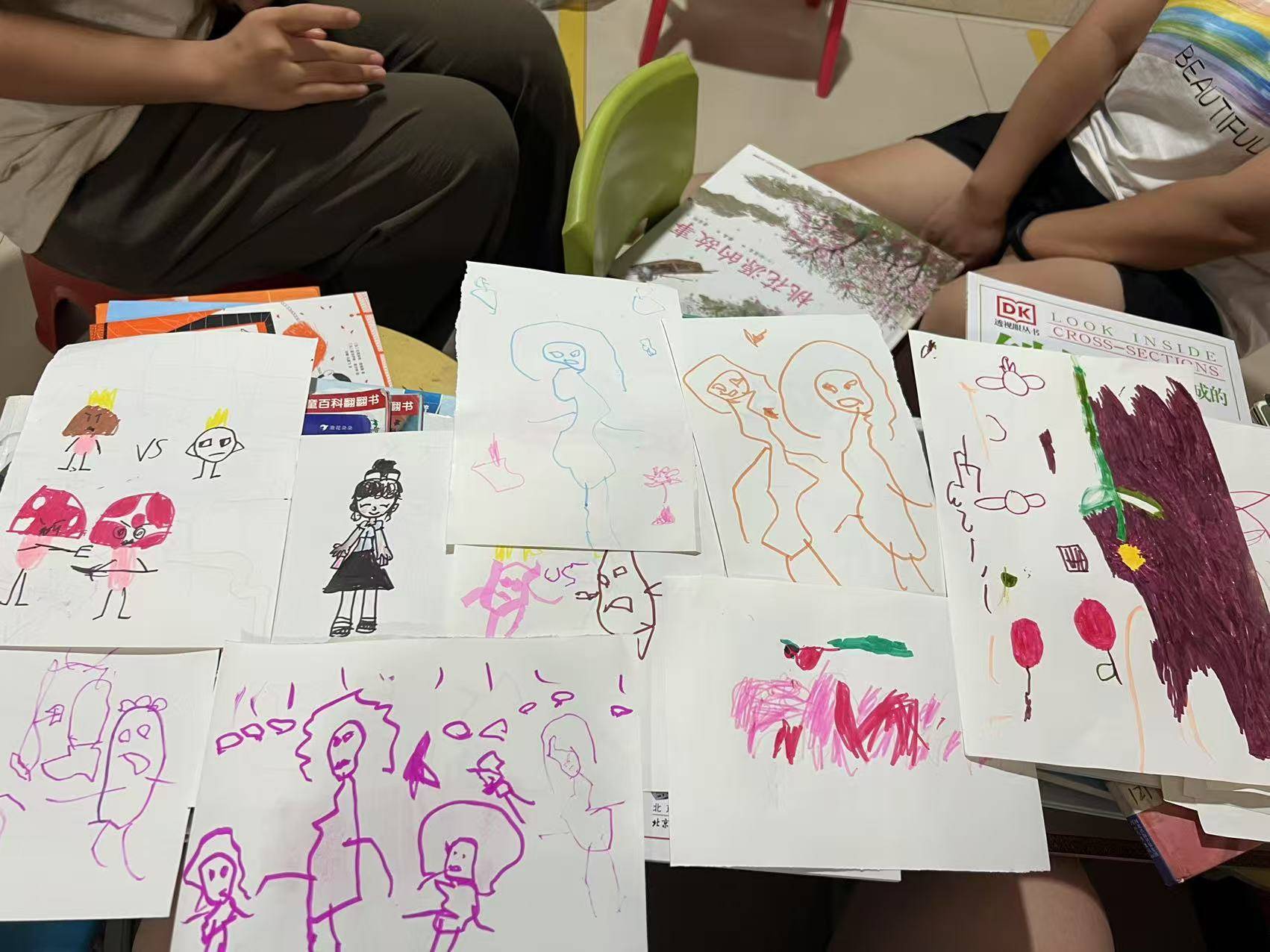 mm也很晚才来,说我忘记今天开馆了,一直在广场玩。然后加入了画画大军,她画画得产量很高,很惊讶得发现在她画画中都是比赛,然后还写上了VS,问怎么知道的,小姑娘自己却说不出来。画画,因为买了专业得纸张,是适合马克笔也两边作画得,孩子们多得时候,不少孩子没有经验,一般画几笔就需要画一张,后来就一张A4一份为二,也希望孩子们两边都画,到第四张得时候mm拒绝了画两边,我也坚持要求,小姑娘头也不回的,走向大门,拉着门就要走。别的家长说怎么了,我当着很多人的面说,“萌萌生我气了”,是认识mm的一些家长和孩子,但我并不熟悉,这让mm很尴尬吧,瞬时意识到我自己有时候也是没长脑子的。当时只想确认mm的状态,却没有注意她的感受。