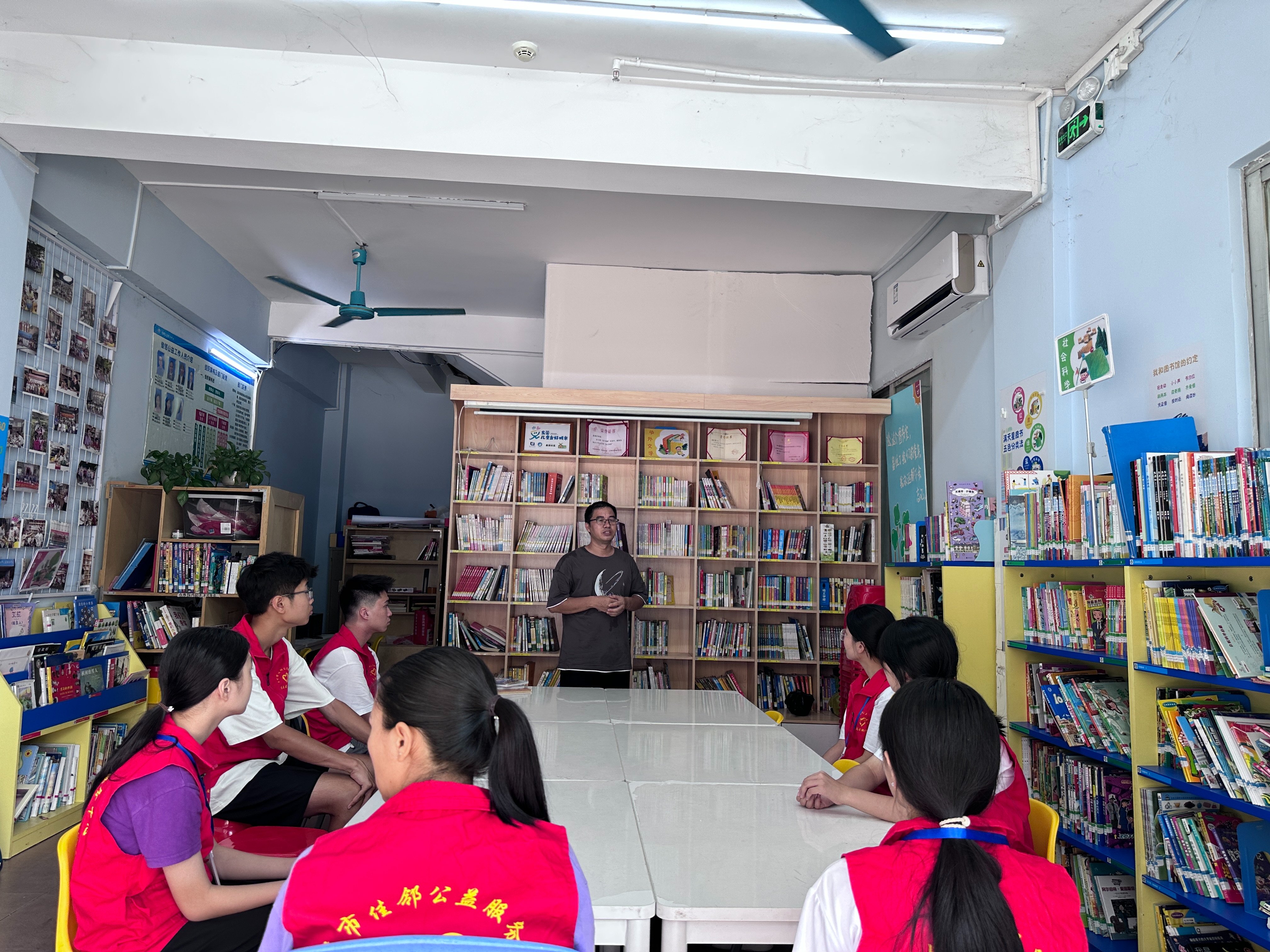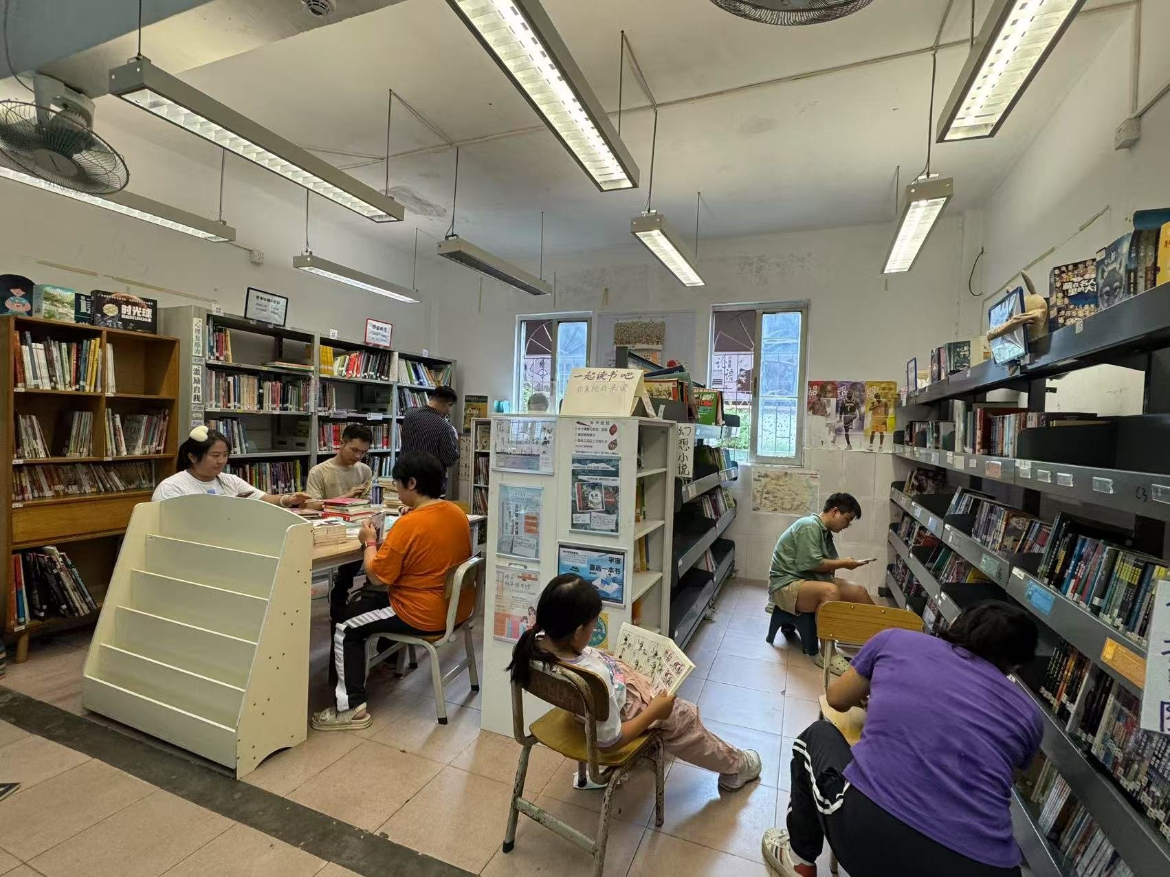 另外,考虑到广东财经大学的学生志愿者团队在镇上做支教活动,想着怎么还是把大学生志愿者调动起来,于是也临时联系组织了一个大学生主题分享活动,招募志愿者和读者参加。原本是想给大学生们更“高级”的“礼遇”,联系zf看是否感兴趣组织,书房参与协助。但是落空了哈哈哈,幸好大学生们也很支持,说到书房开展自由度也更高。于是联系约定借一楼的场地。招募读者部分也没有想象中的顺利,我给列表上已知是高三毕业生的好友都发了活动信息,结果大部分回复都是进厂打工了。最后的结果是大学生来了14位,中学生只有9位,史无前例的比例哈哈。活动细节就不细说了。活动当天还有一个插曲,早上因为锁的问题(后来证实不是书房的责任),一楼负责任把答应借用的场地锁了,23位活动参与者就挤在二楼右书房小小的空间里。所幸活动顺利,大家的交流也很畅快。