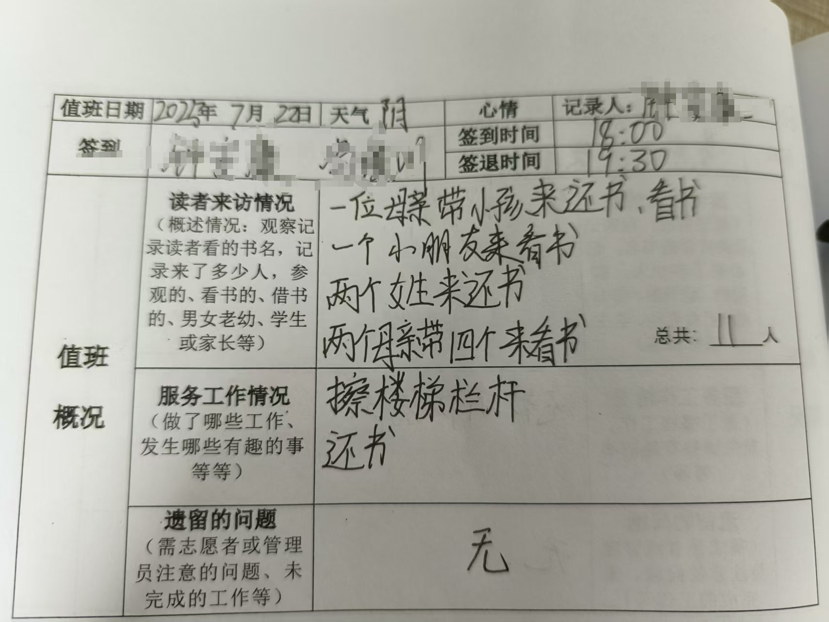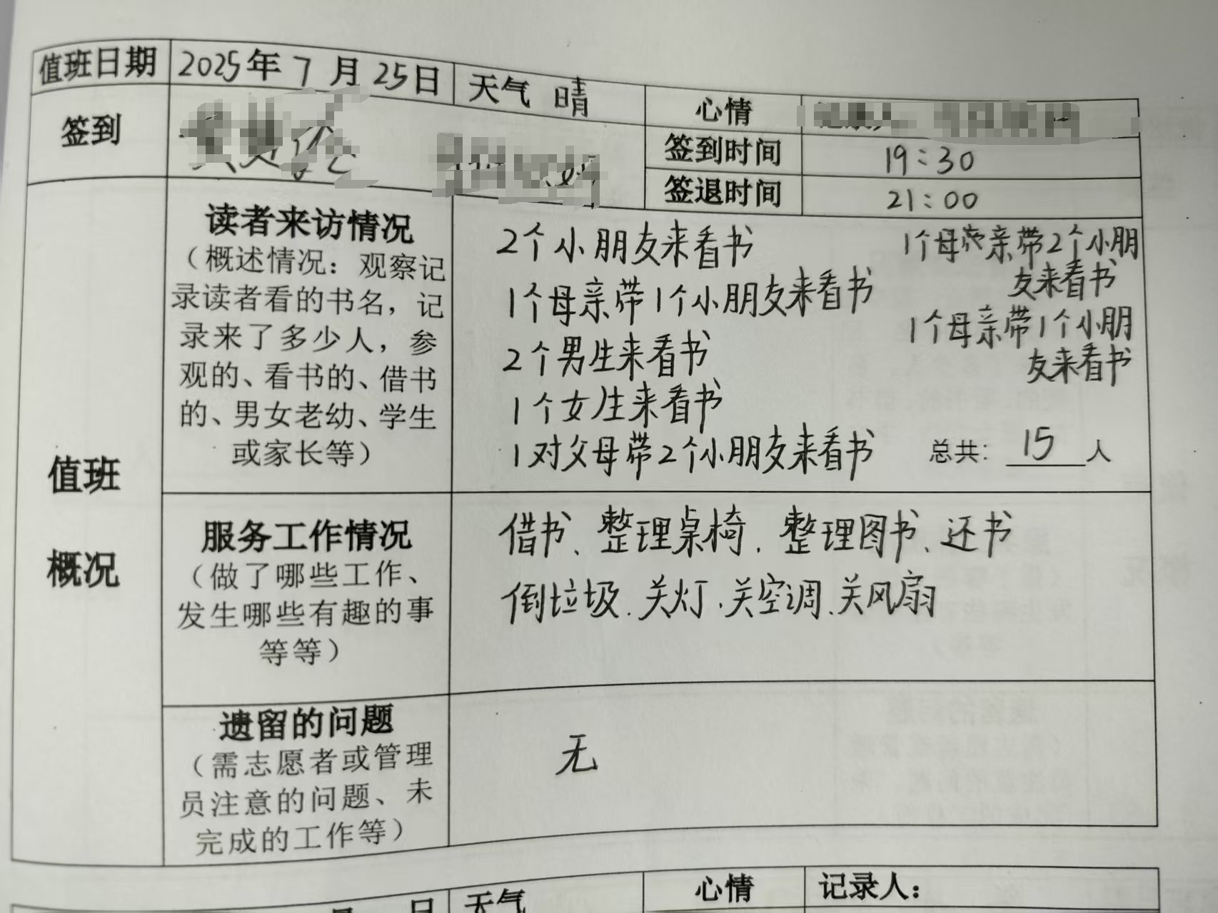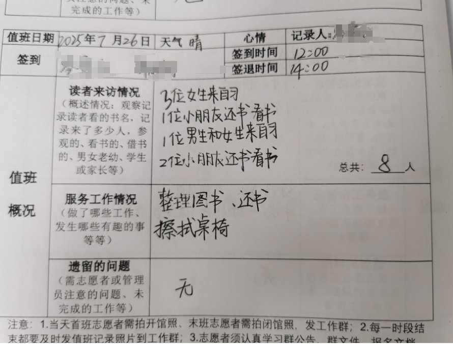 之前也一直有点小想法,书房志愿者工作手册又需要更新了,但总是忘记修改。昨天也终于修改了一下,所以说书房志愿者也不容易,整个手册有8000+字数,而志愿者中很多还是初中生,他们需要自主学习工作手册再报名参加值班,而暑假以来,相信自主学习手册的志愿者比例有所上升。毕竟从大家在工作群里的交流就看得出来谁看了手册、谁没看。志愿者招募工作换人以来,也一直和喵喵交流相关的事项,把一些疑问抛给工作手册,也减少了密切相关的几位管理员的工作强度。上半年以来,志愿者招募、考勤发码、志愿者录用这三个维持有序开关的管理员特别稳定发挥,书房开馆也有稳定的保障。到暑假至今,书房的开馆工作还是挺平稳顺利的。