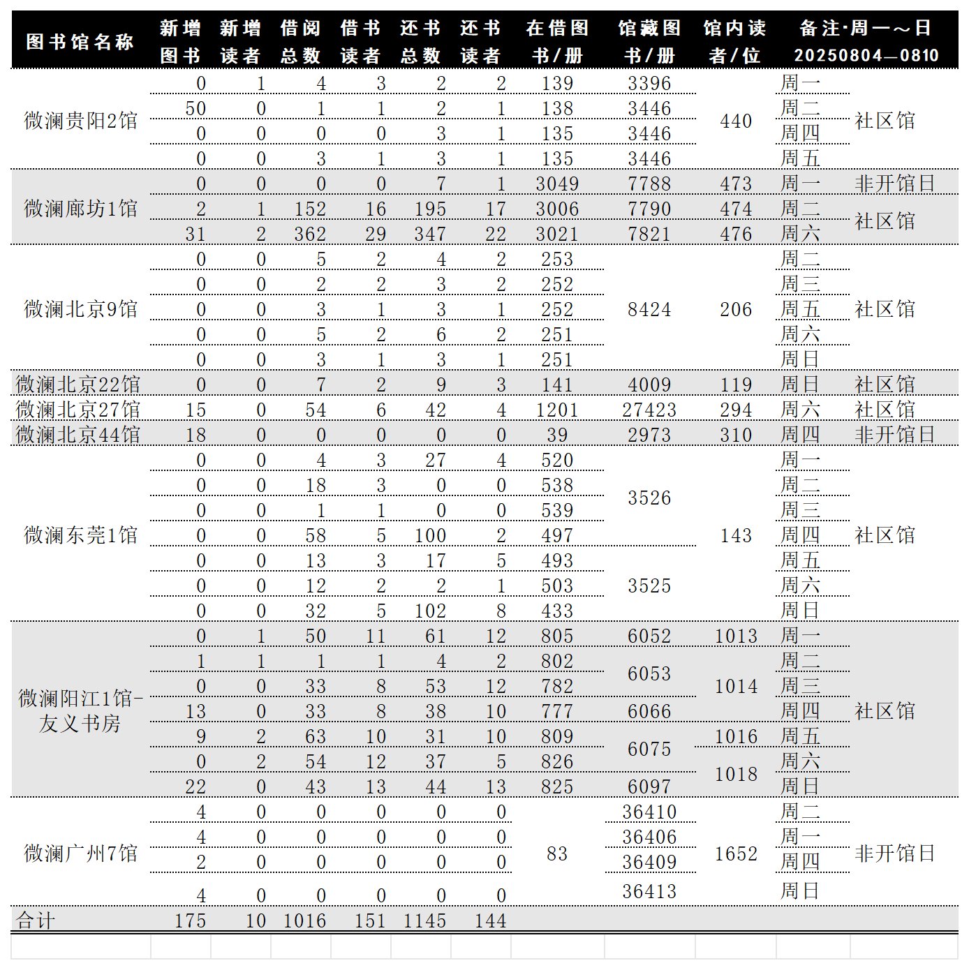 各馆数据日报202500803~10/周一~日: