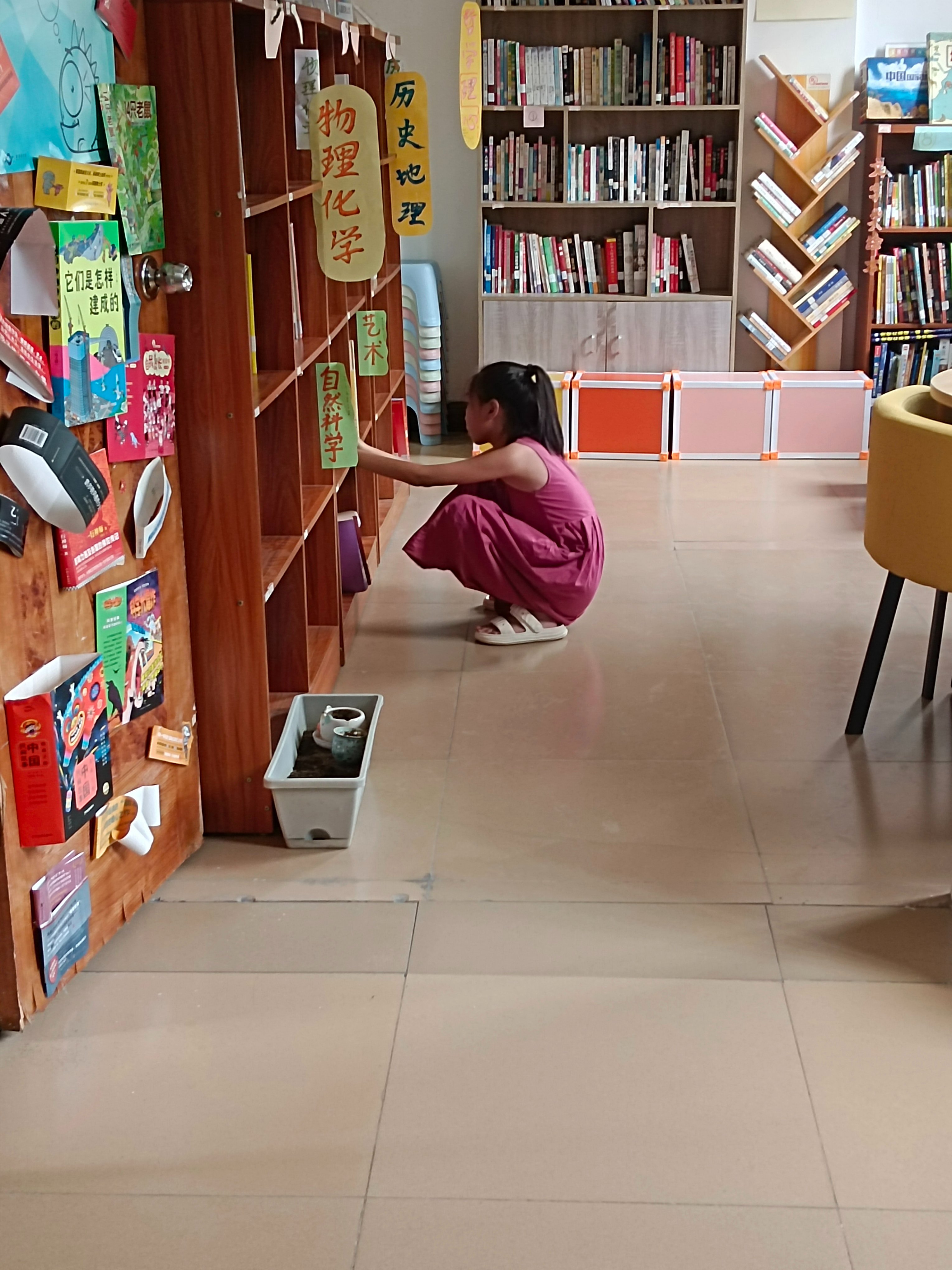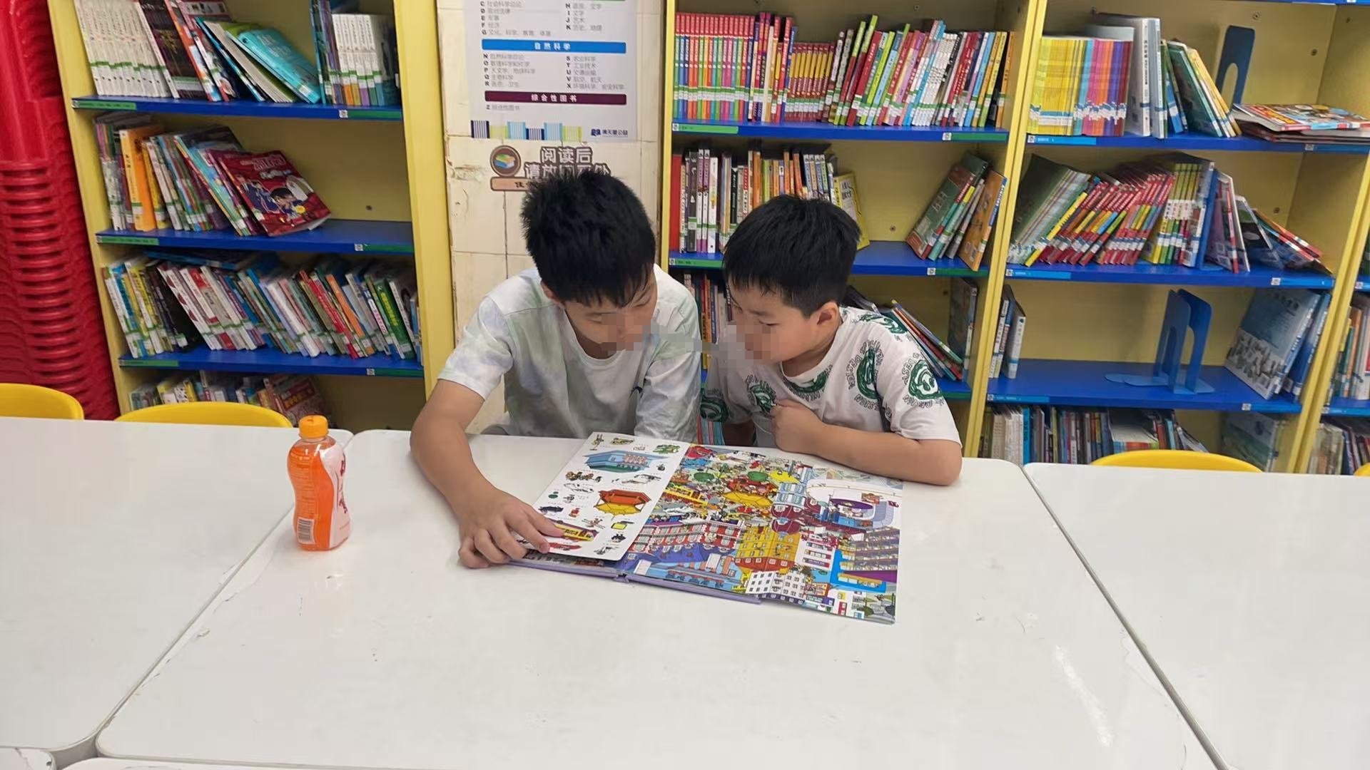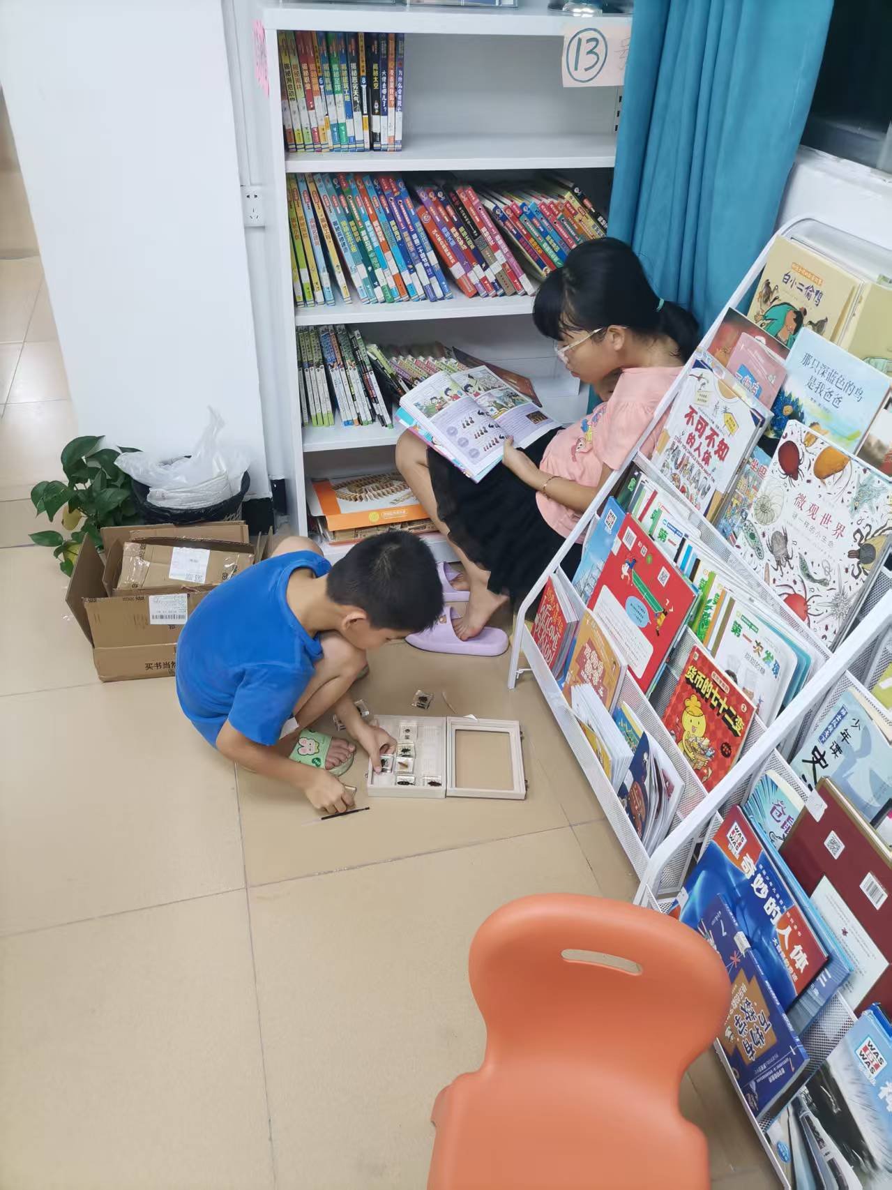 忘记带新画纸。。今天也有小读者过来问可以怎么办卡,就还是嘱咐需要家长一起来,小姑娘去找,说妈妈今天不来了,下次。妹妹画画儿,姐姐看书。