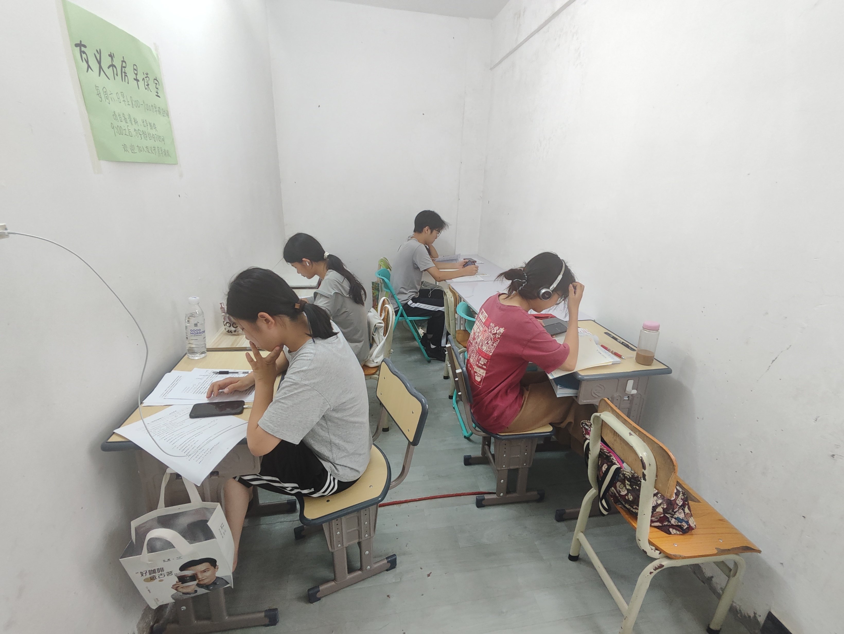 晚上九点半左右,人都离开,满地垫子和没有盖盖子的笔,慢慢整理收拾,十点四十左右离开
