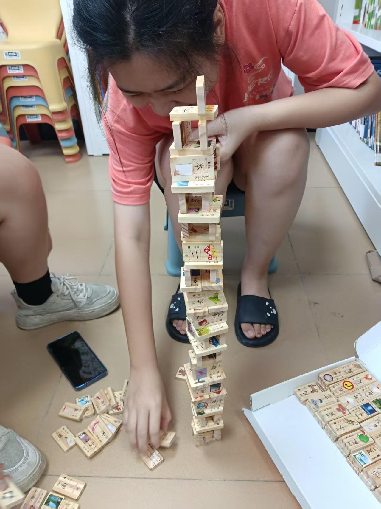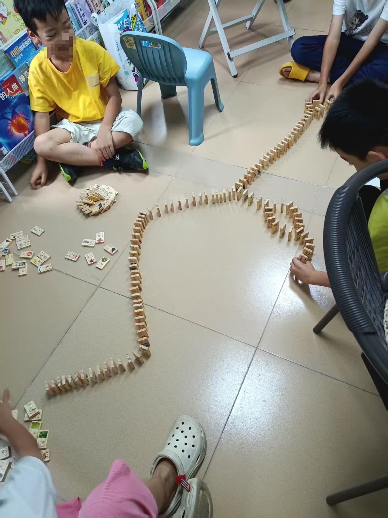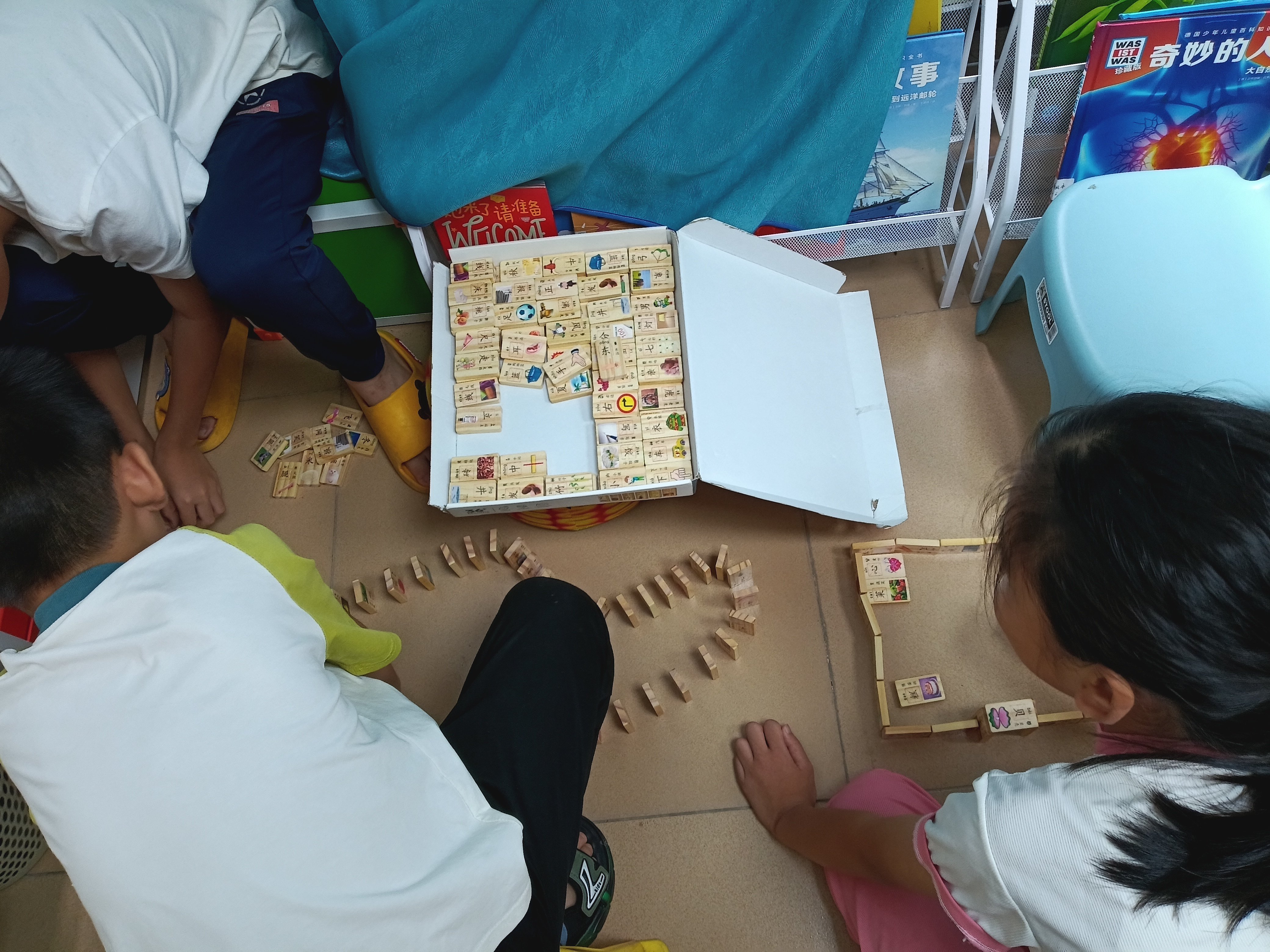 中途和yy回家取了一趟袋子和绘画纸张,回图书馆跟着她小区饶了路,不过好处是可以遇见不少孩子,和他们广告开馆了。kx路上见到说mm今天生日,发烧了。xt和yy选了可以涂色的绘本,yy和姐姐一起送过去,小姑娘今日情绪不佳,基本不和大家打招呼,带一小会回去,再来再回去,妈妈不放心跟着来了一小会儿。