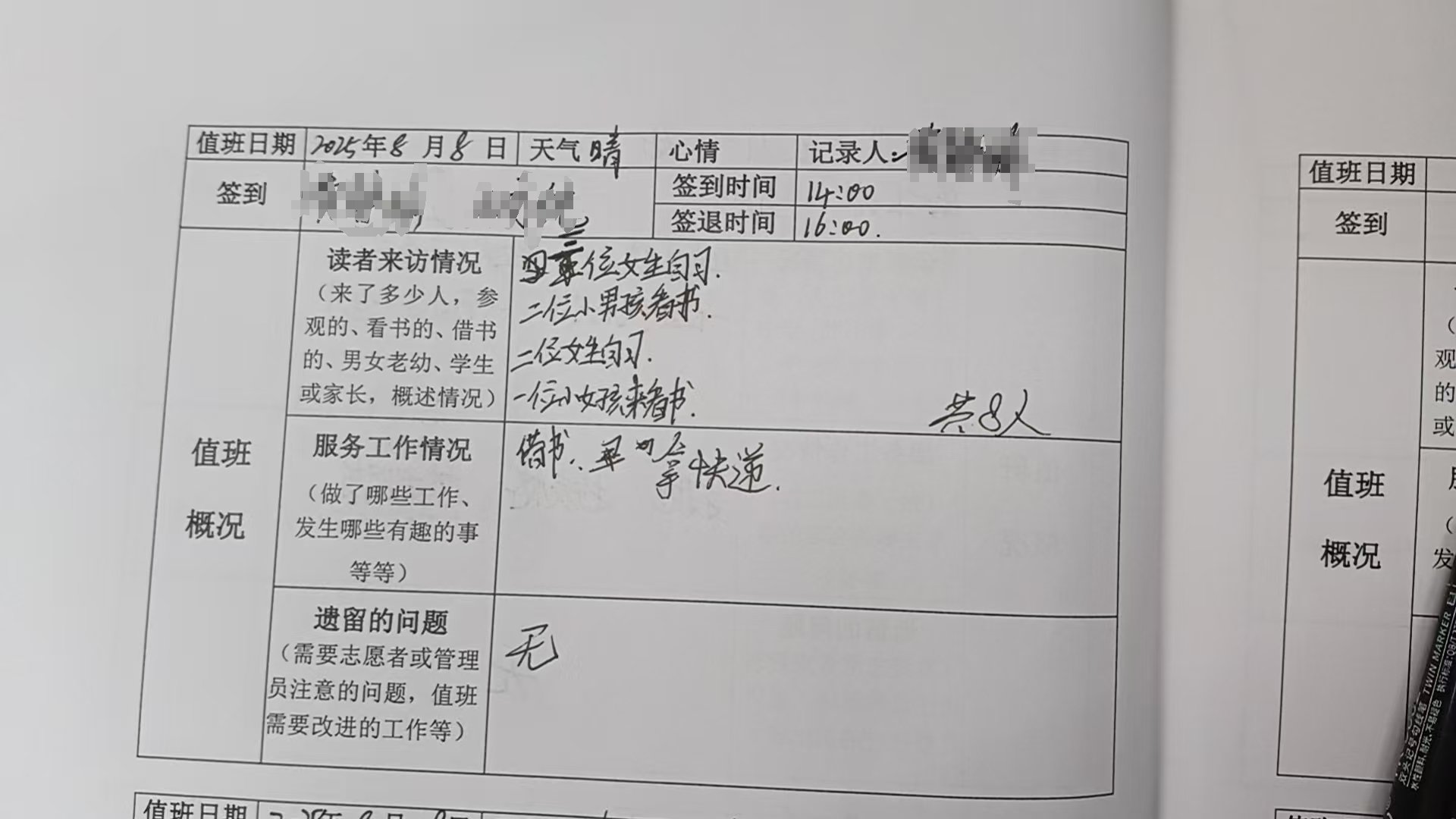 日常开馆服务,一开馆忙起来,今天yy和瑶瑶来得早,忙的时候,就辛苦瑶瑶一起帮忙借还了。