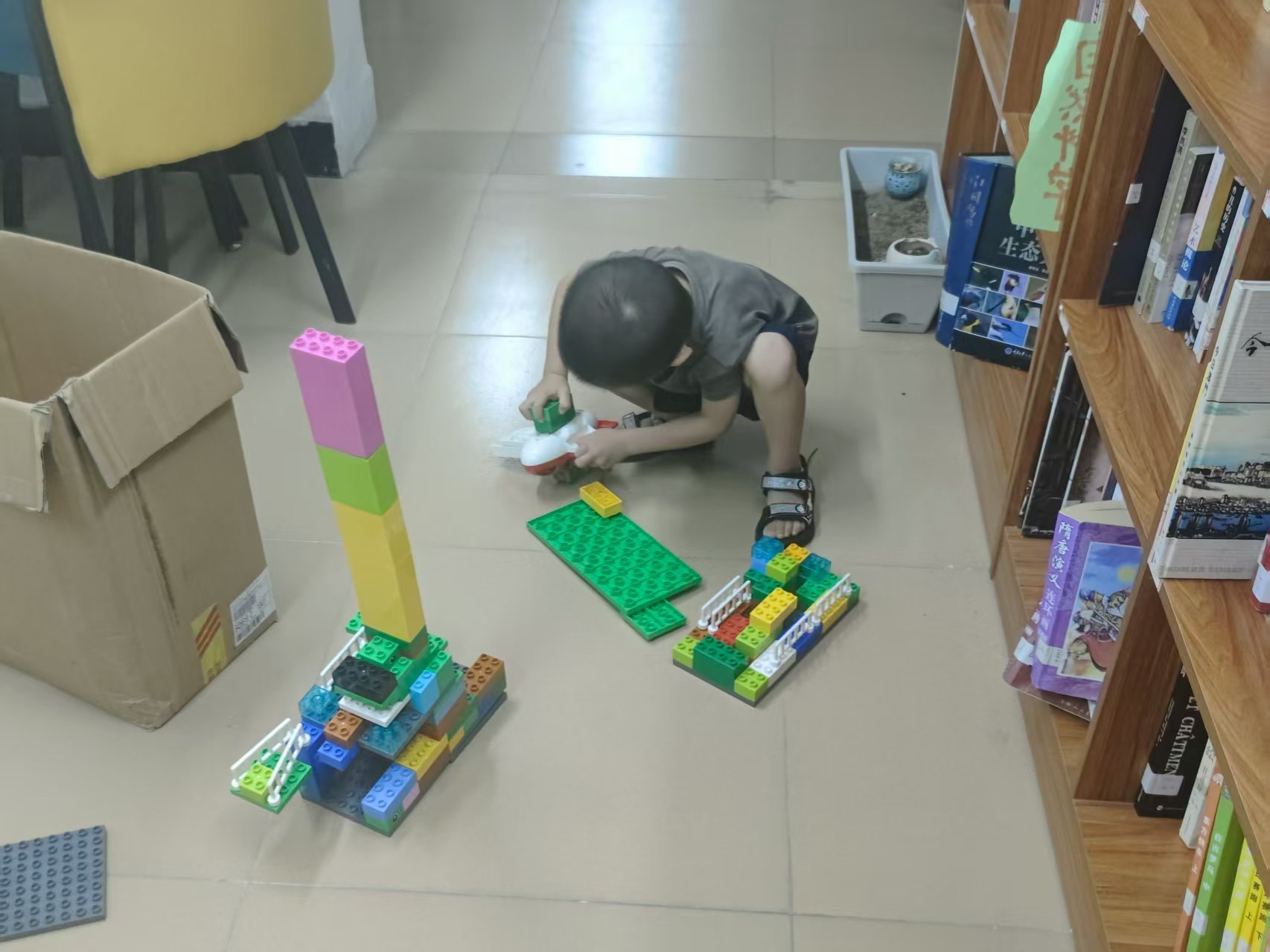 周老师,一口气给孩子们讲了六个绘本,来玩的两个小读者也听完再离开。书后来也借出去了(哈哈,强制周老师今天读完开放给其它小读者),有意思的是,她真的给自己开了卡,作为一个独立阅读者而不只是妈妈,真好。对于爱书人来说,有图书馆,真的太好了。
